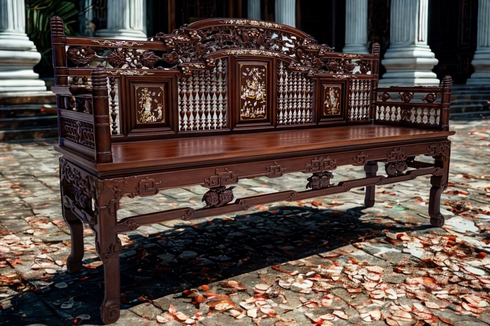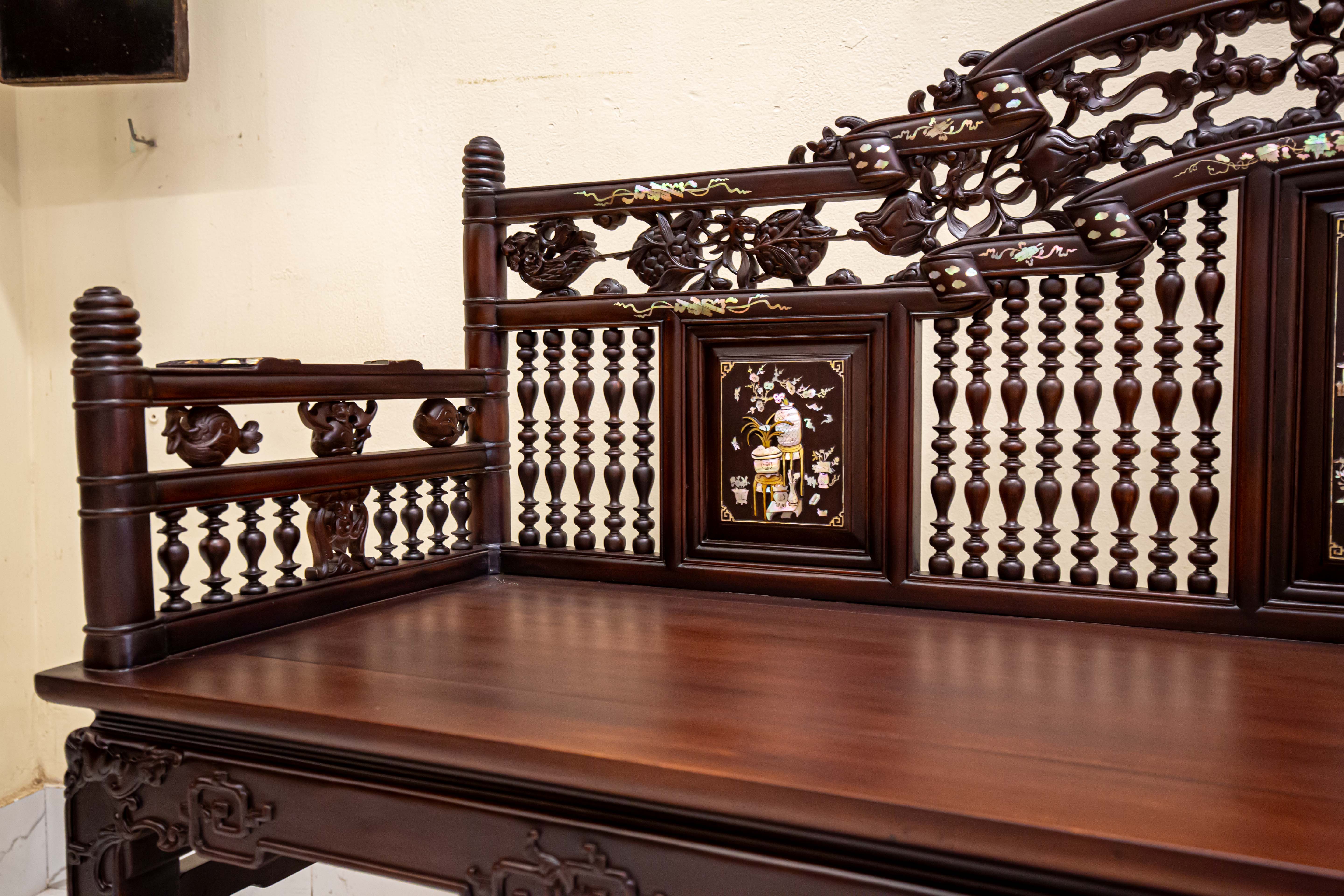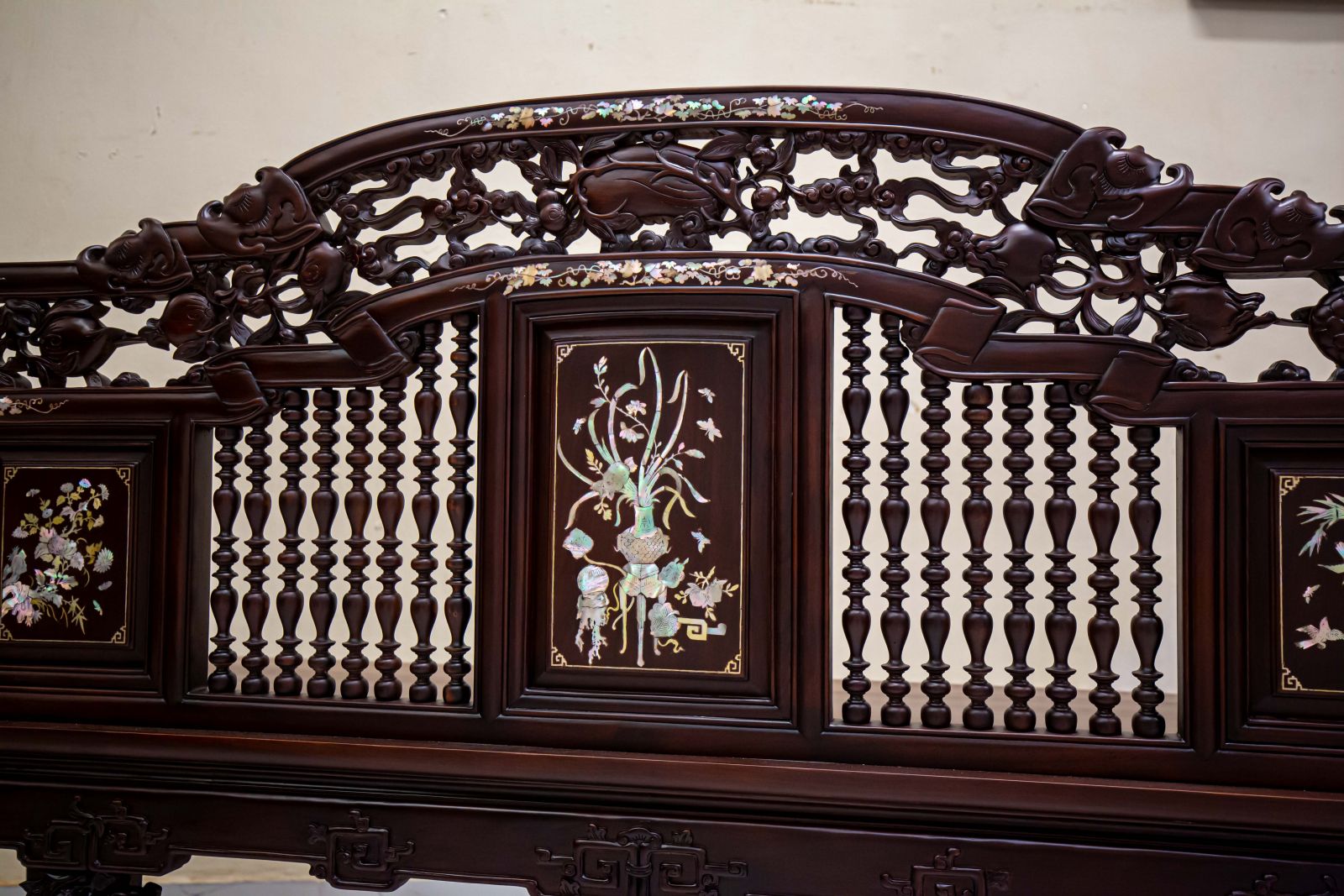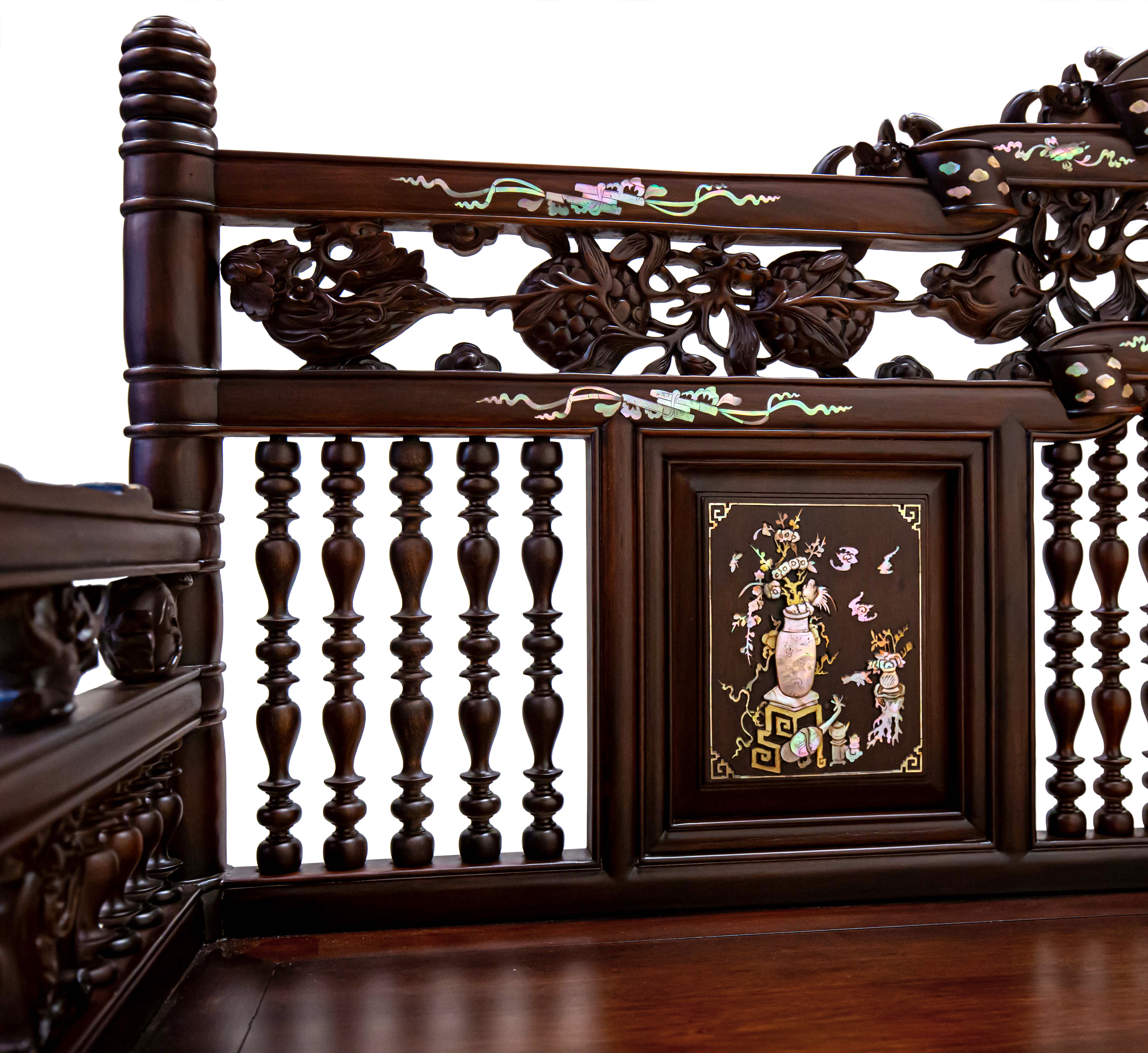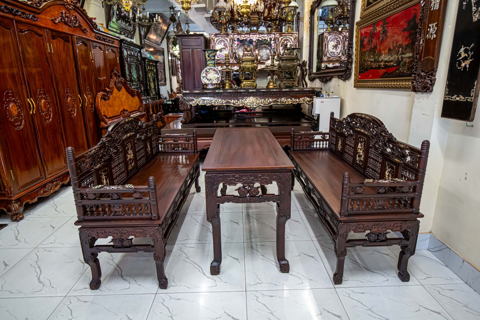 Bộ trường kỷ Huế xịn khảm nổi là dòng sản phẩm cao cấp, thể hiện đỉnh cao của nghệ thuật chạm khảm truyền thống. Mỗi chi tiết được chạm trổ tinh xảo, khảm nổi bằng ốc xà cừ sắc sảo và nổi bật. Gỗ quý dày dặn, kiểu dáng bề thế, toát lên vẻ sang trọng, quyền quý chuẩn phong cách hoàng gia xưa