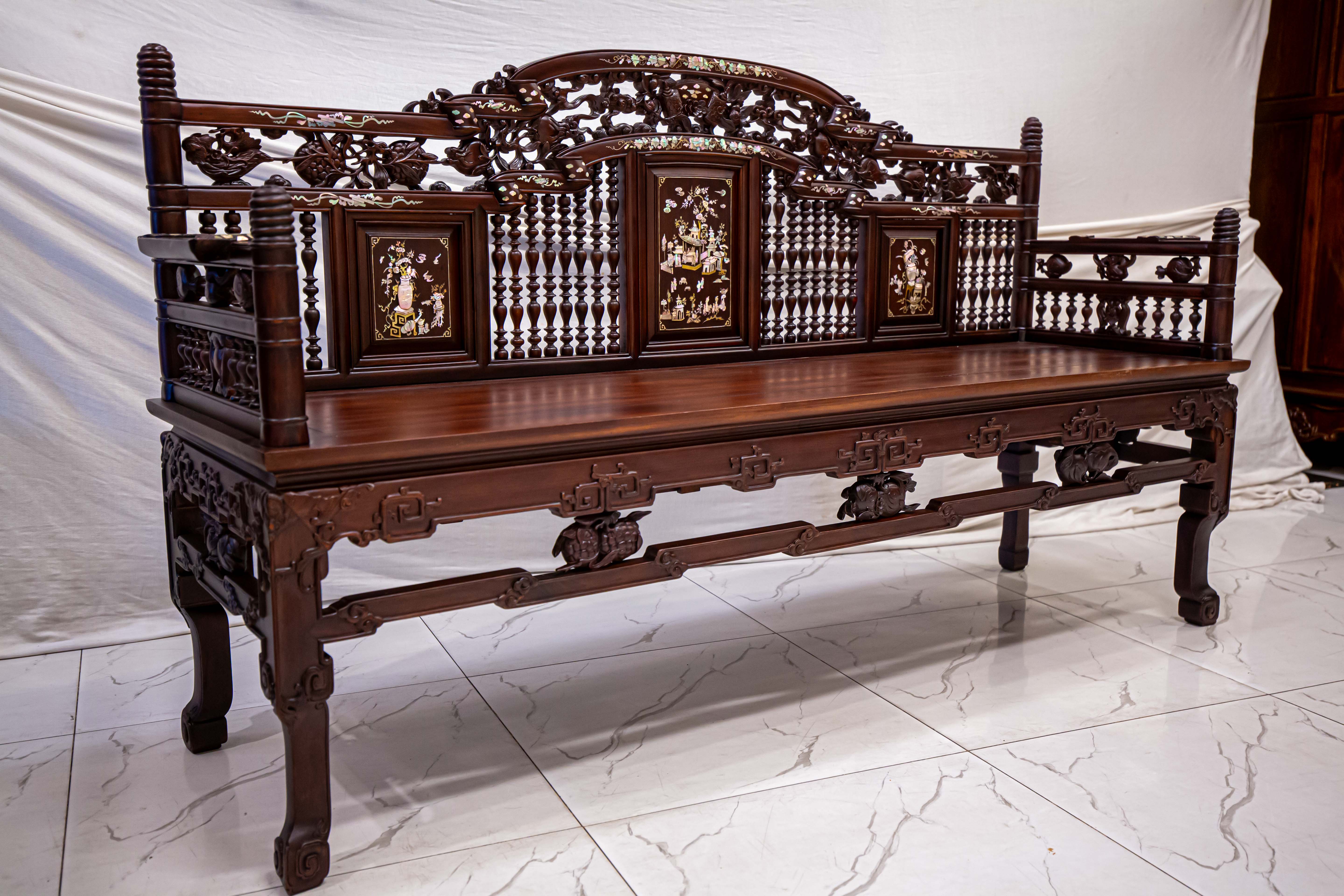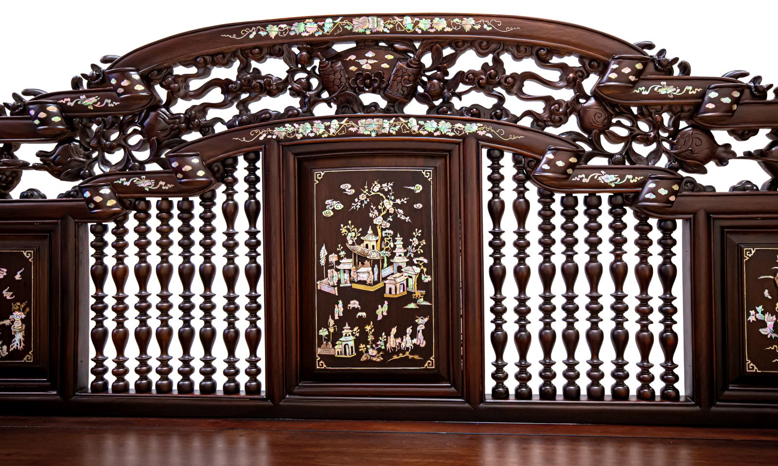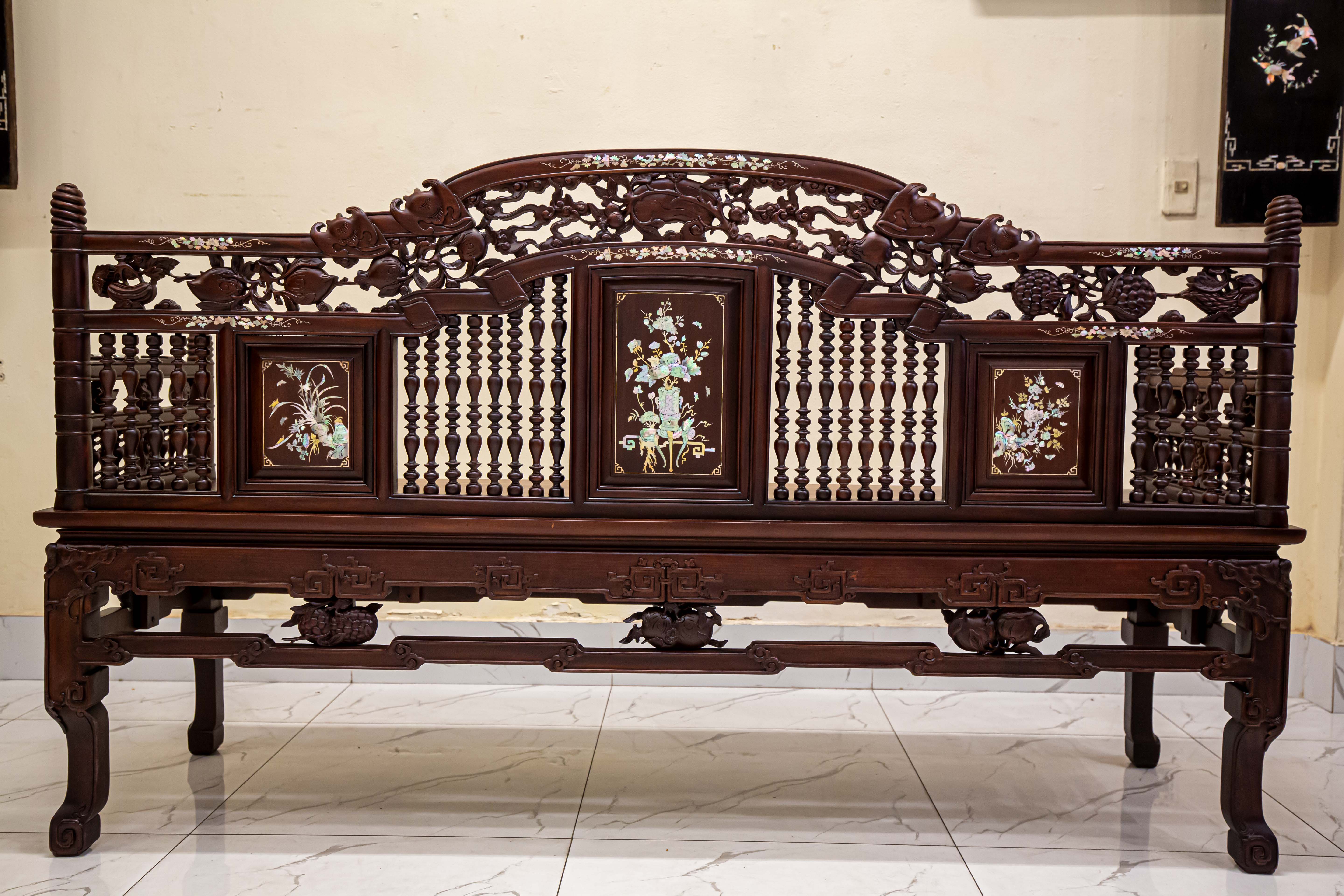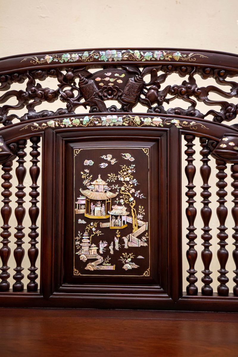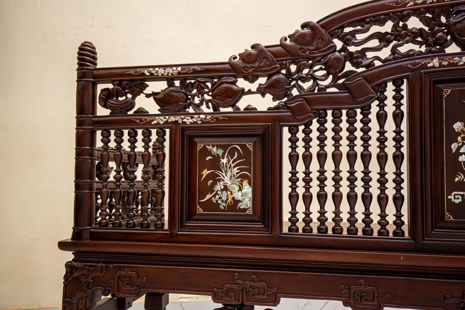 Bộ trường kỷ Huế xịn khảm nổi là dòng sản phẩm cao cấp, thể hiện đỉnh cao của nghệ thuật chạm khảm truyền thống. Mỗi chi tiết được chạm trổ tinh xảo, khảm nổi bằng ốc xà cừ sắc sảo và nổi bật. Gỗ quý dày dặn, kiểu dáng bề thế, toát lên vẻ sang trọng, quyền quý chuẩn phong cách hoàng gia xưa