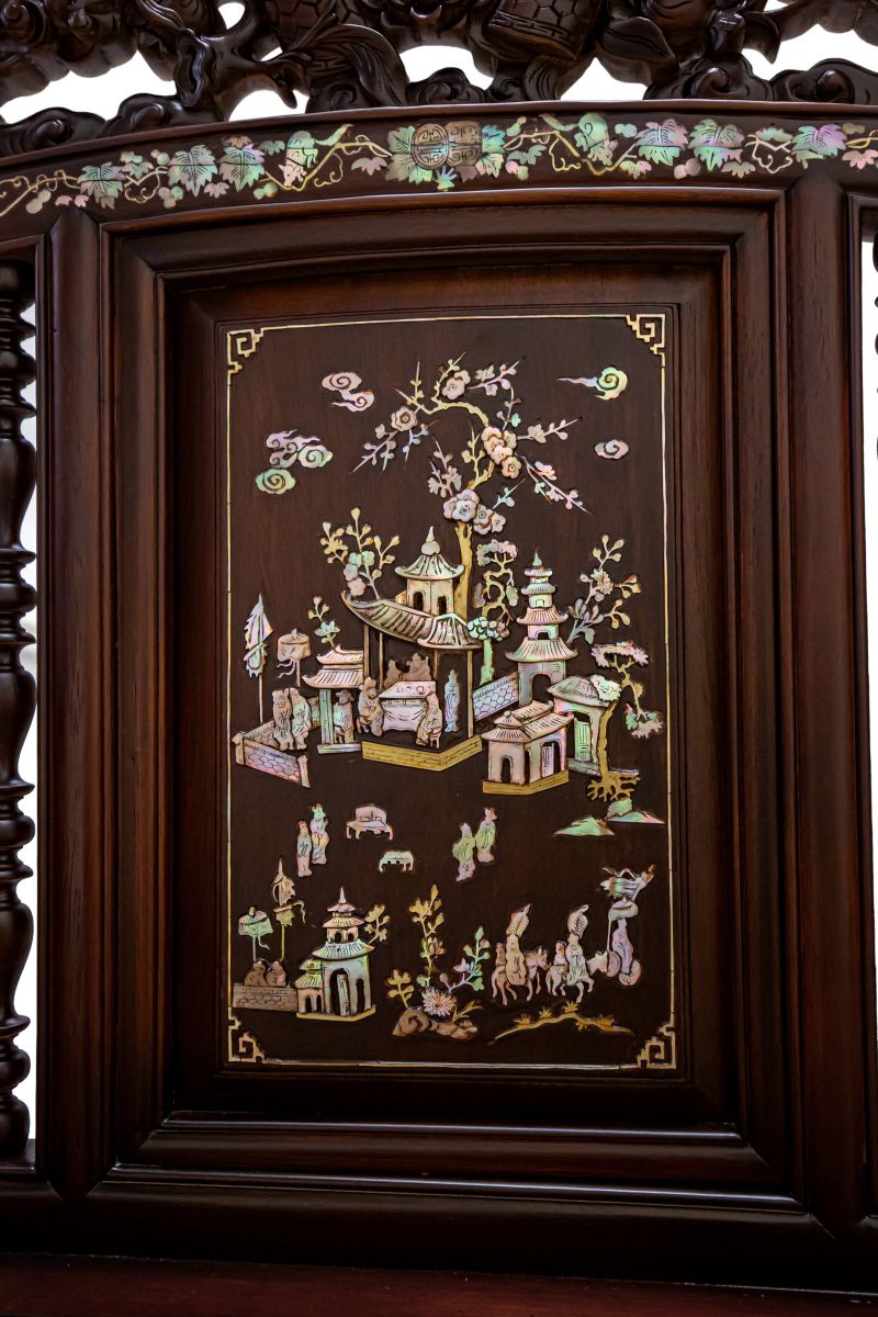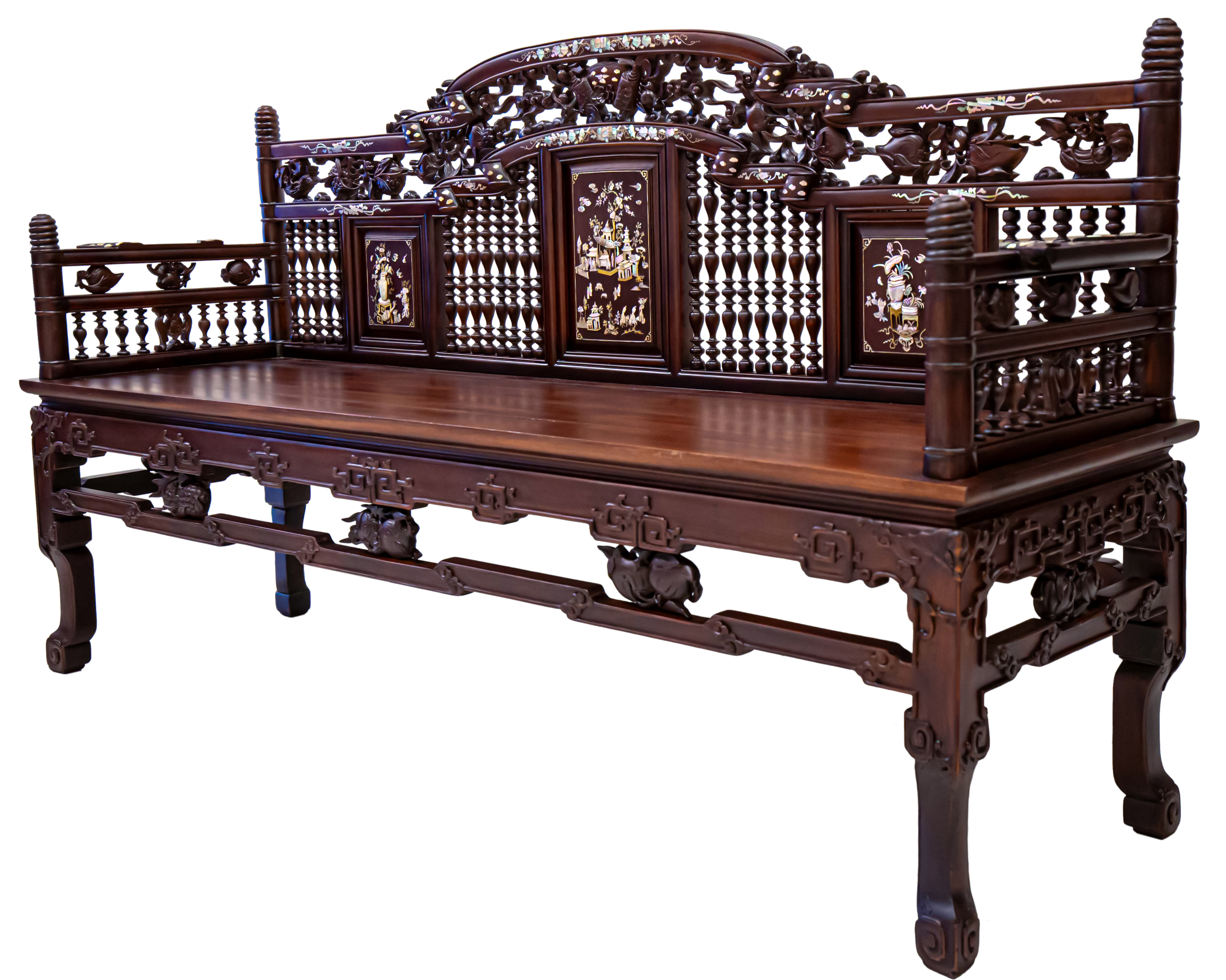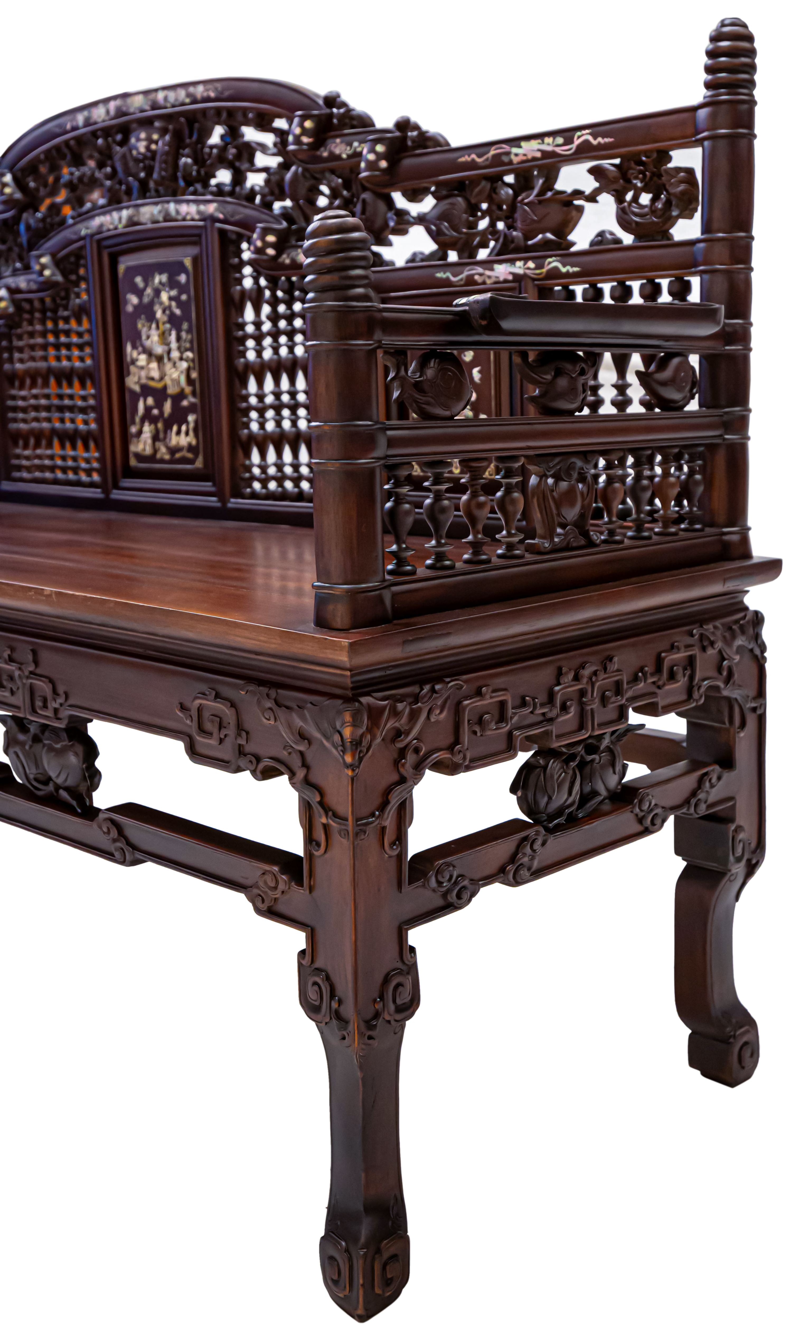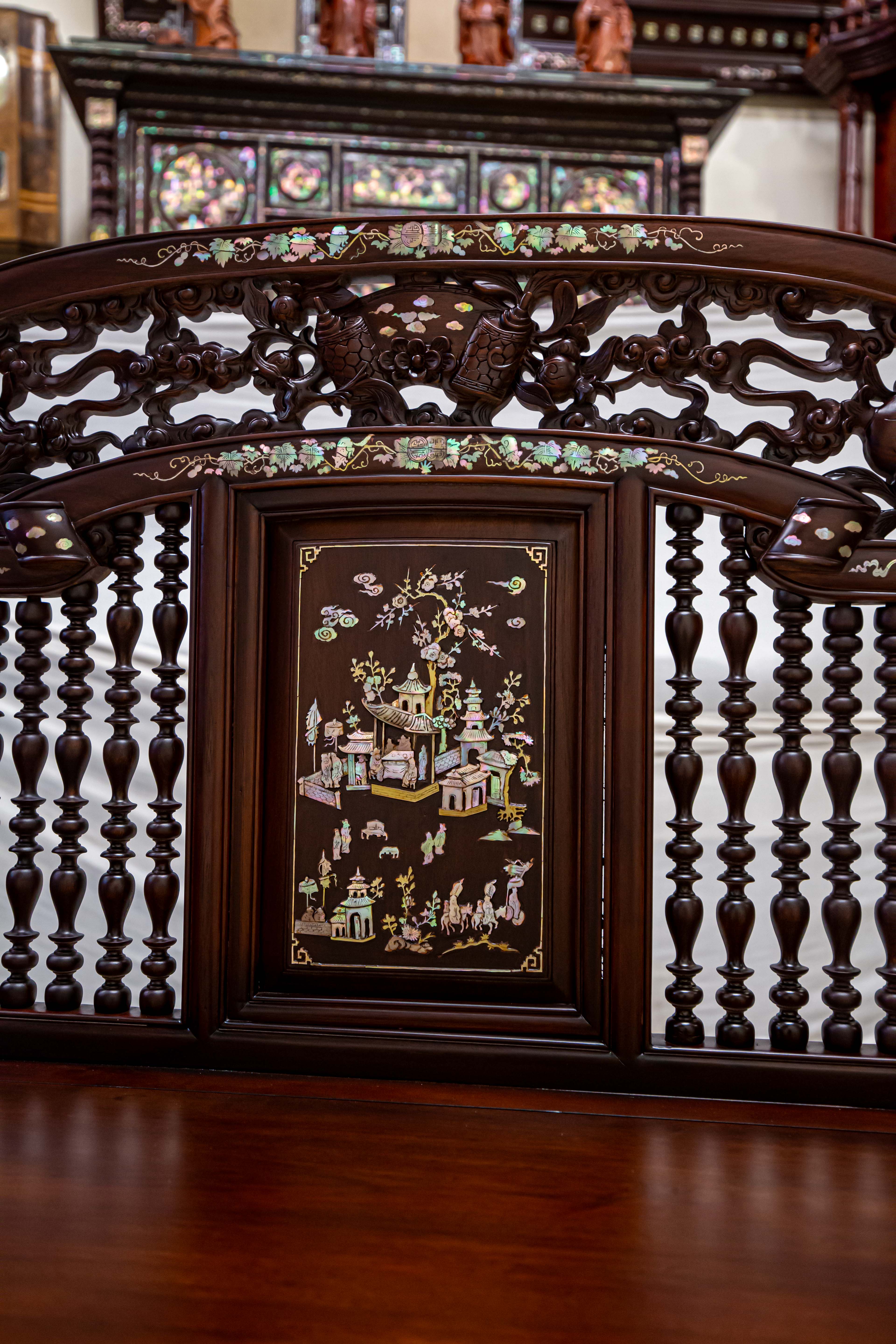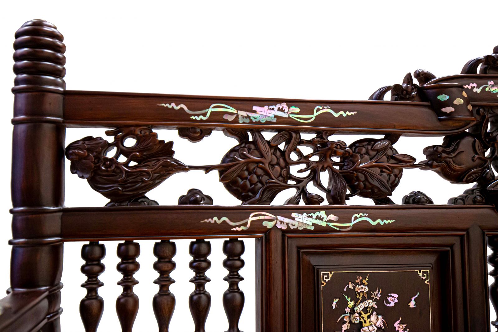 Bộ trường kỷ Huế xịn khảm nổi là dòng sản phẩm cao cấp, thể hiện đỉnh cao của nghệ thuật chạm khảm truyền thống. Mỗi chi tiết được chạm trổ tinh xảo, khảm nổi bằng ốc xà cừ sắc sảo và nổi bật. Gỗ quý dày dặn, kiểu dáng bề thế, toát lên vẻ sang trọng, quyền quý chuẩn phong cách hoàng gia xưa