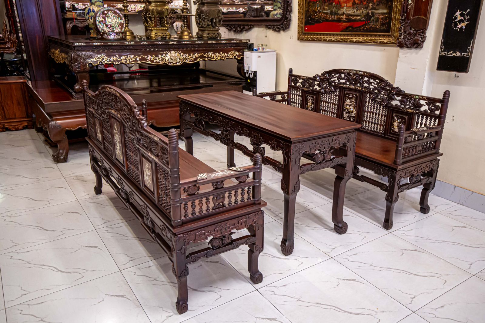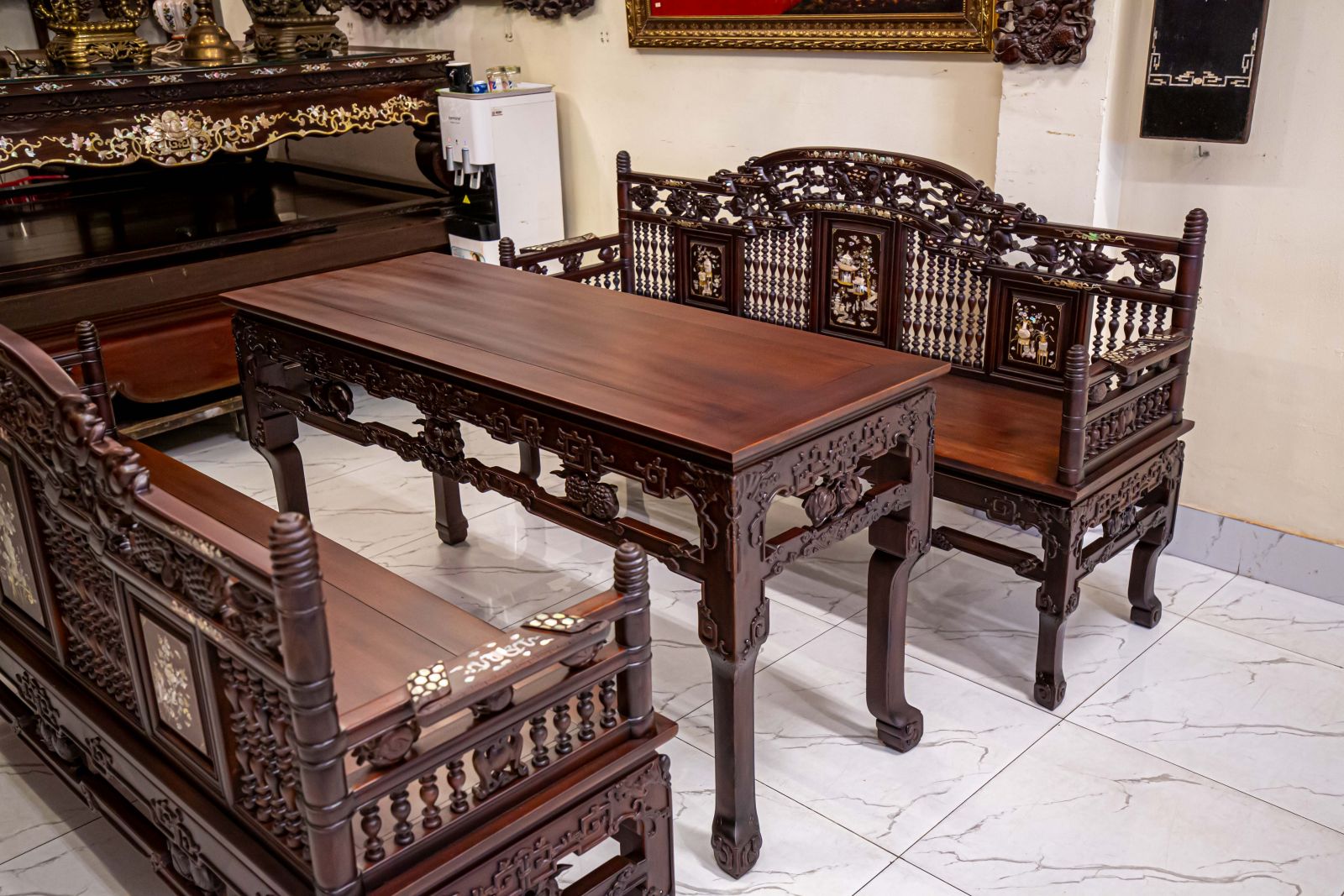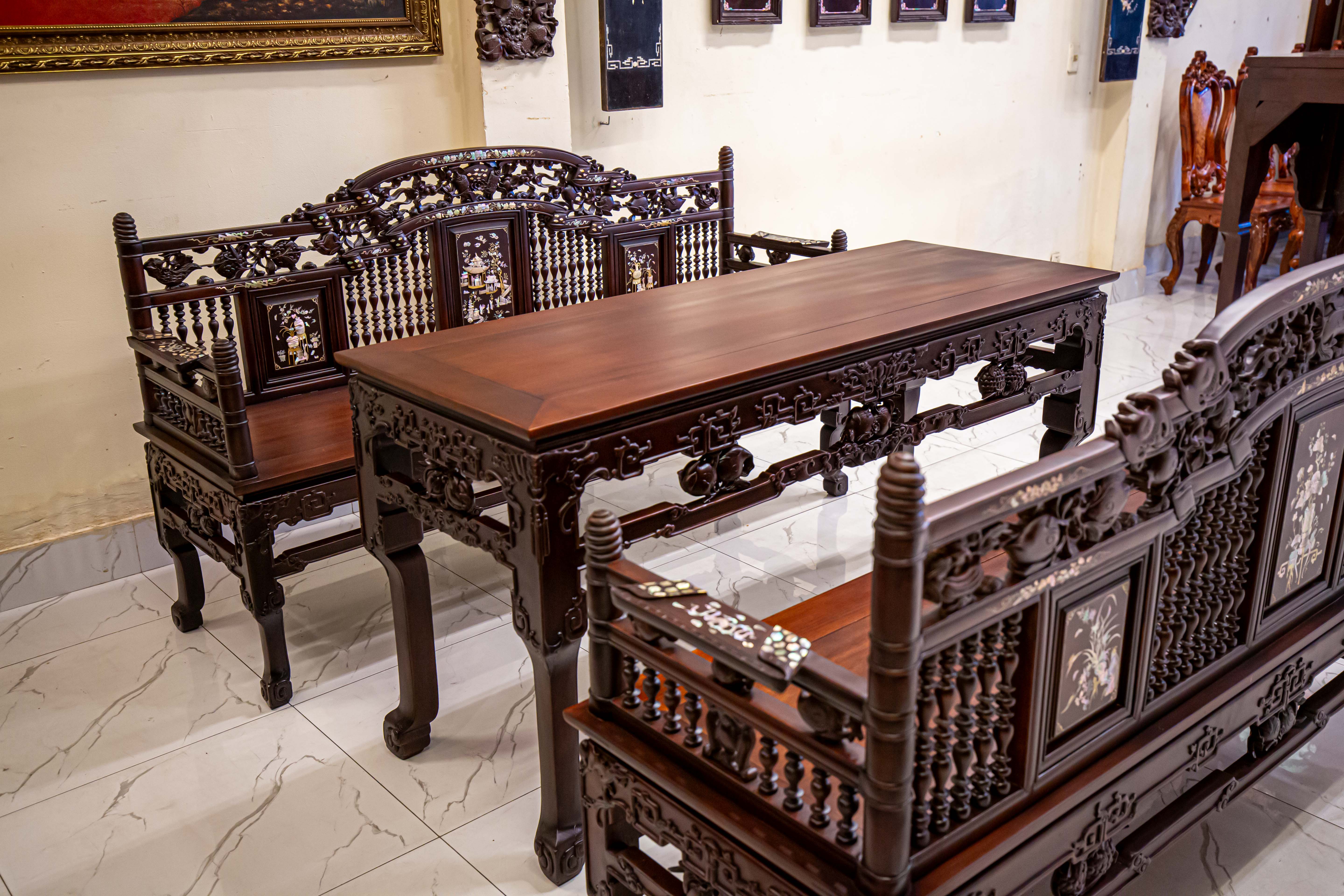 - Bàn ghế Louis, đôn trống gỗ trắc, bộ bàn ăn cẩn ốc, bàn ghế phương kỷ, bàn trung đường cẩn ốc xà cừ
