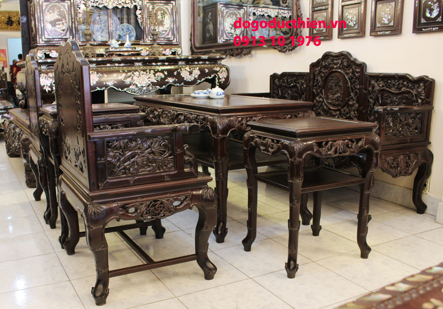 - Bàn ghế Louis, đôn trống gỗ trắc, bộ bàn ăn cẩn ốc, bàn ghế phương kỷ, bàn trung đường cẩn ốc xà cừ