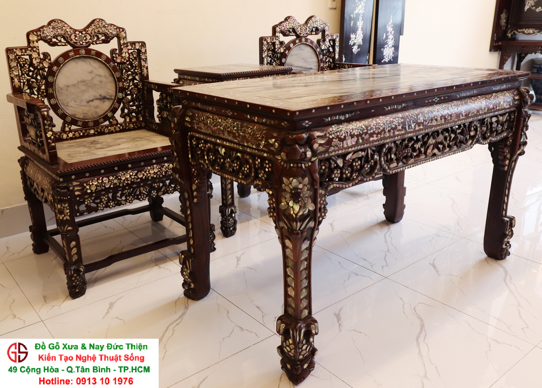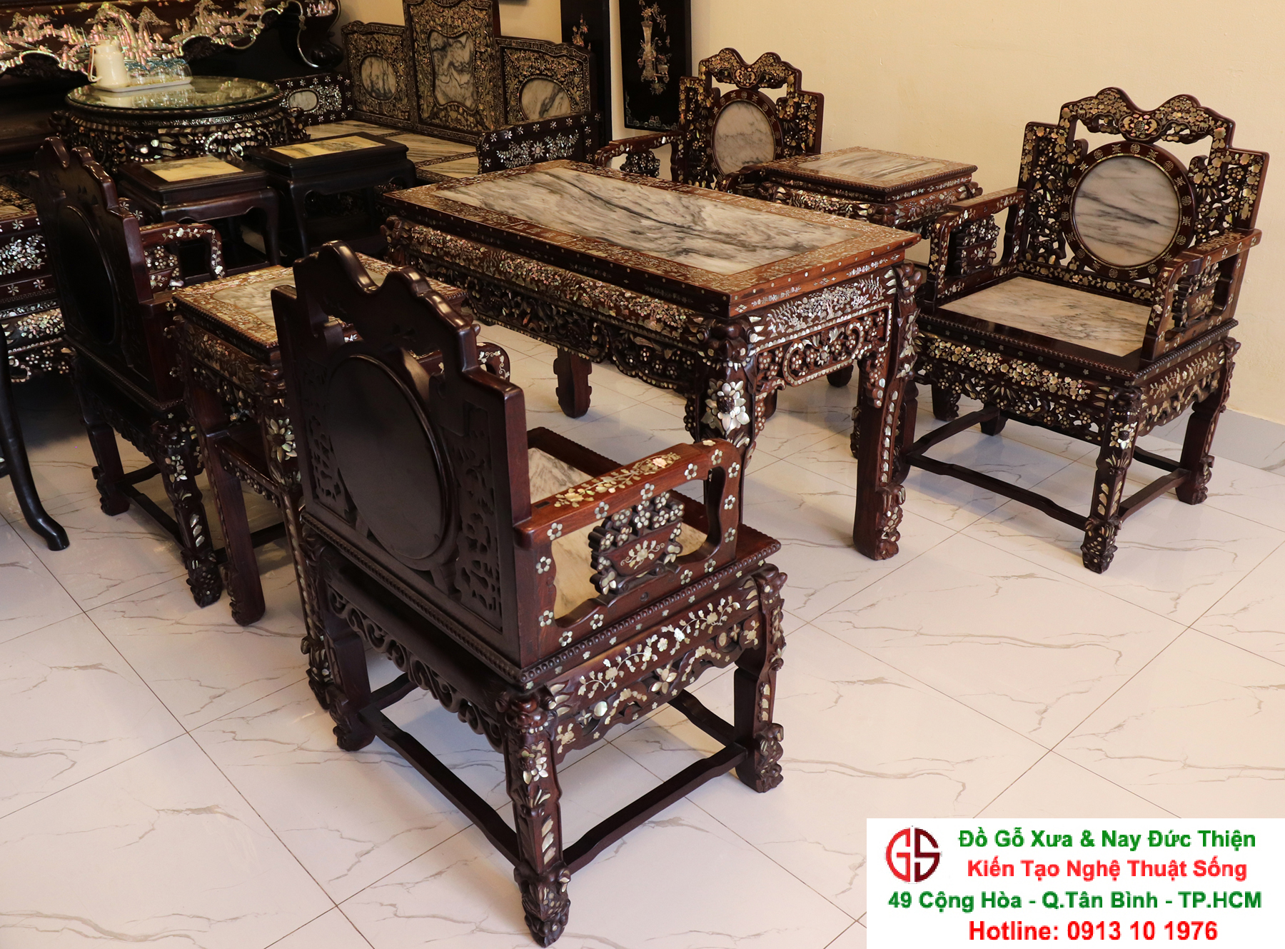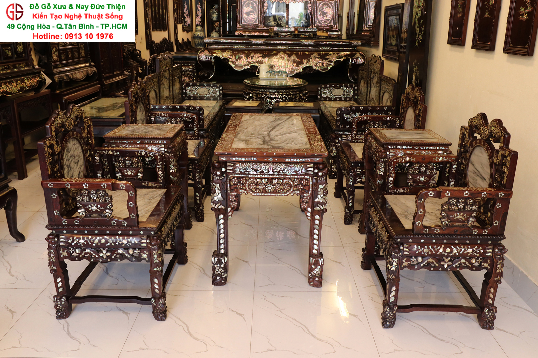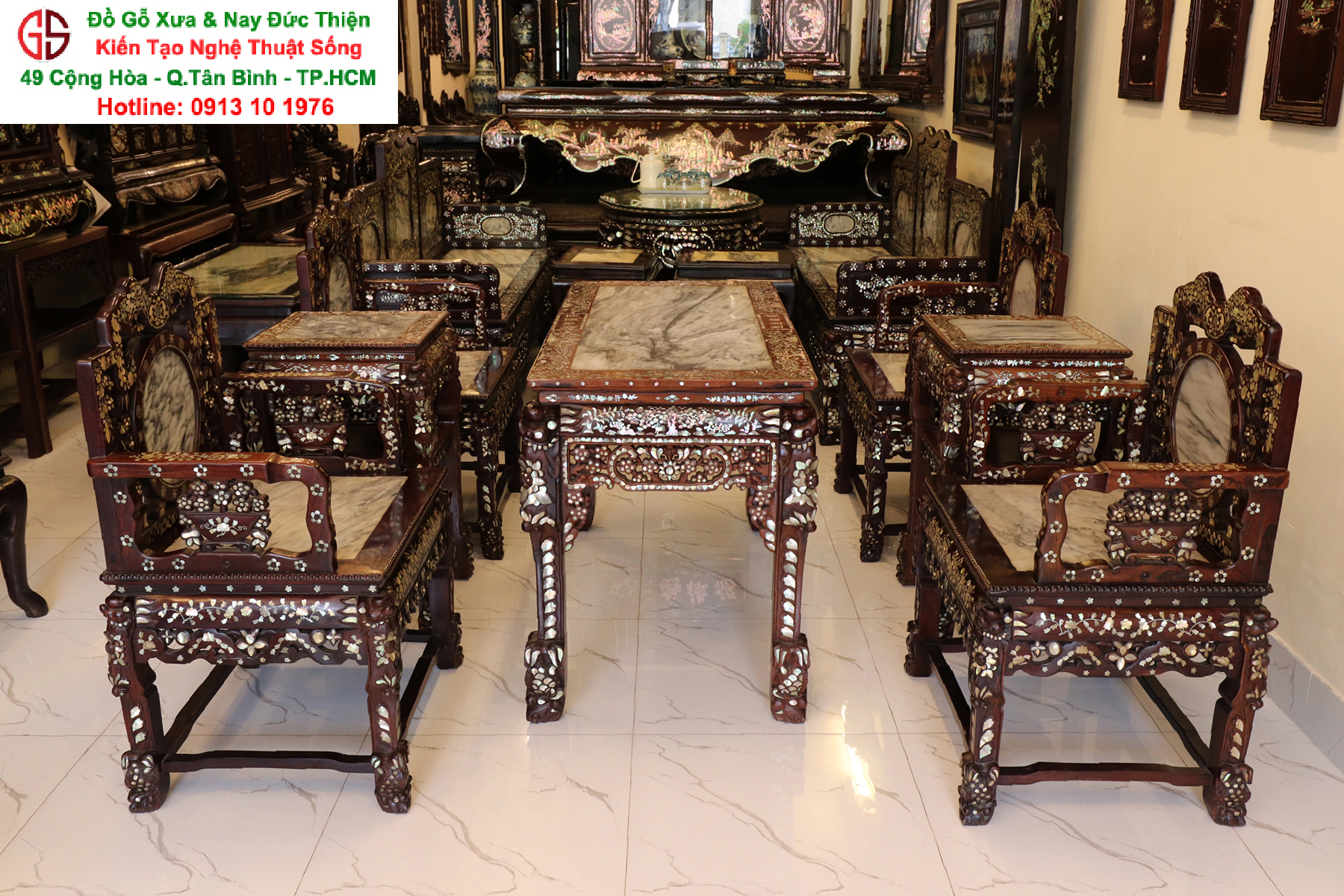 - Bàn ghế Louis, đôn trống gỗ trắc, bộ bàn ăn cẩn ốc, bàn ghế phương kỷ, bàn trung đường cẩn ốc xà cừ