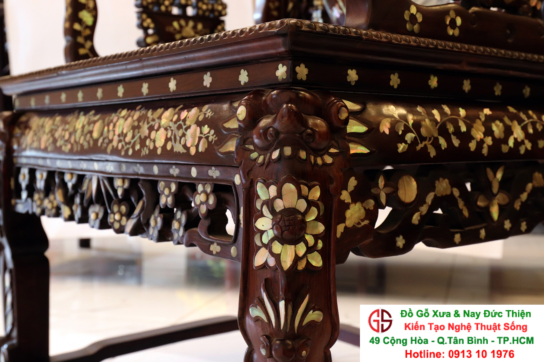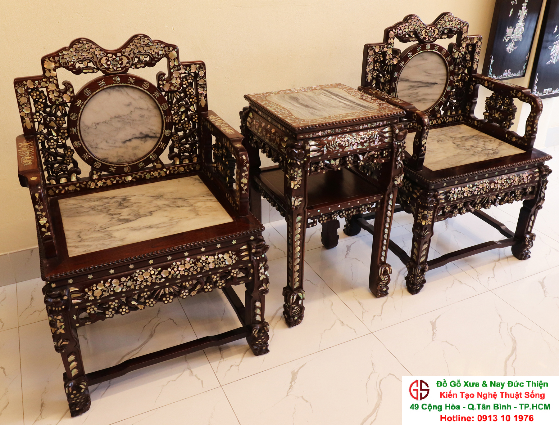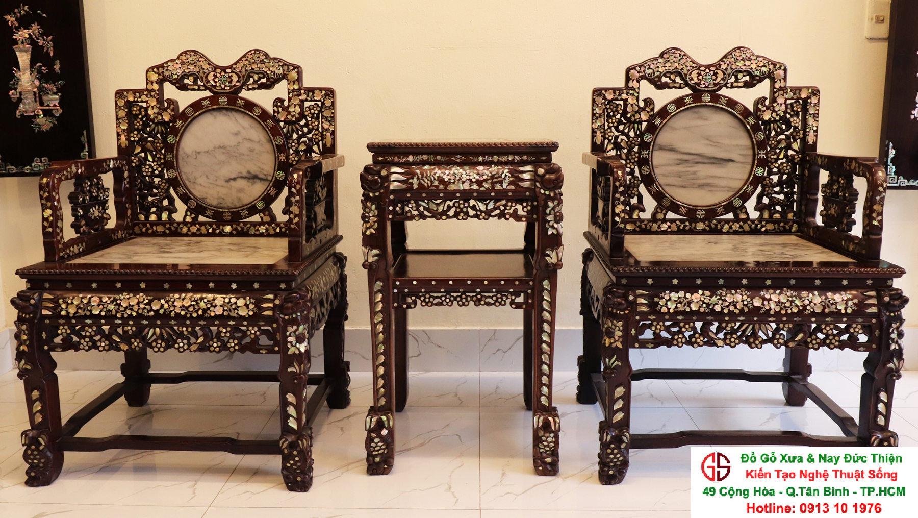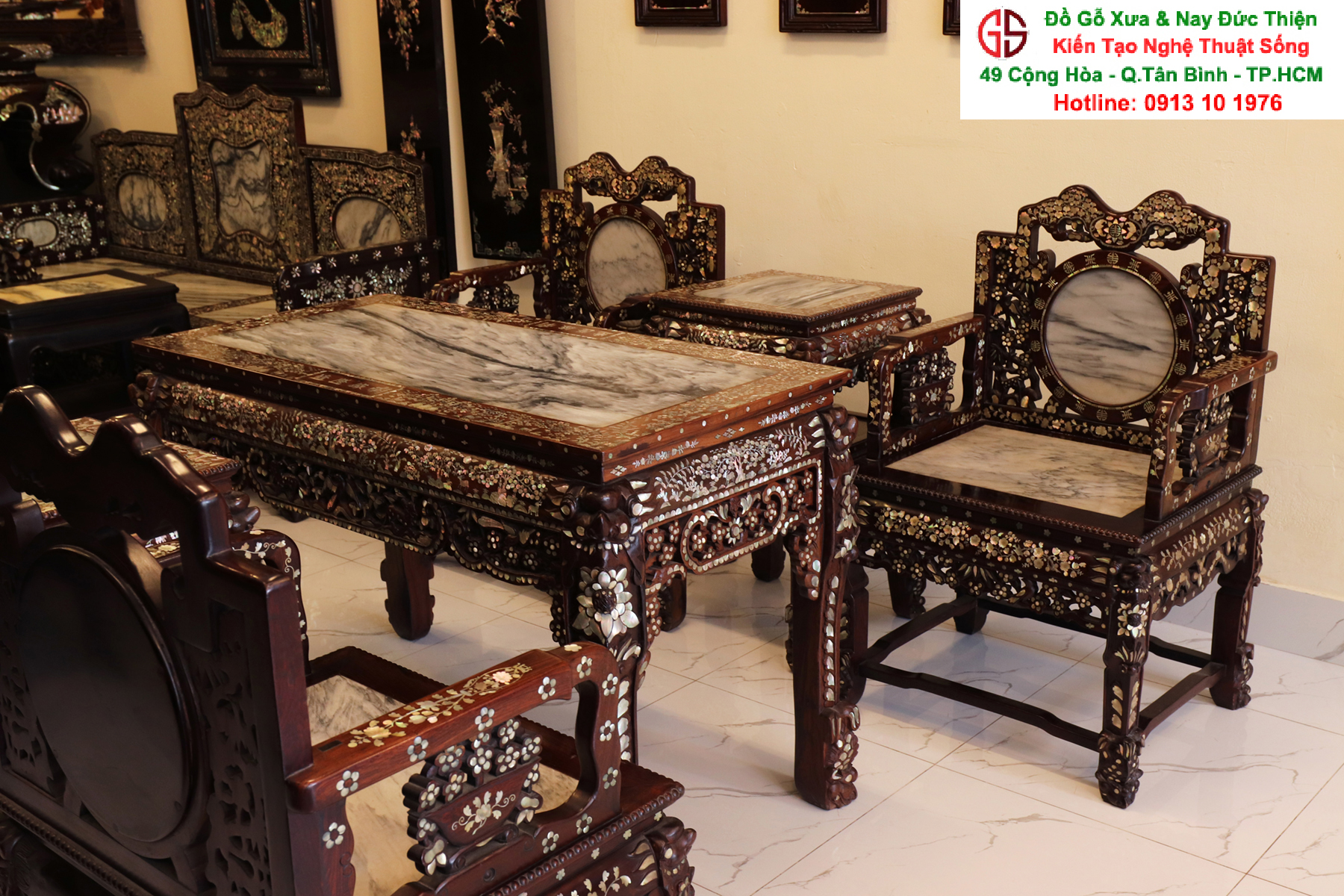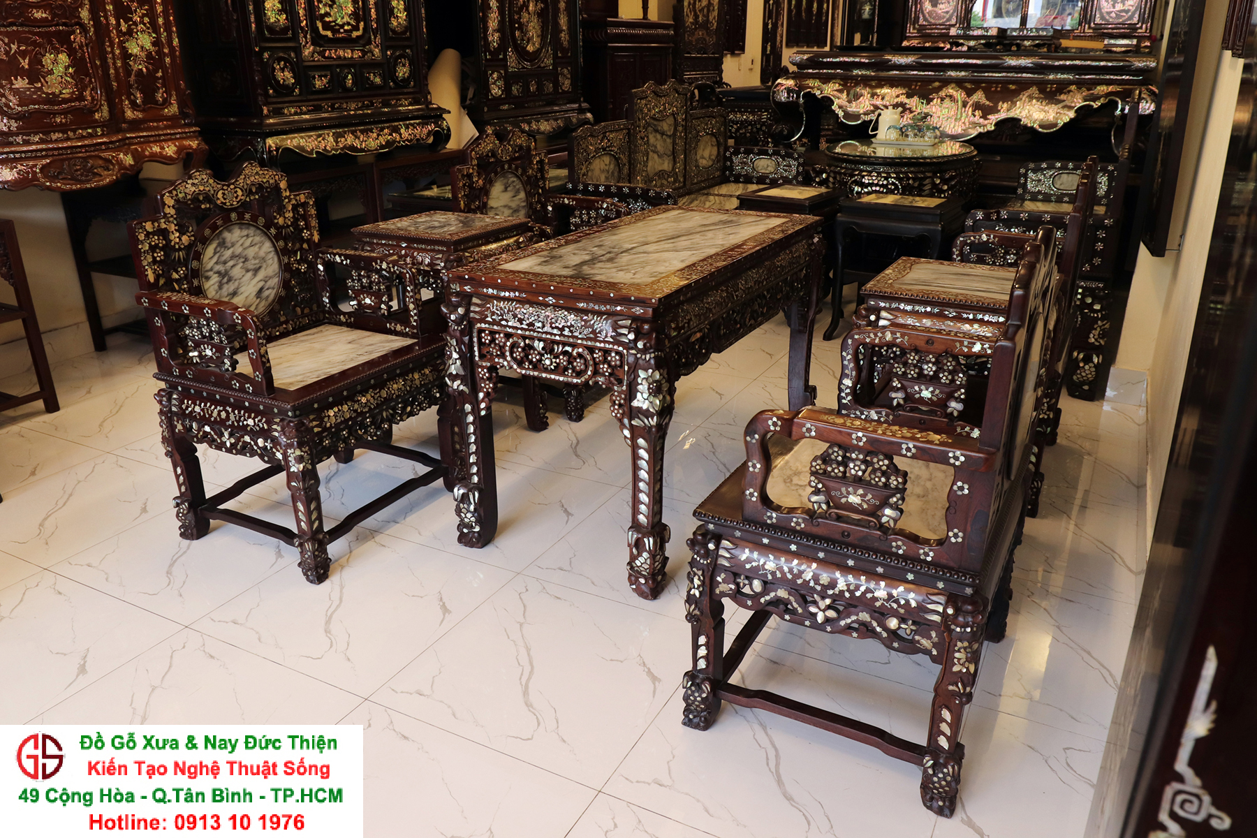 - Bàn ghế Louis, đôn trống gỗ trắc, bộ bàn ăn cẩn ốc, bàn ghế phương kỷ, bàn trung đường cẩn ốc xà cừ