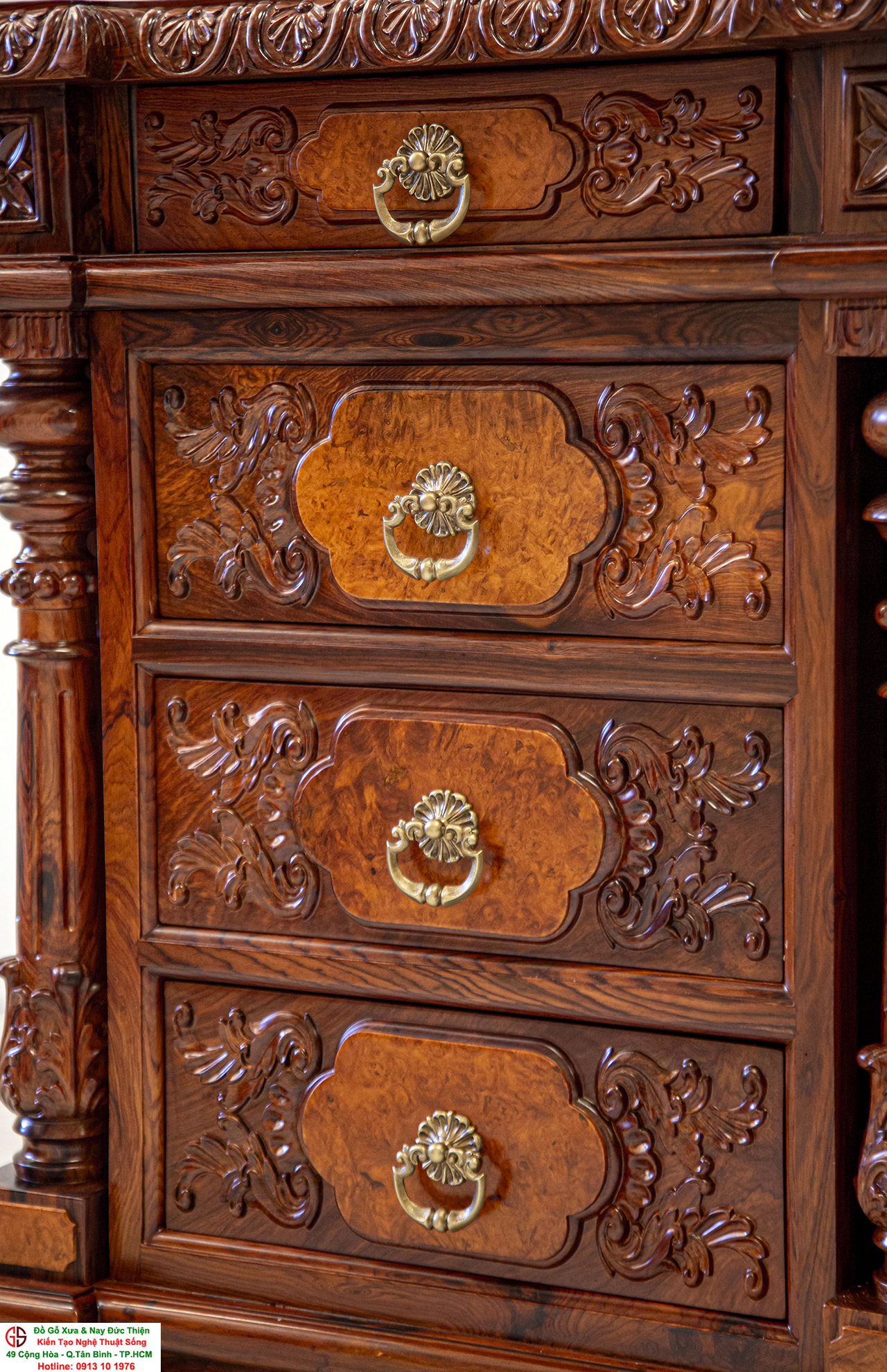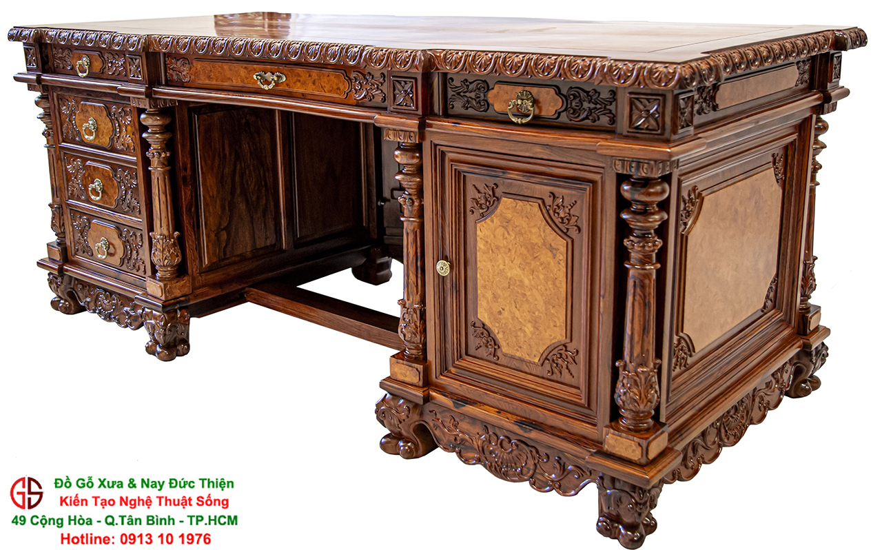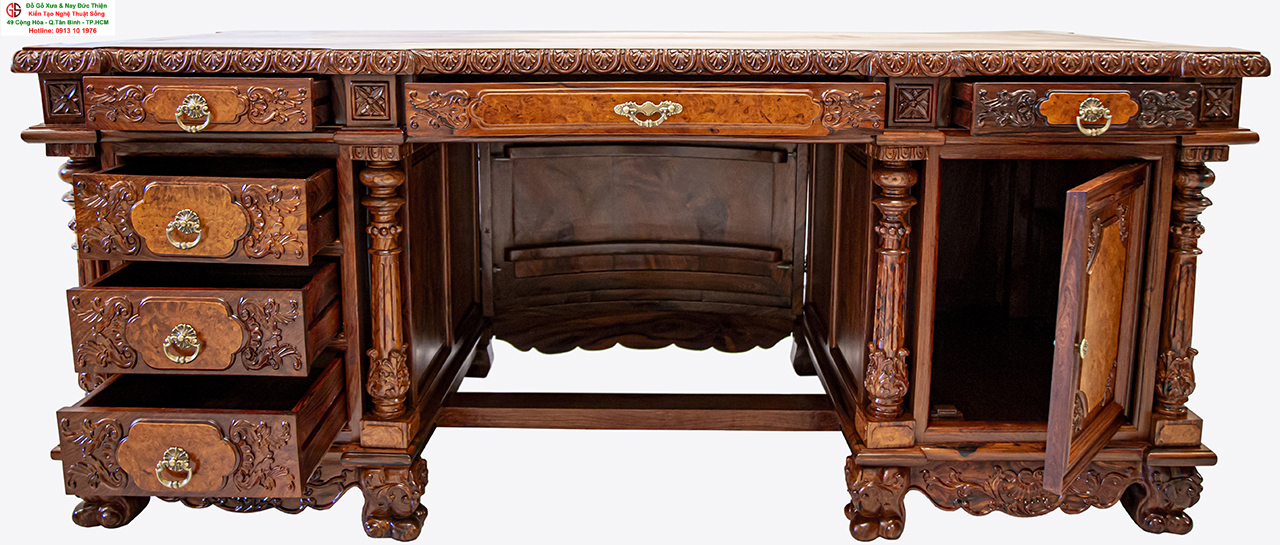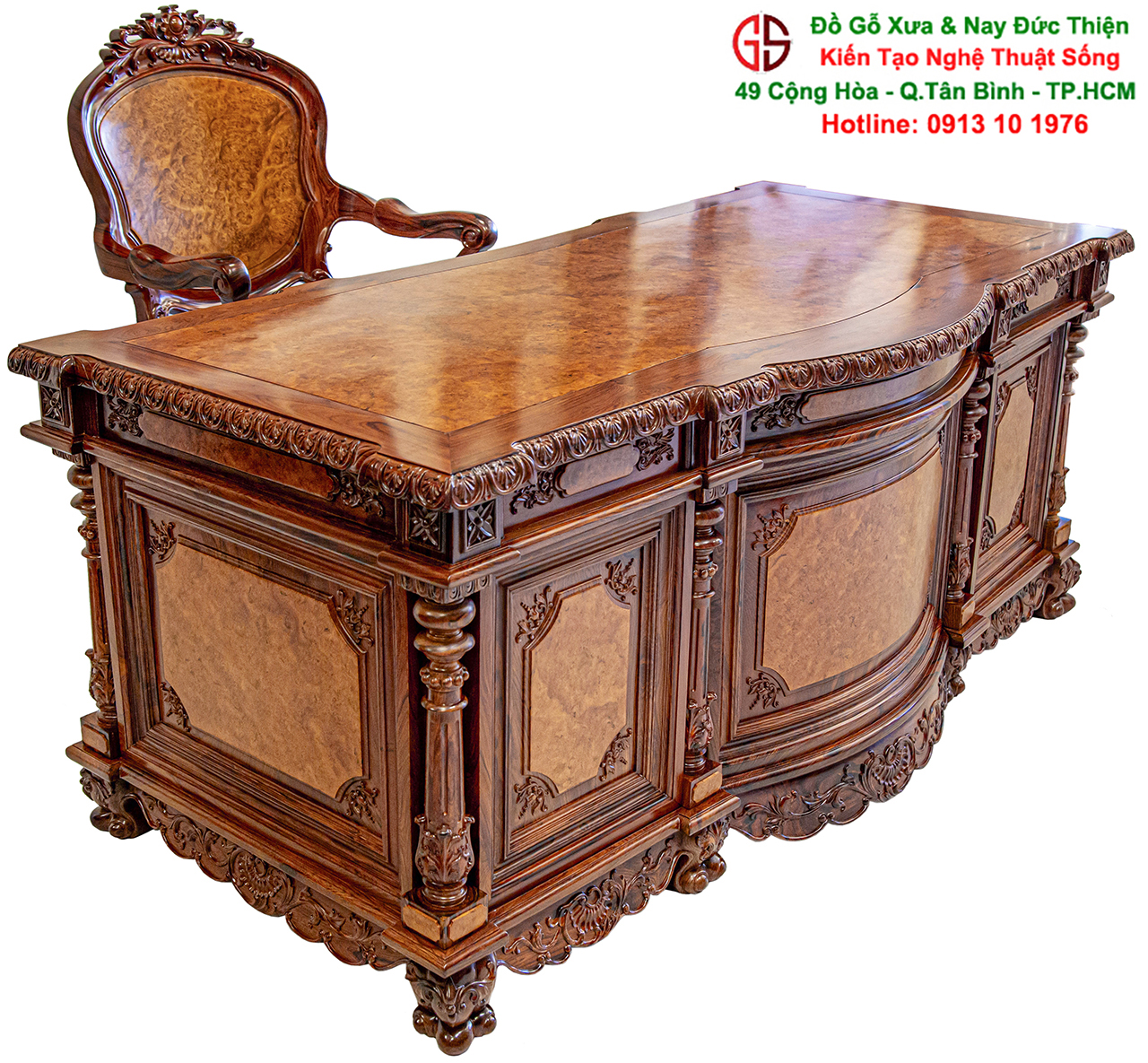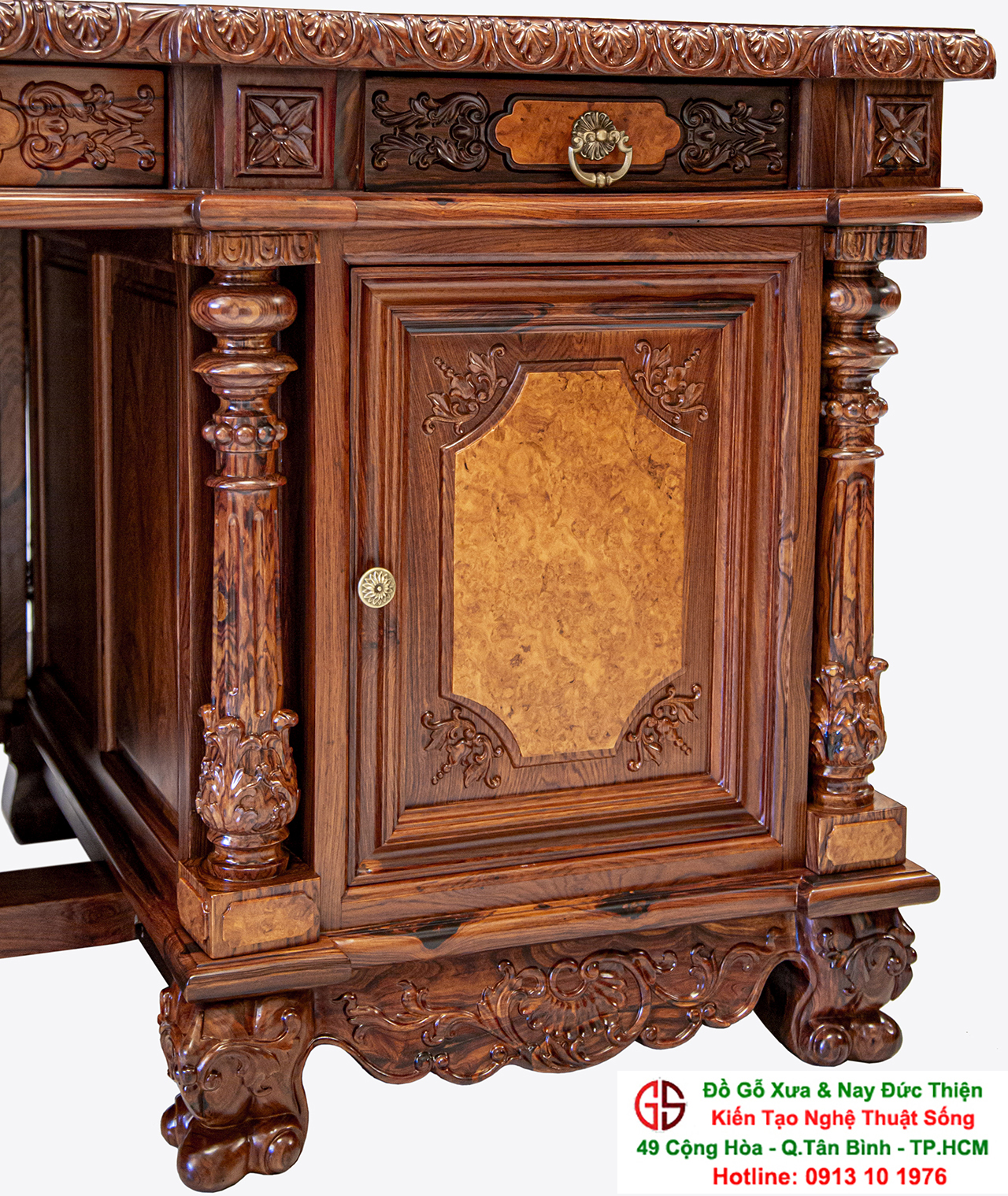 Bộ bàn làm việc làm từ gỗ quý hiếm cẩm lai kết hợp với gỗ nu là biểu tượng của sự sang trọng, quyền uy và đẳng cấp bậc nhất, dành riêng cho các chủ tịch, doanh nhân và giới tinh hoa. Sự kết hợp hoàn mỹ giữa hai loại gỗ quý này không chỉ mang lại vẻ đẹp tinh tế, mà còn thể hiện sức mạnh và uy quyền của người sở hữu.