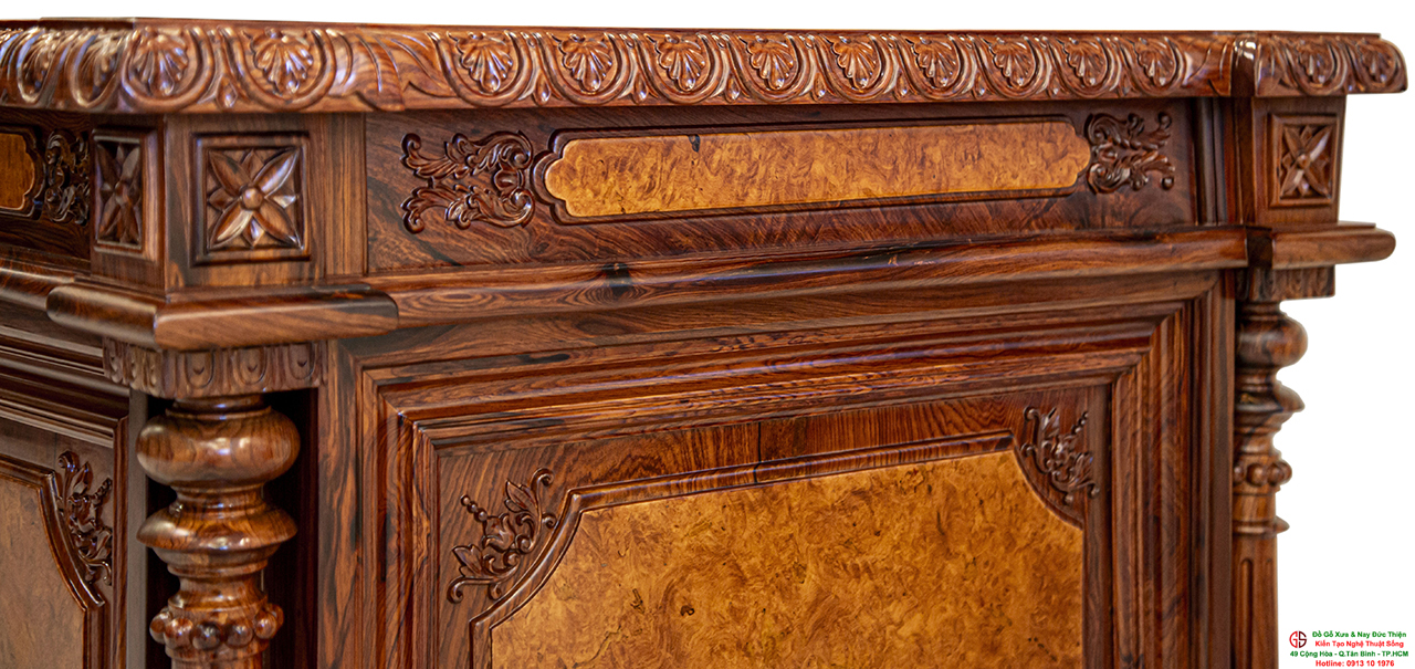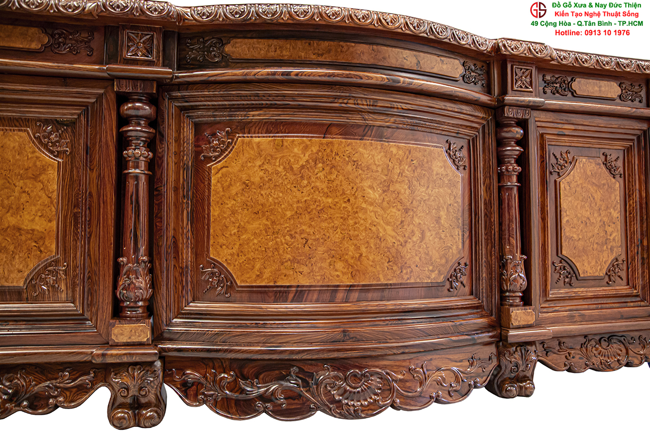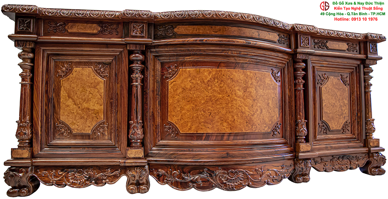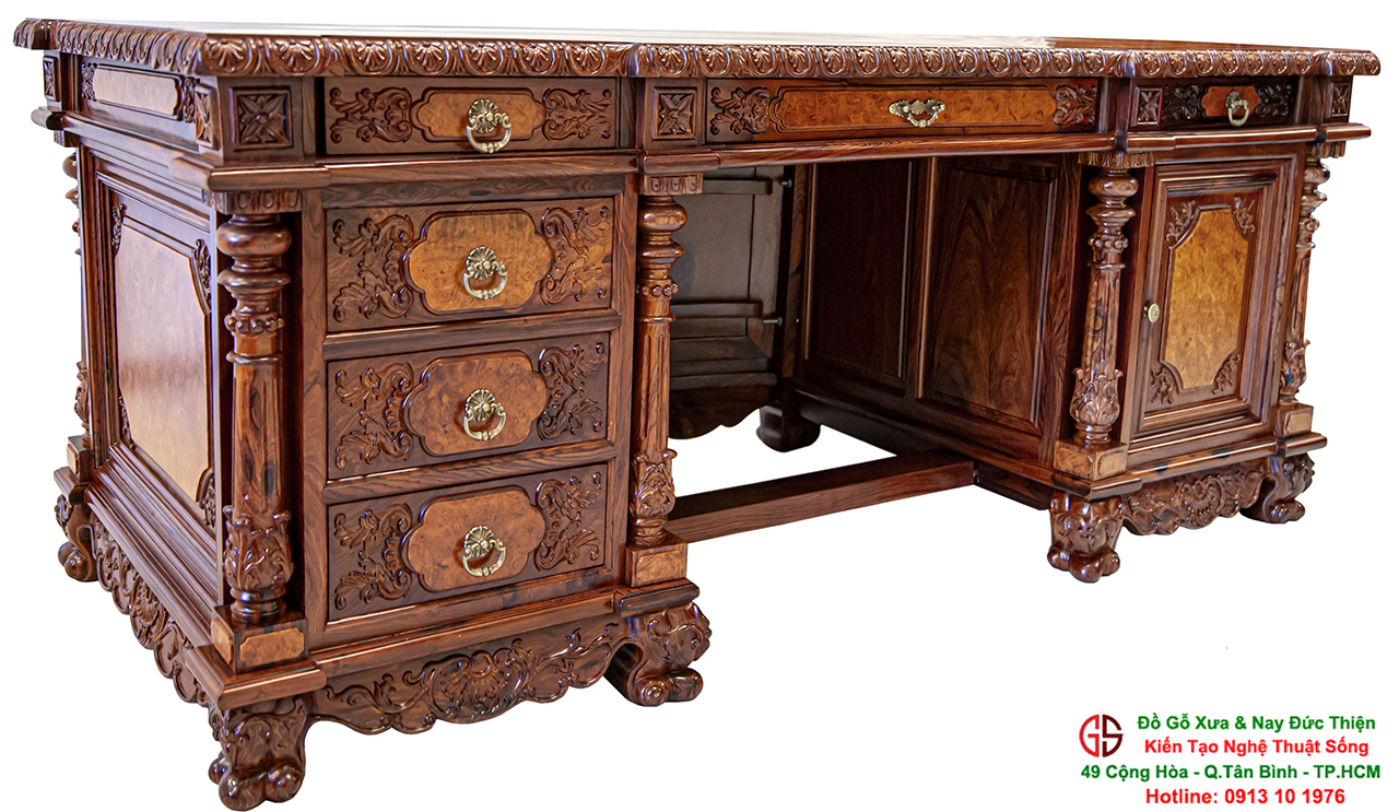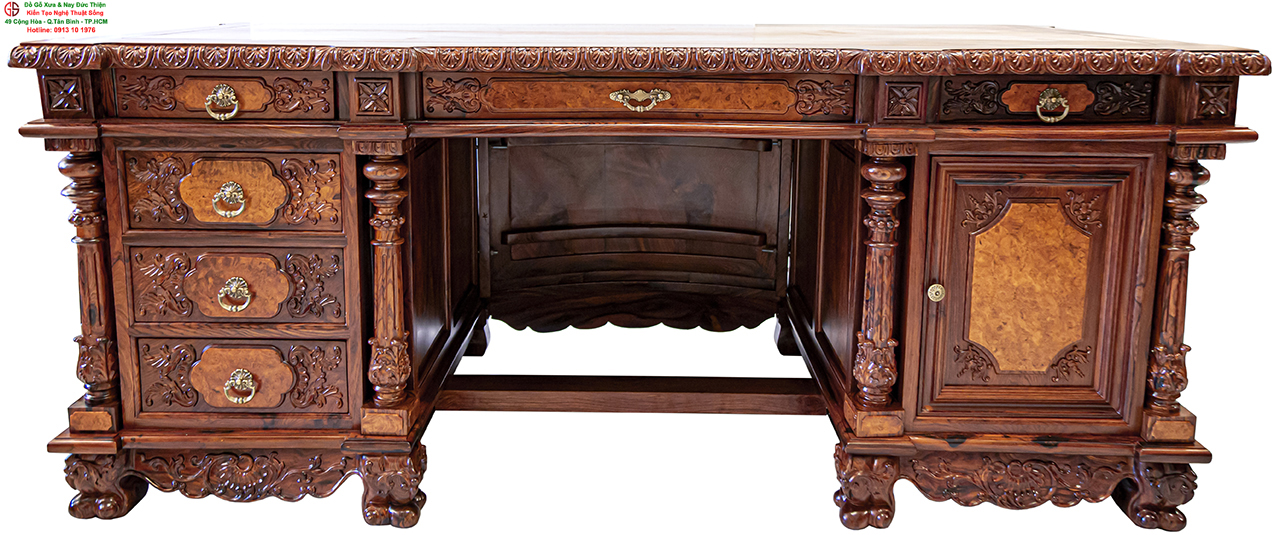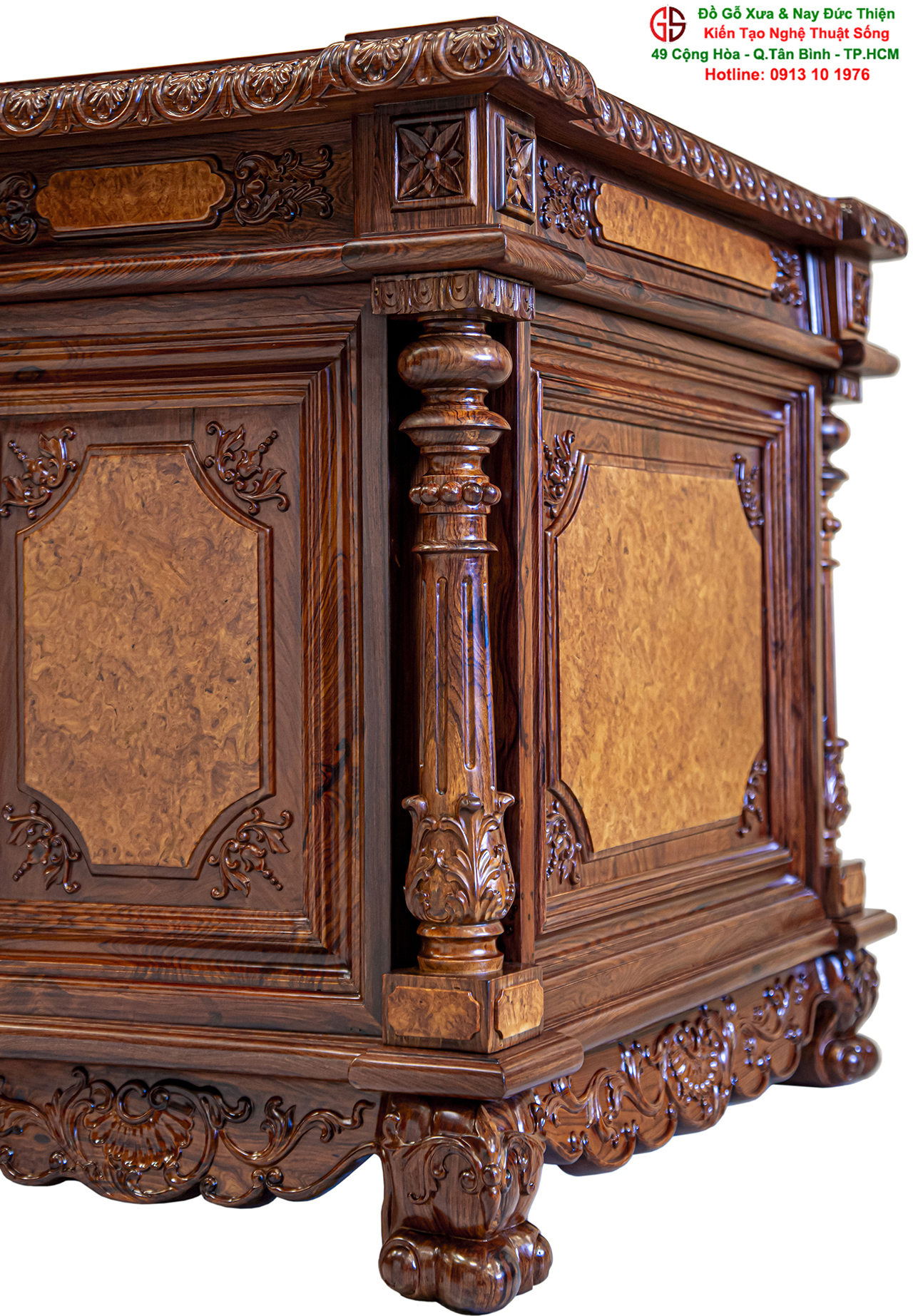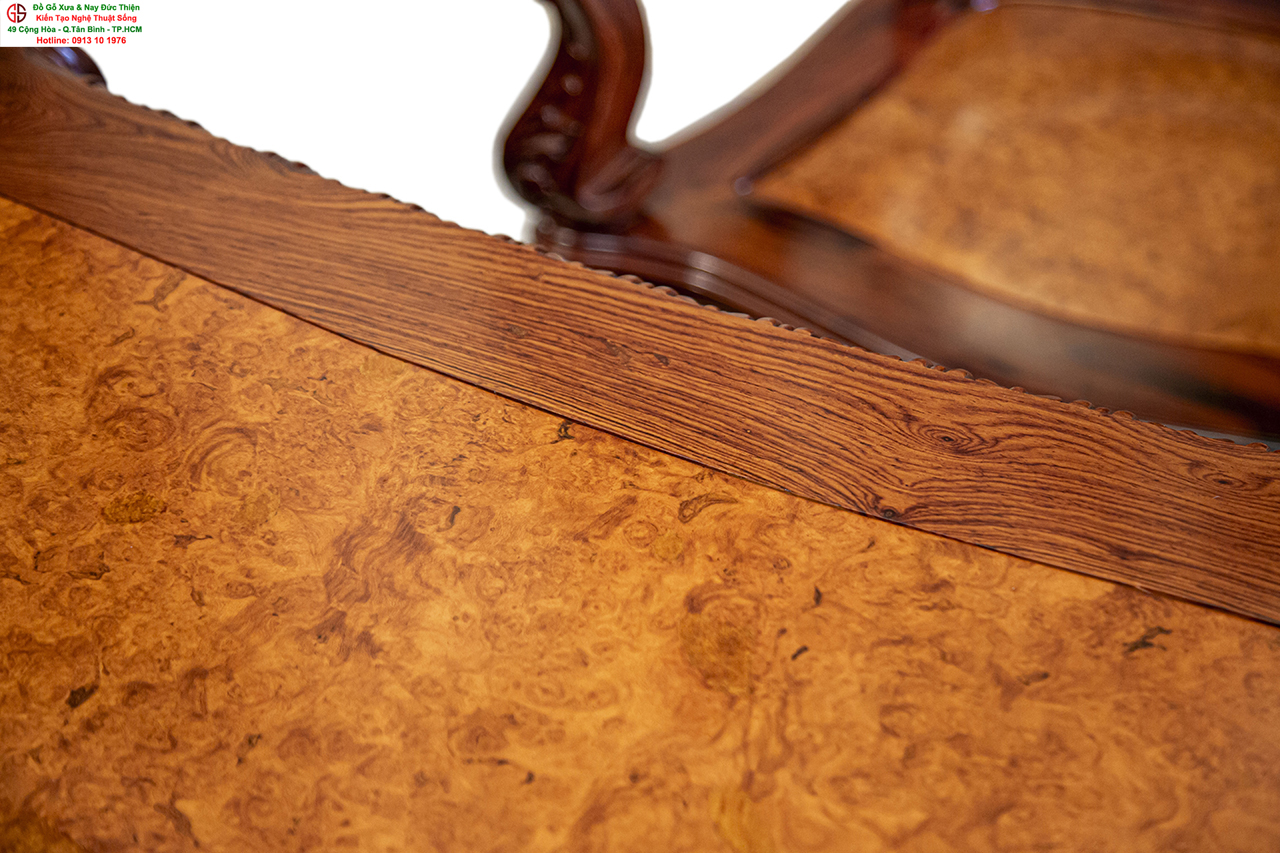 Bộ bàn làm việc làm từ gỗ quý hiếm cẩm lai kết hợp với gỗ nu là biểu tượng của sự sang trọng, quyền uy và đẳng cấp bậc nhất, dành riêng cho các chủ tịch, doanh nhân và giới tinh hoa. Sự kết hợp hoàn mỹ giữa hai loại gỗ quý này không chỉ mang lại vẻ đẹp tinh tế, mà còn thể hiện sức mạnh và uy quyền của người sở hữu.