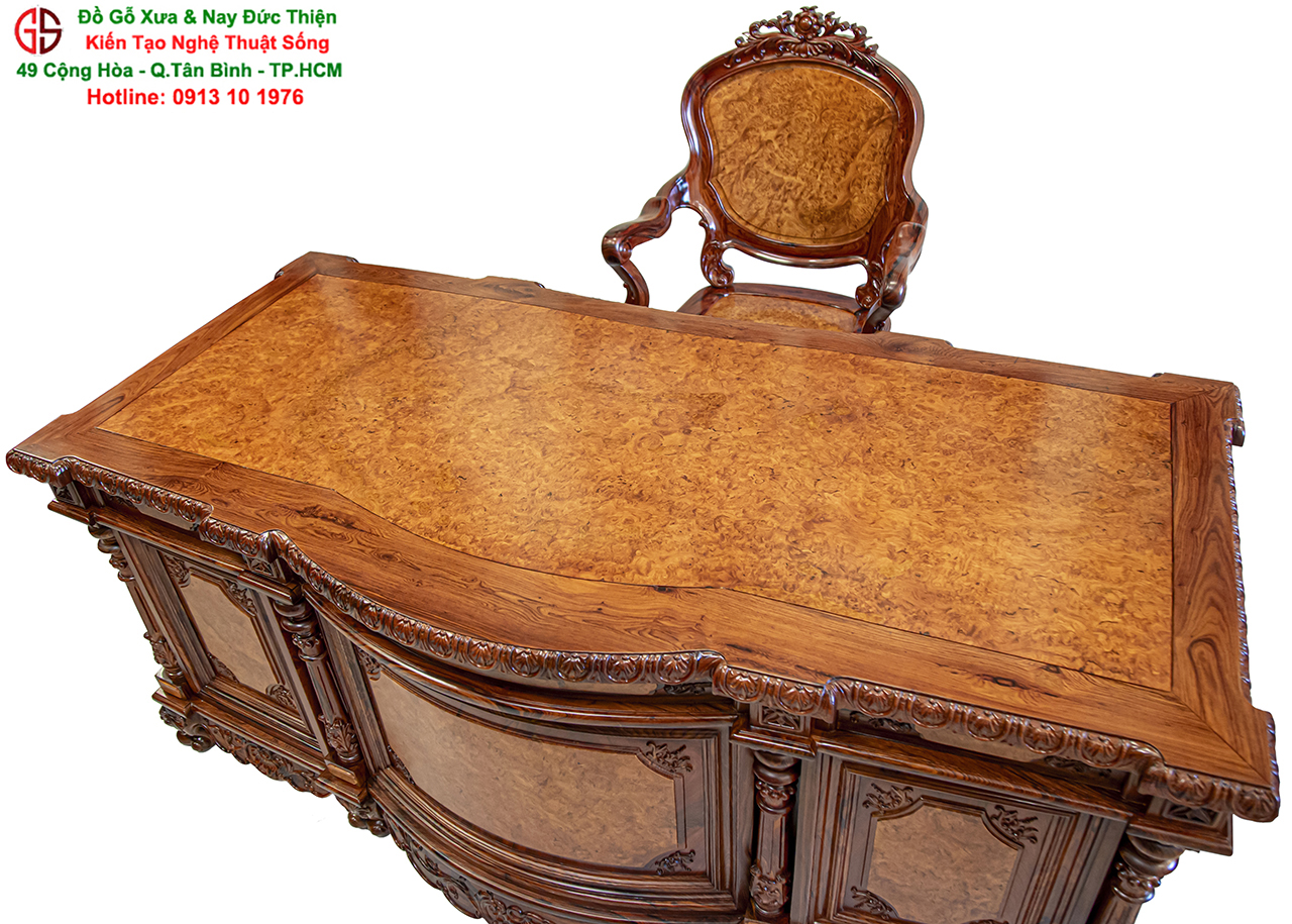 Sở hữu bộ bàn làm việc từ gỗ cẩm lai kết hợp gỗ nu là sự đầu tư hoàn hảo vào giá trị và phong cách sống của chính bạn – một sản phẩm không chỉ mang vẻ đẹp mà còn có giá trị sưu tầm và đẳng cấp thời thượng, khẳng định vị thế "siêu VIP" mà không gì sánh bằng.