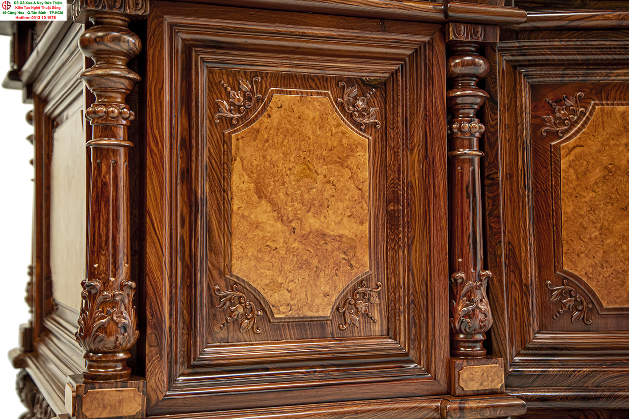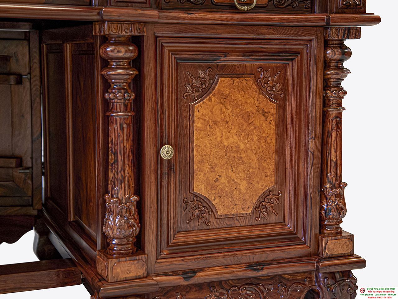 Khi kết hợp cẩm lai và gỗ nu, bộ bàn làm việc không chỉ là vật dụng mà còn là tác phẩm nghệ thuật, mang đến không gian làm việc sang trọng, quyền quý. Đây là sự kết tinh giữa tinh hoa tự nhiên và bàn tay khéo léo của các nghệ nhân lành nghề, tạo nên sự giao thoa hoàn hảo giữa cổ điển và hiện đại.