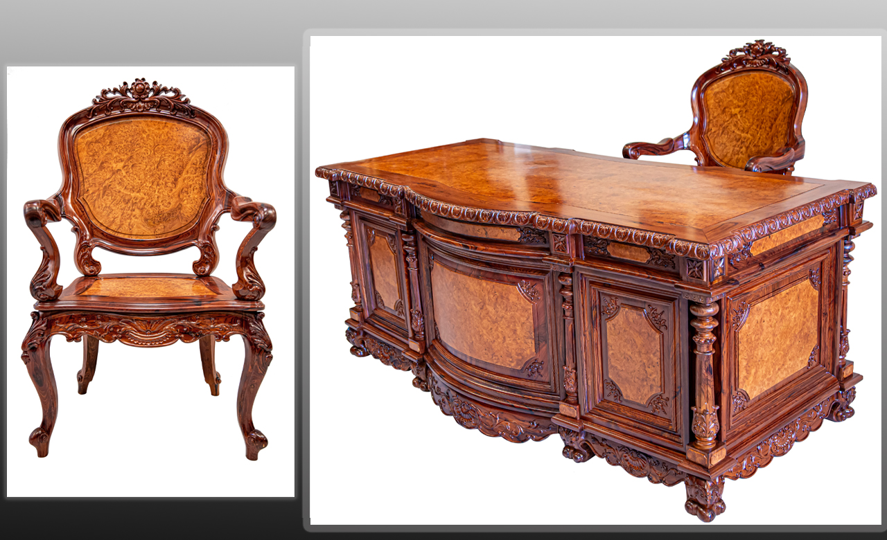 Bộ bàn làm việc làm từ gỗ quý hiếm cẩm lai kết hợp với gỗ nu là biểu tượng của sự sang trọng, quyền uy và đẳng cấp bậc nhất, dành riêng cho các chủ tịch, doanh nhân và giới tinh hoa