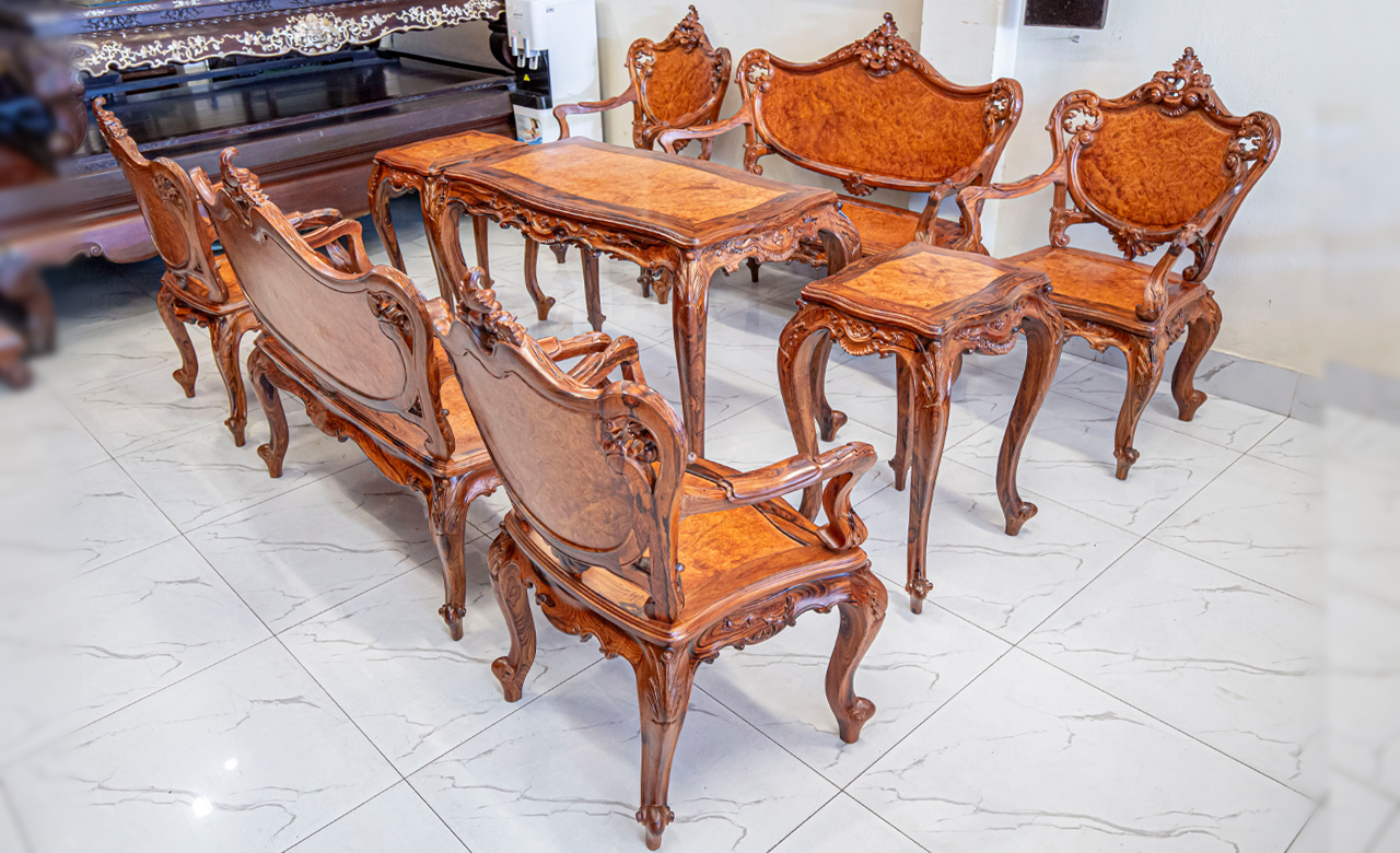 Bộ Bàn Ăn Gỗ Cẩm Nu Quý Hiếm - Phong Cách Pháp Sang Trọng