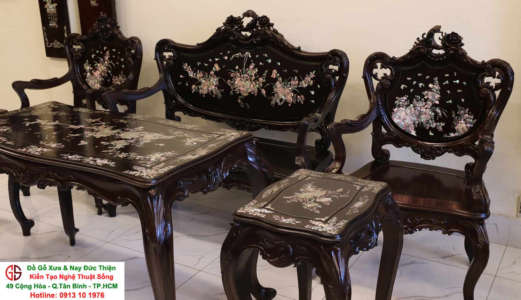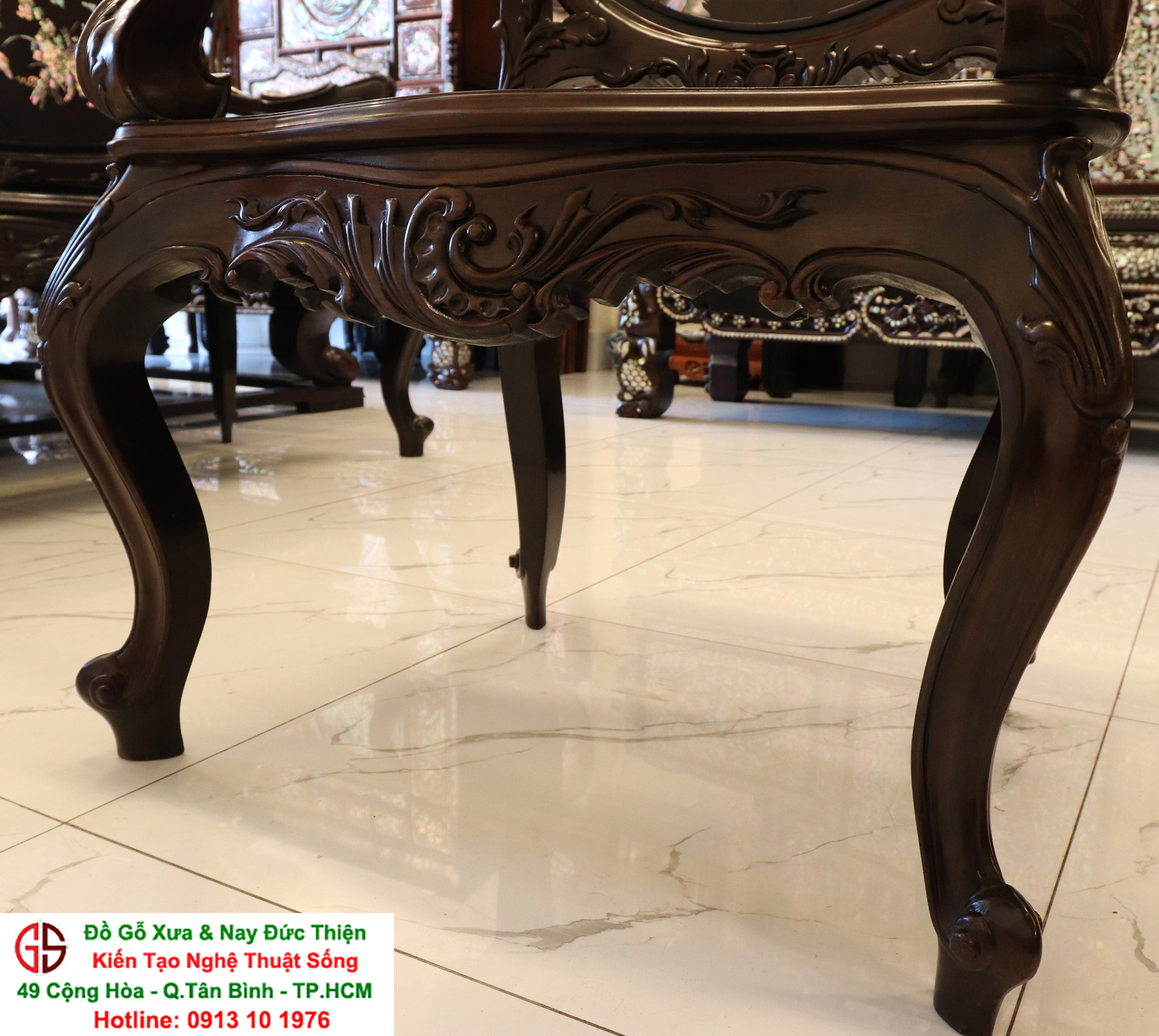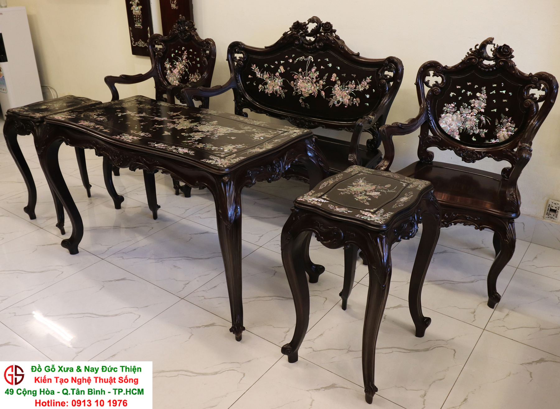 - Bàn ghế Louis, đôn trống gỗ trắc, bộ bàn ăn cẩn ốc, bàn ghế phương kỷ, bàn trung đường cẩn ốc xà cừ