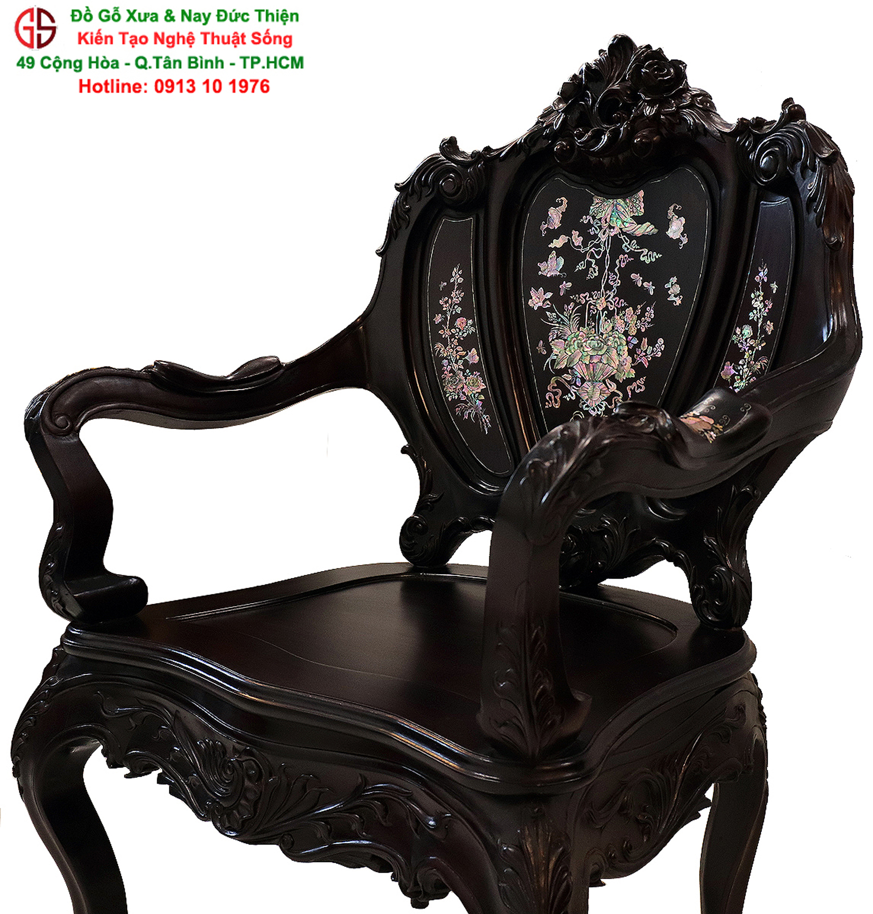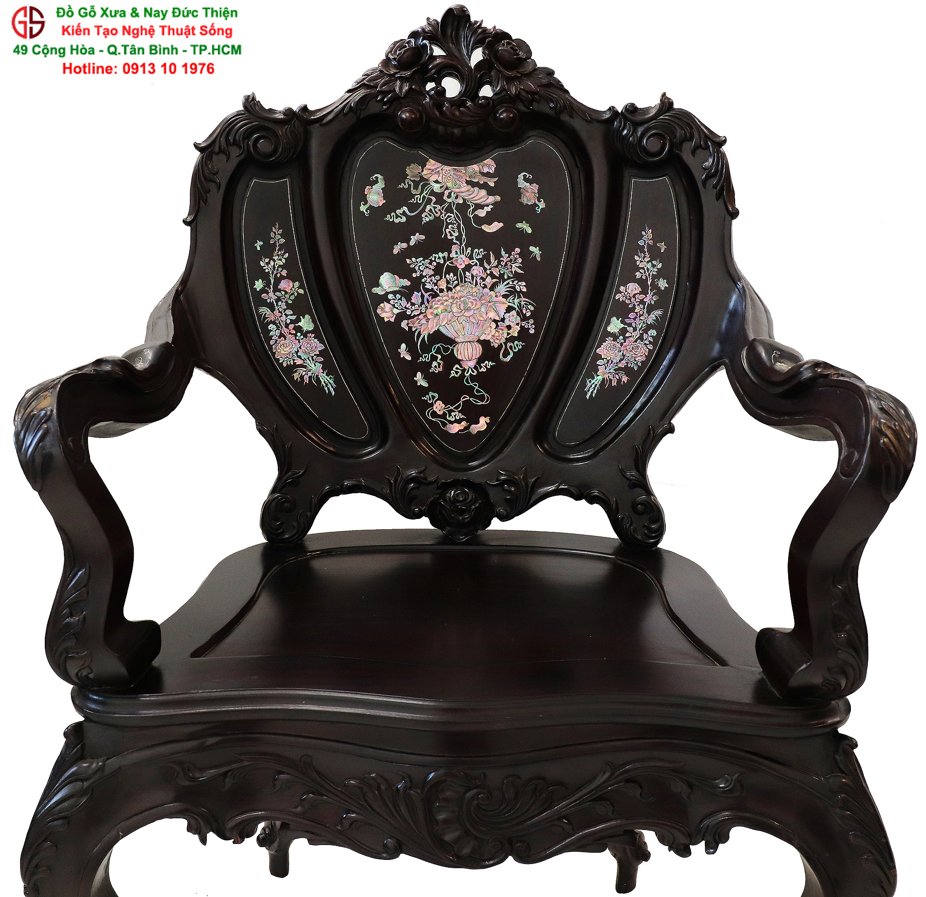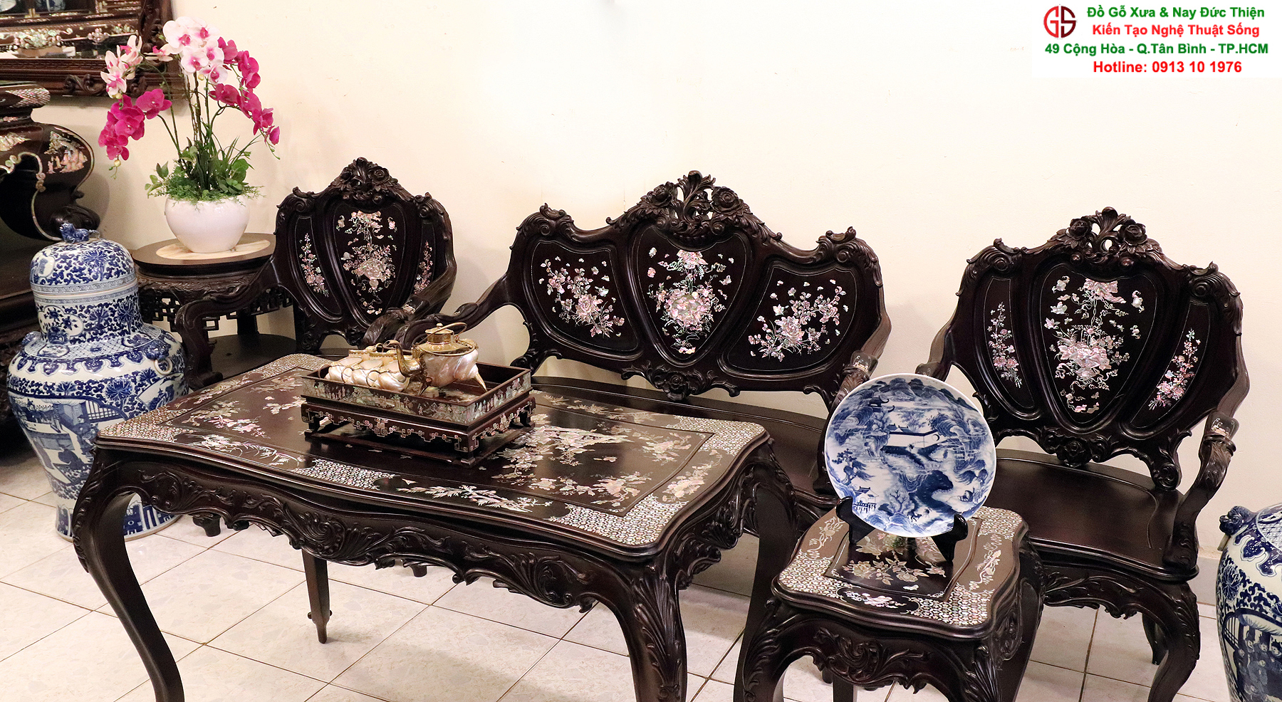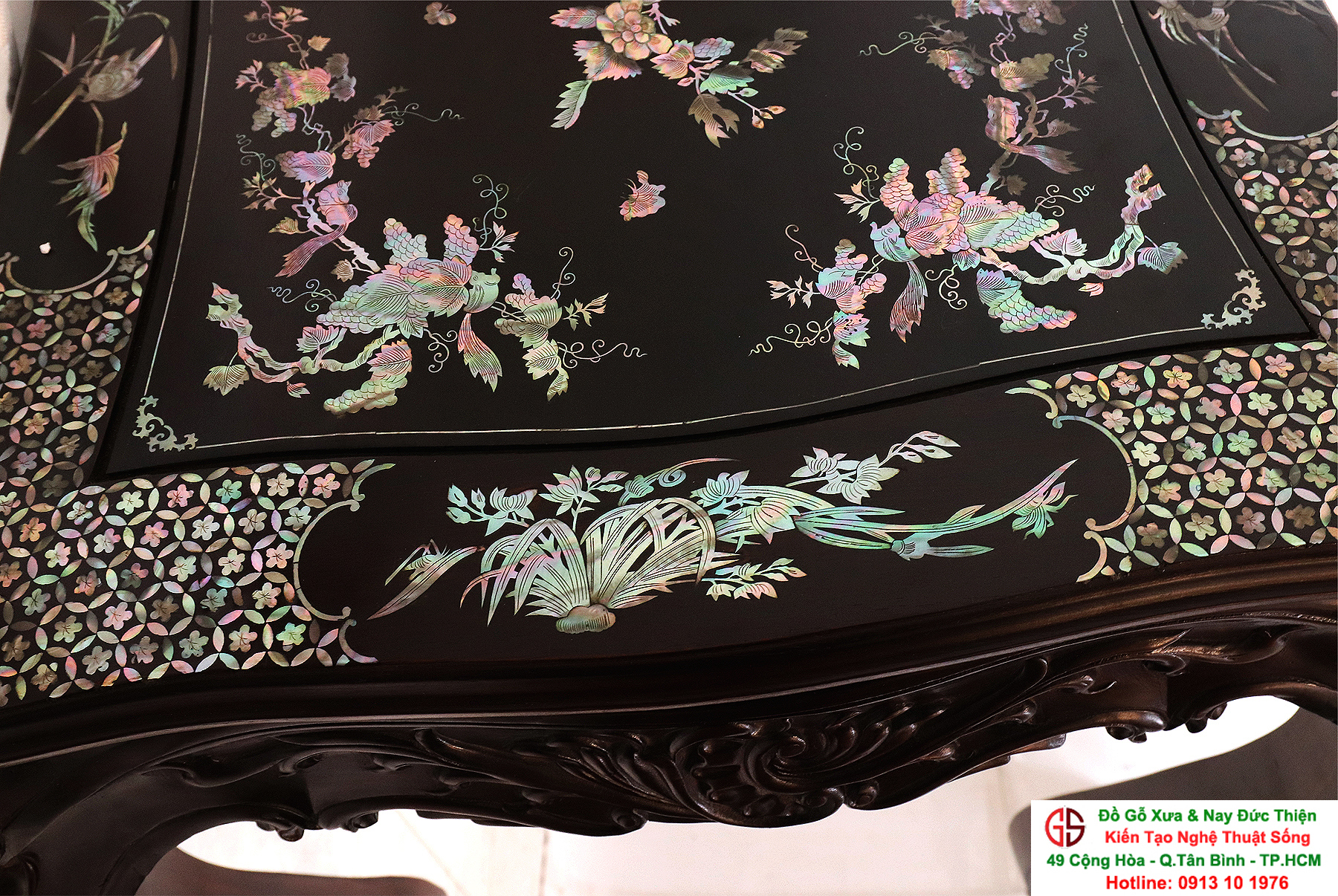 - Bàn ghế Louis, đôn trống gỗ trắc, bộ bàn ăn cẩn ốc, bàn ghế phương kỷ, bàn trung đường cẩn ốc xà cừ