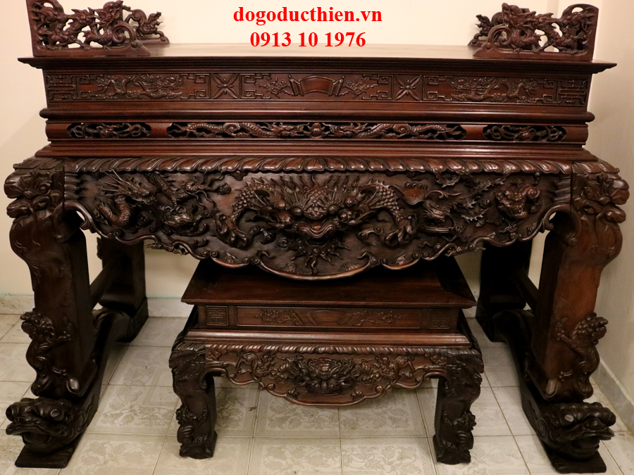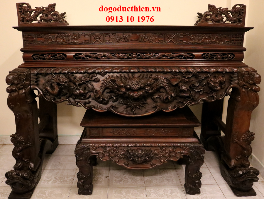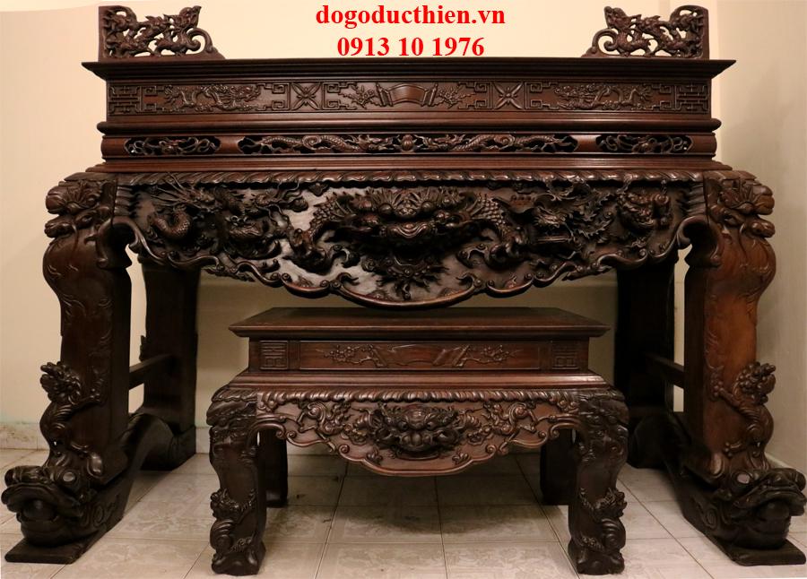 Đồ gỗ Đức Thiện xin giới thiệu với các bạn bộ bàn thờ Long quấn thủy, Phượng tha thư. Với chất liệu gỗ gụ mật qua bàn tai người nghệ nhân tạo lên 1 sản phẩm rất đẹp. Xứng đáng là món đồ quý trong gian phòng thờ của bạn.