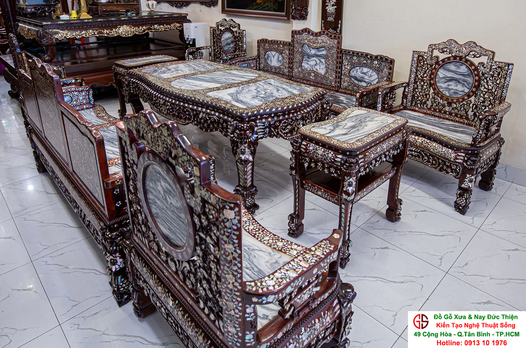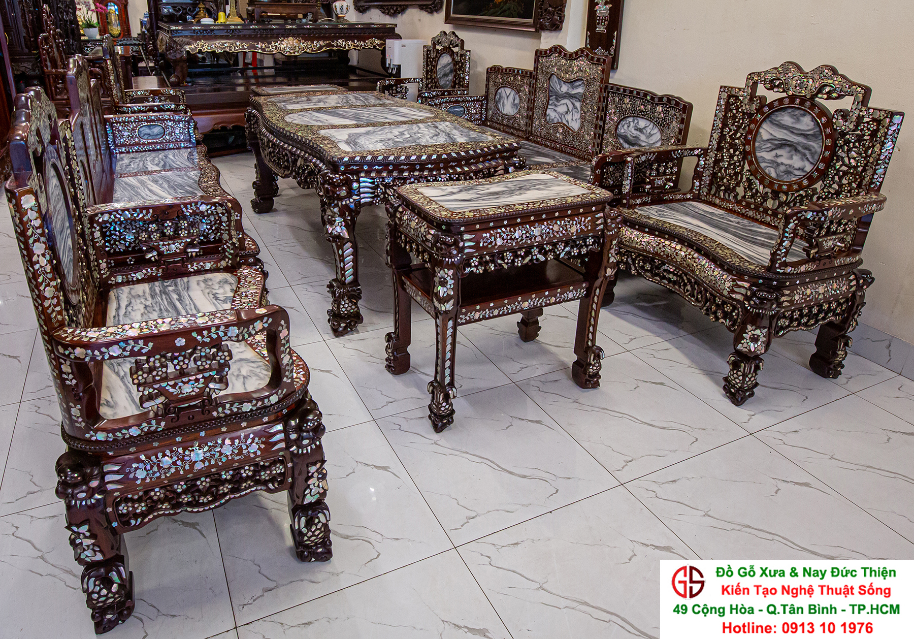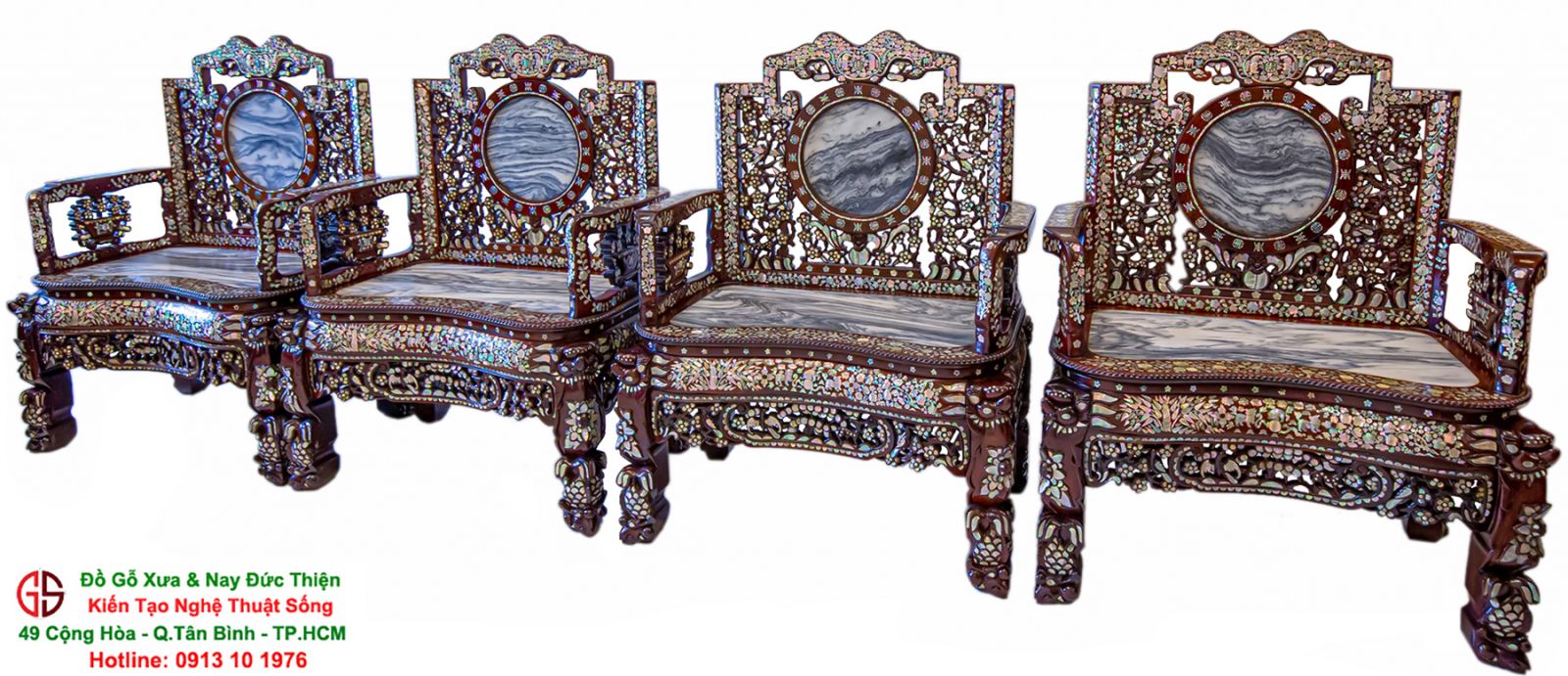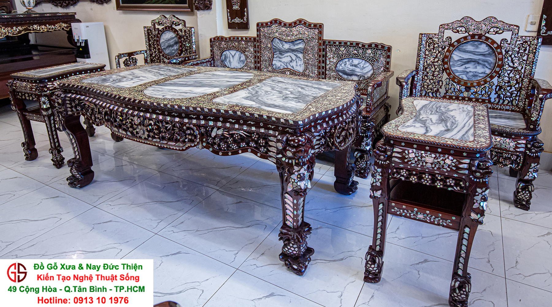- Bàn ghế Louis, đôn trống gỗ trắc, bộ bàn ăn cẩn ốc, bàn ghế phương kỷ, bàn trung đường cẩn ốc xà cừ
