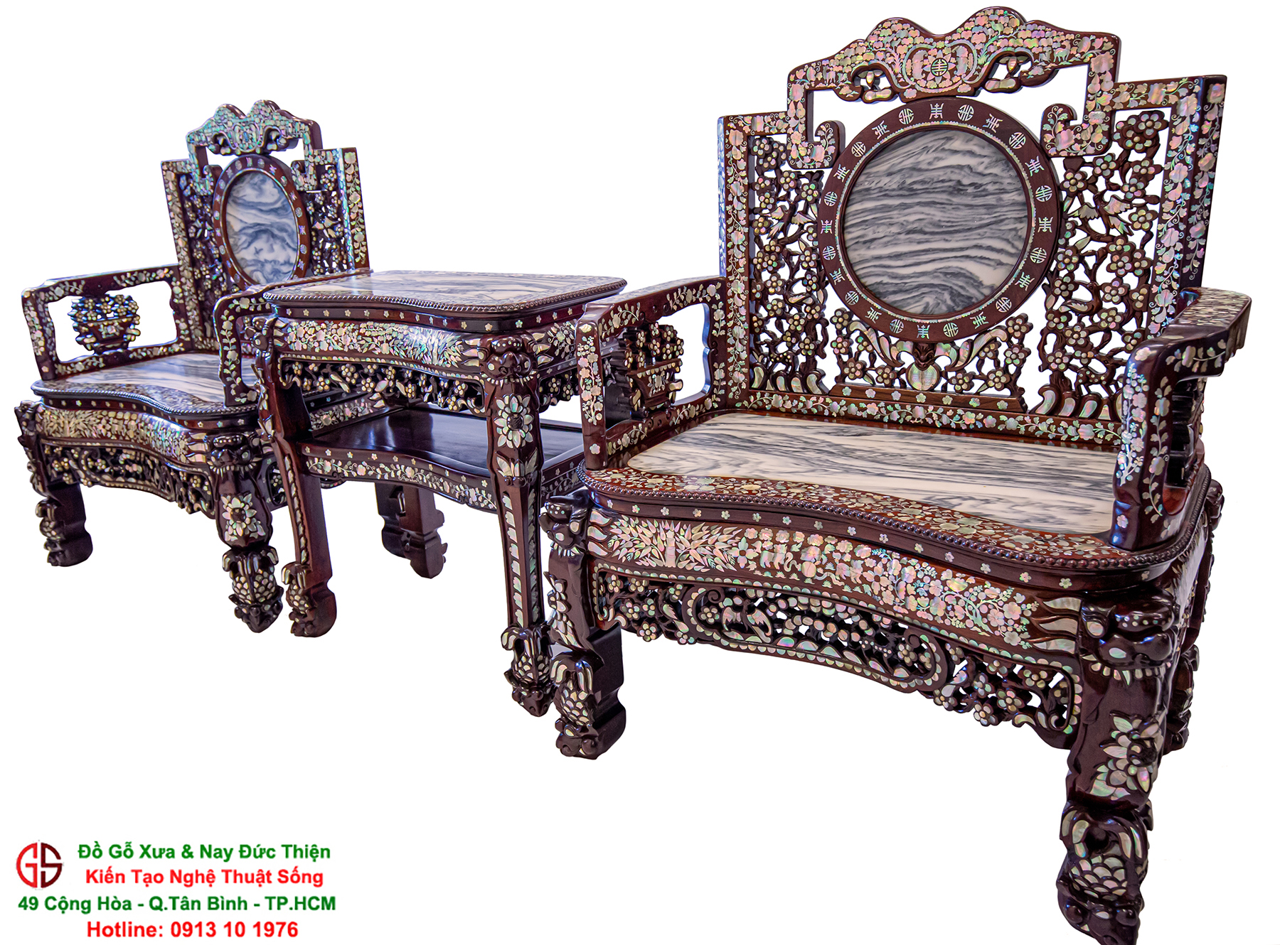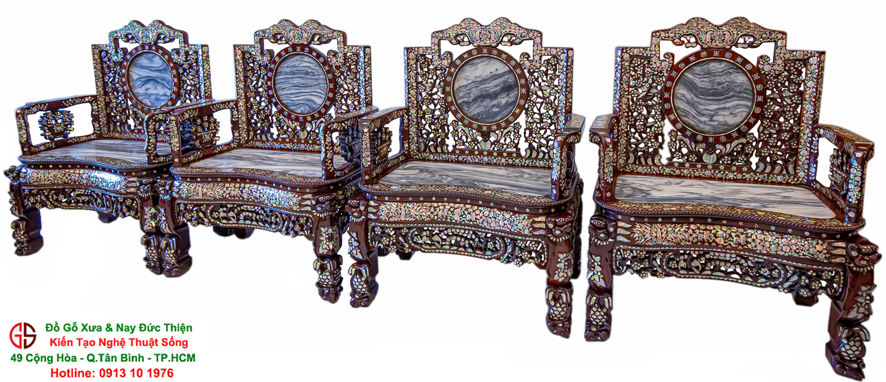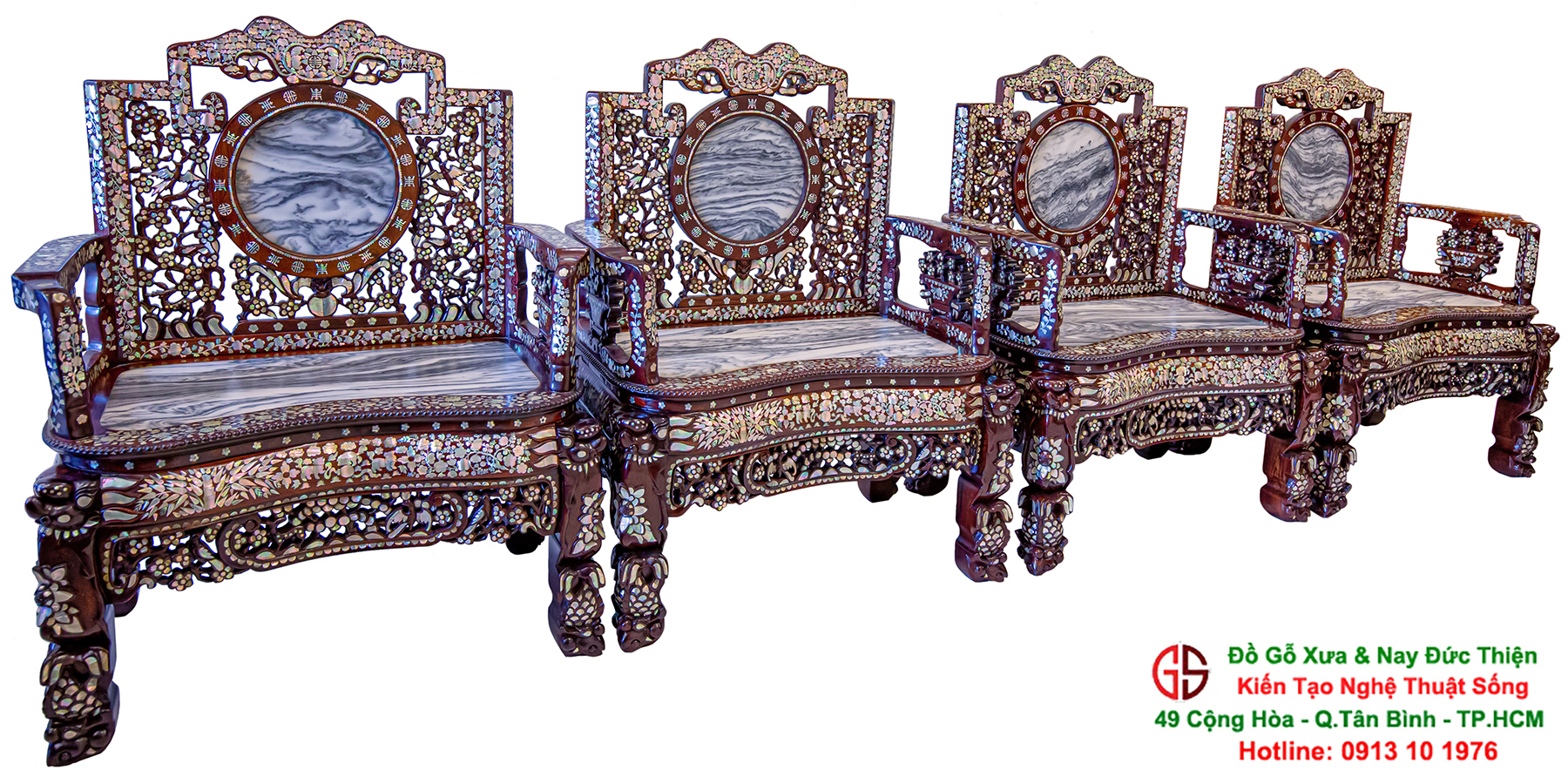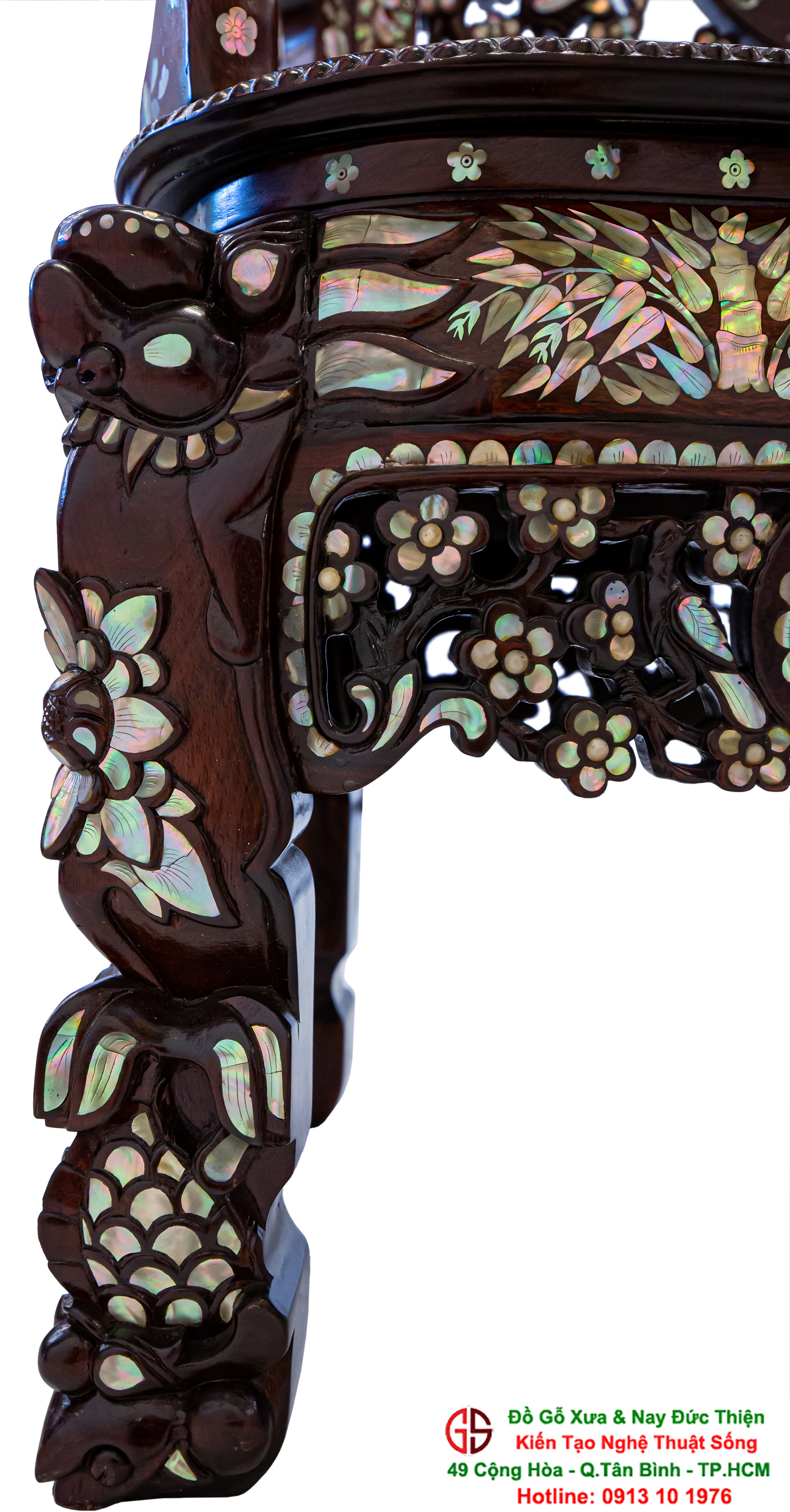 - Bàn ghế Louis, đôn trống gỗ trắc, bộ bàn ăn cẩn ốc, bàn ghế phương kỷ, bàn trung đường cẩn ốc xà cừ