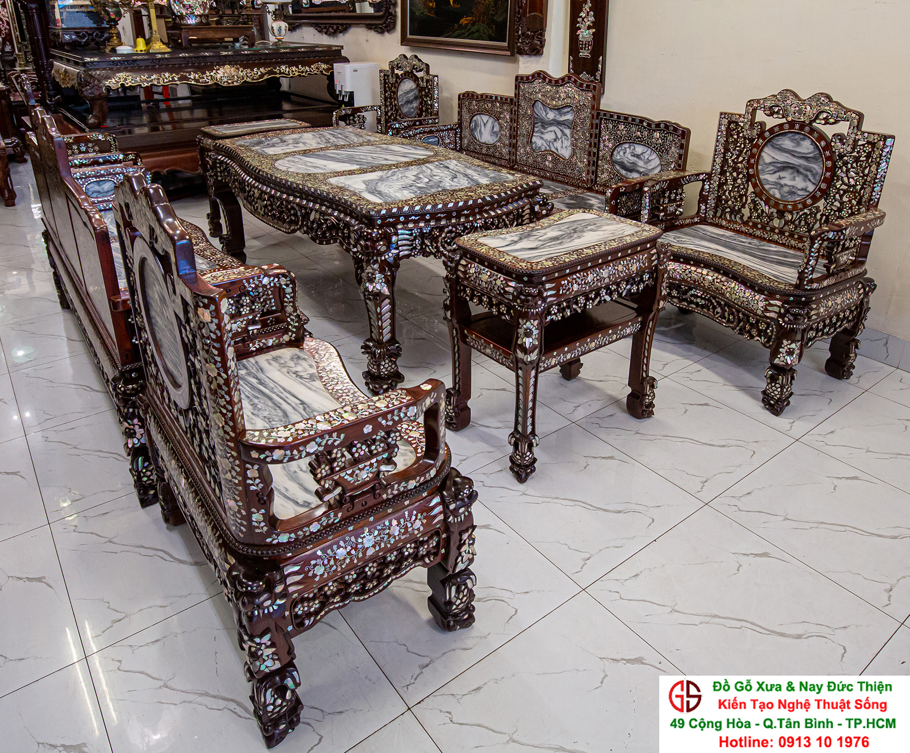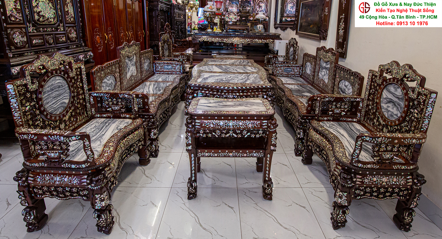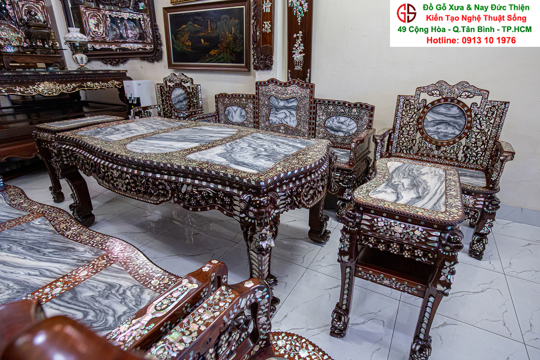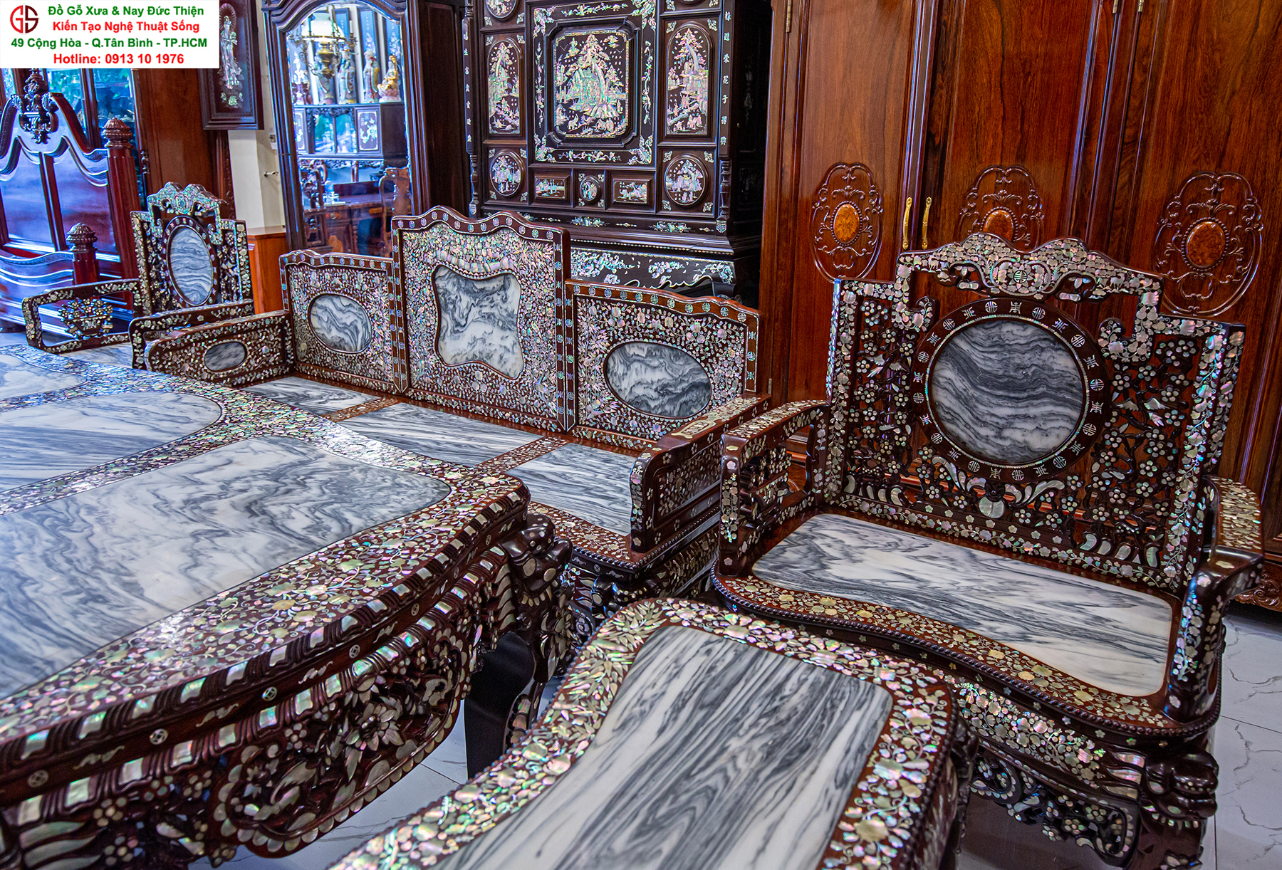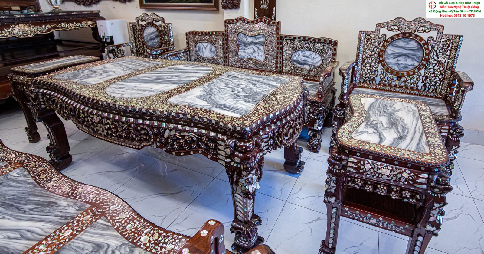 - Bàn ghế Louis, đôn trống gỗ trắc, bộ bàn ăn cẩn ốc, bàn ghế phương kỷ, bàn trung đường cẩn ốc xà cừ