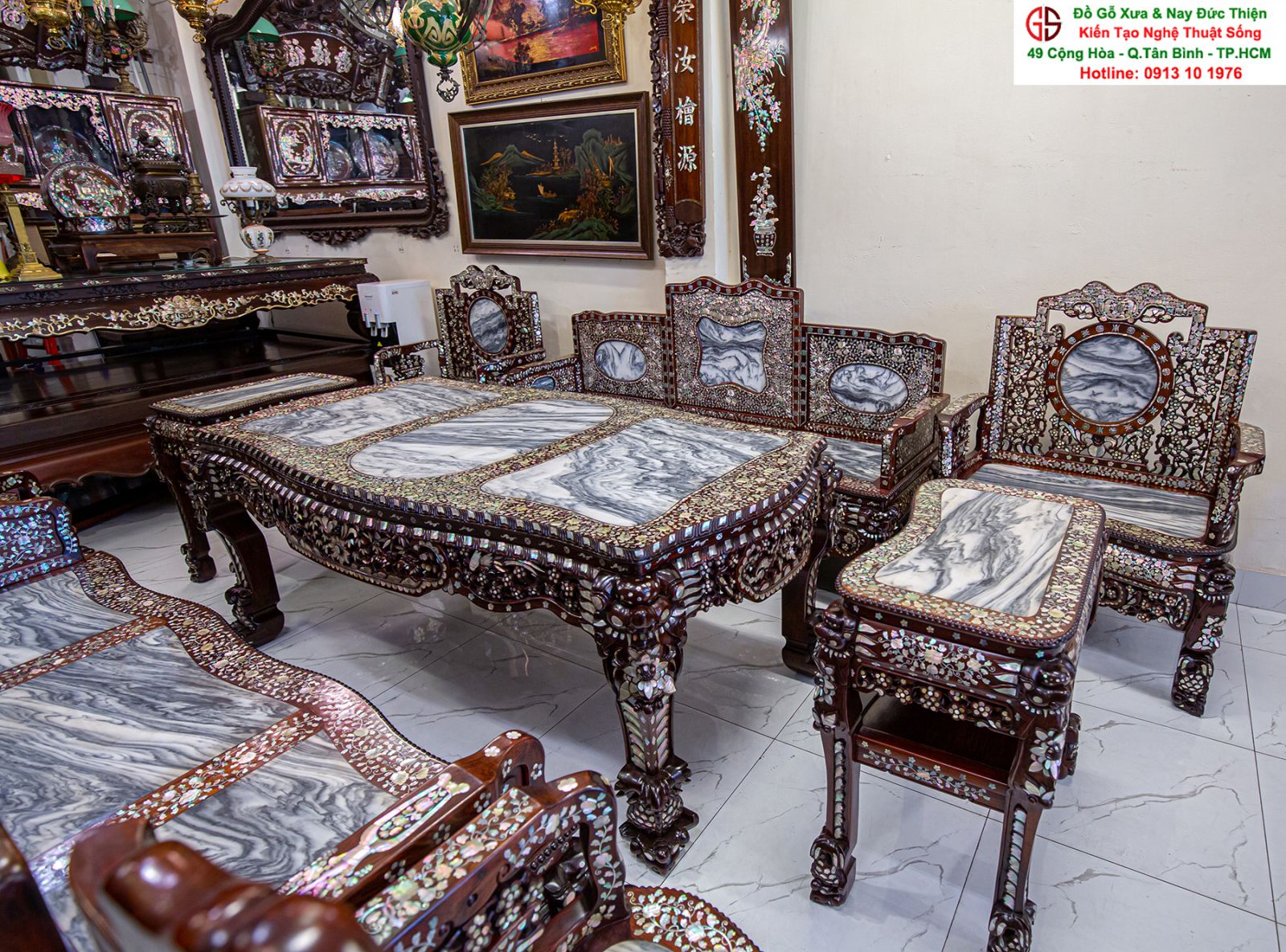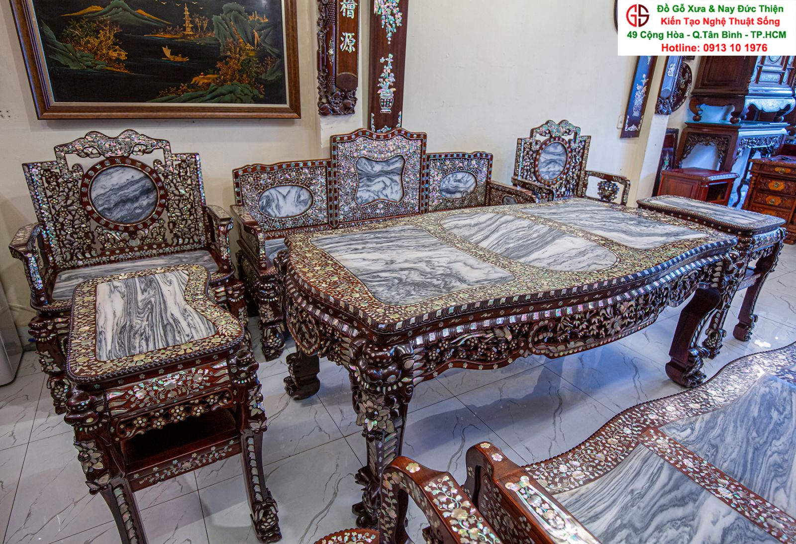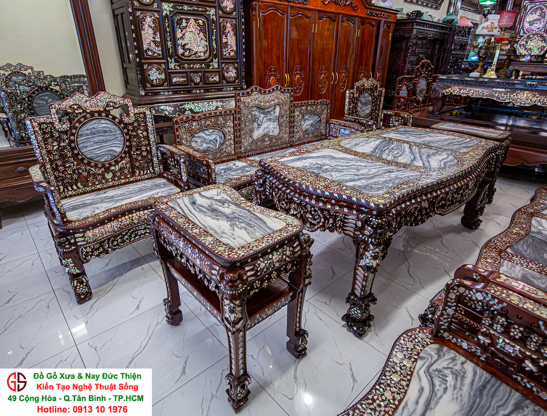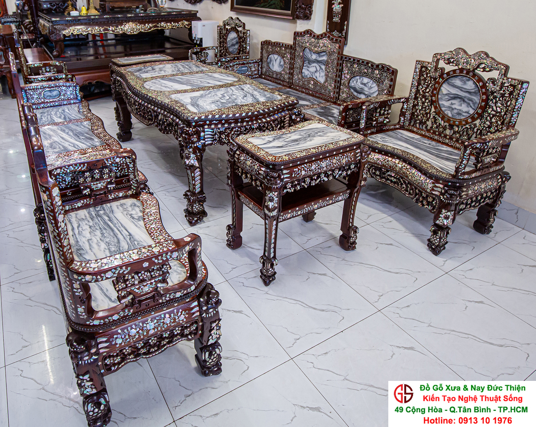 - Bàn ghế Louis, đôn trống gỗ trắc, bộ bàn ăn cẩn ốc, bàn ghế phương kỷ, bàn trung đường cẩn ốc xà cừ