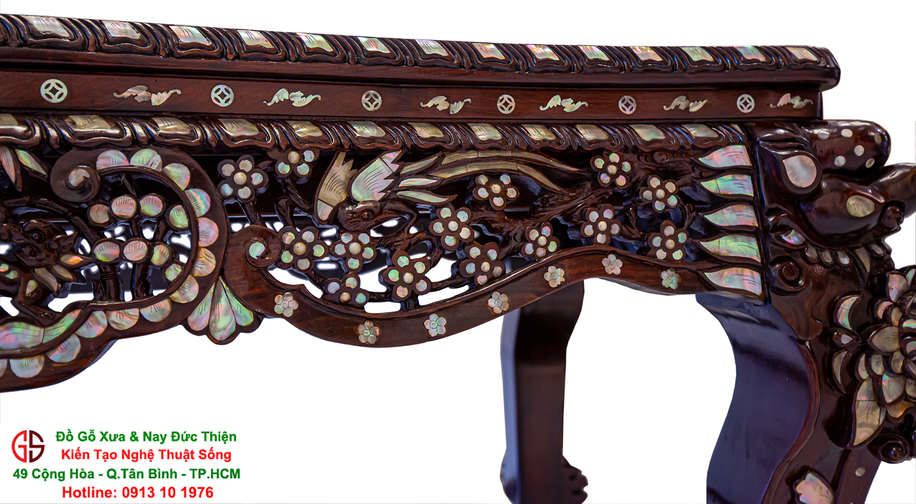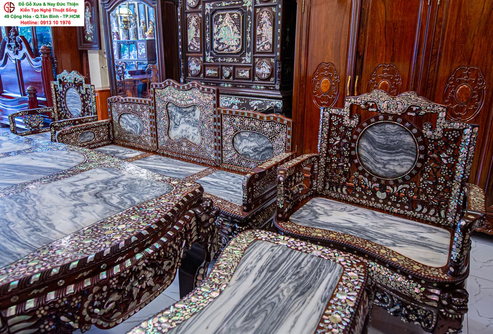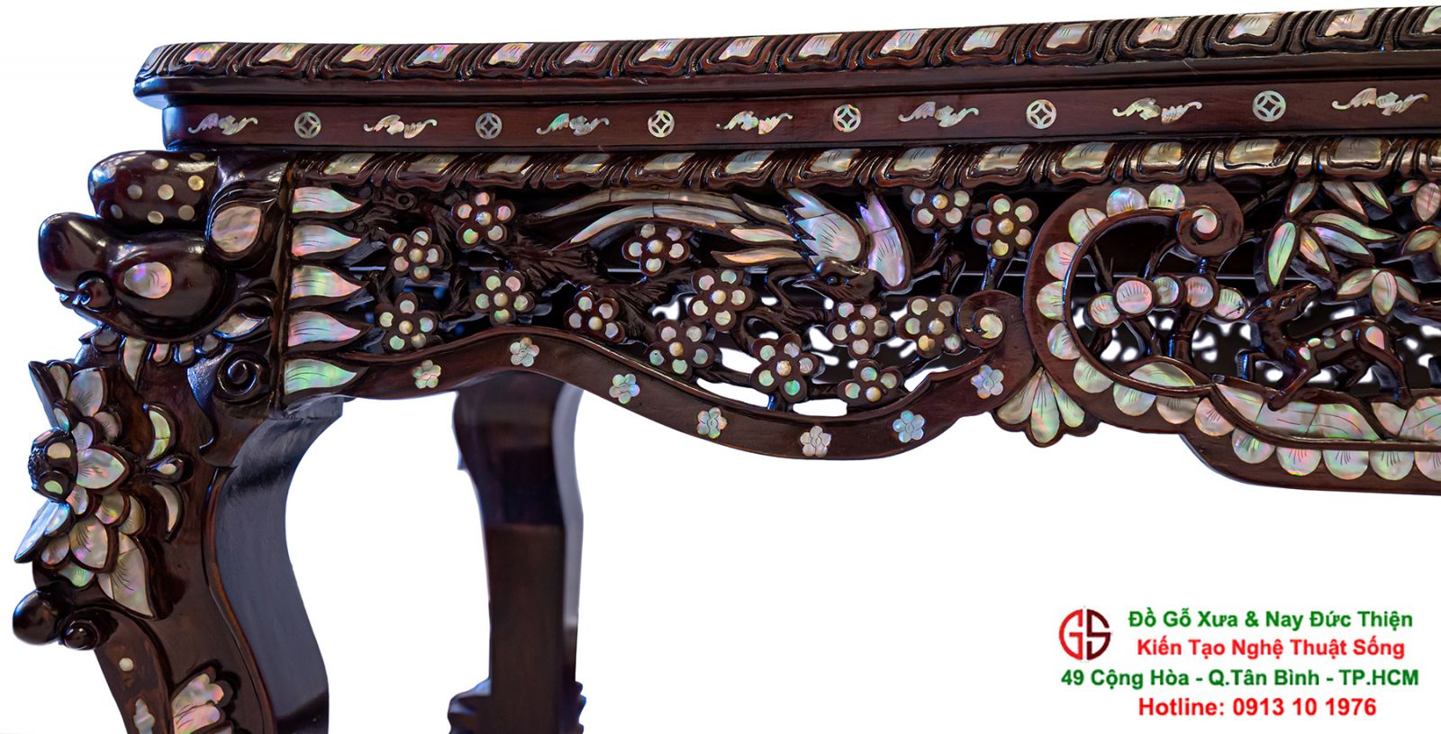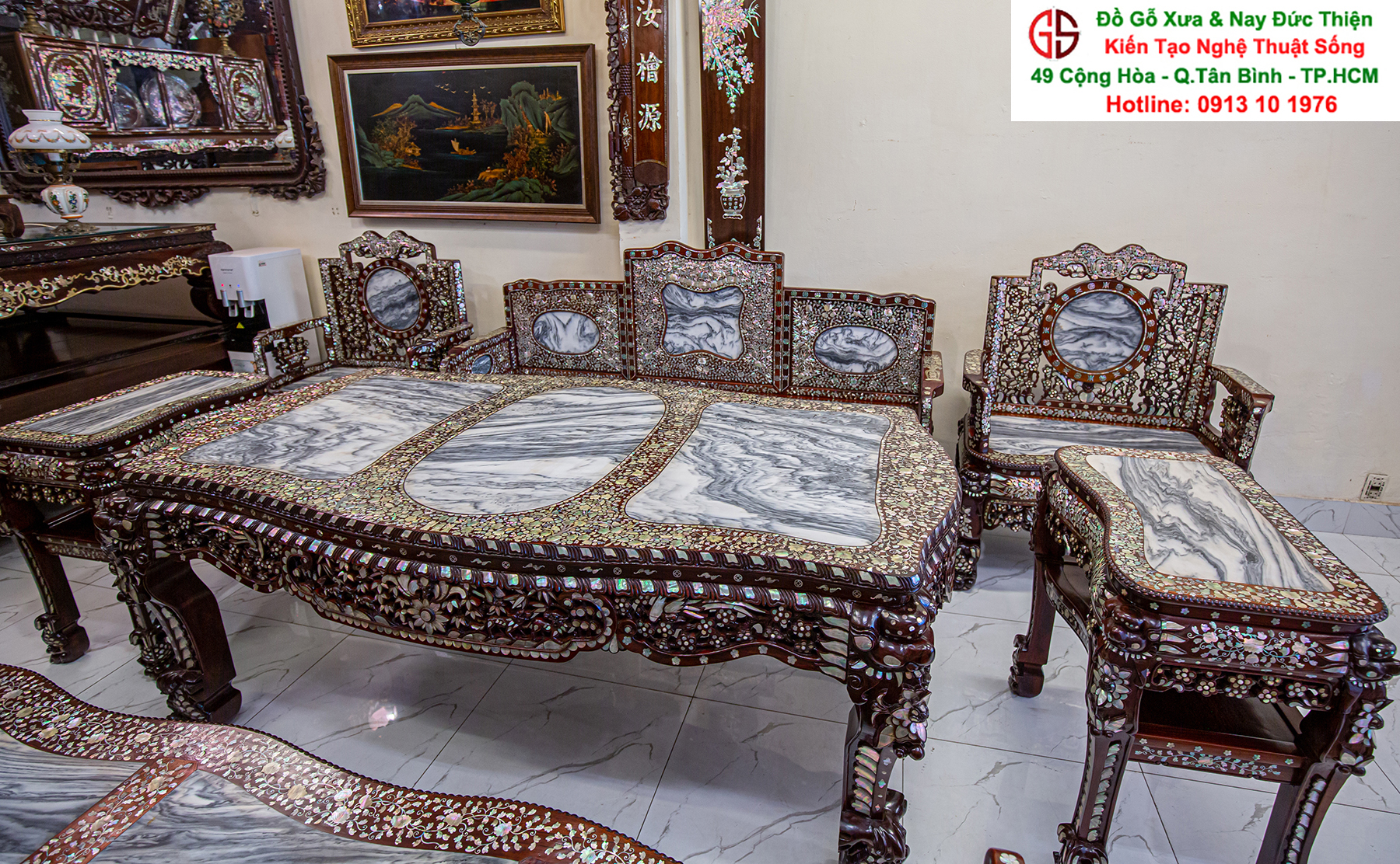 - Bàn ghế Louis, đôn trống gỗ trắc, bộ bàn ăn cẩn ốc, bàn ghế phương kỷ, bàn trung đường cẩn ốc xà cừ