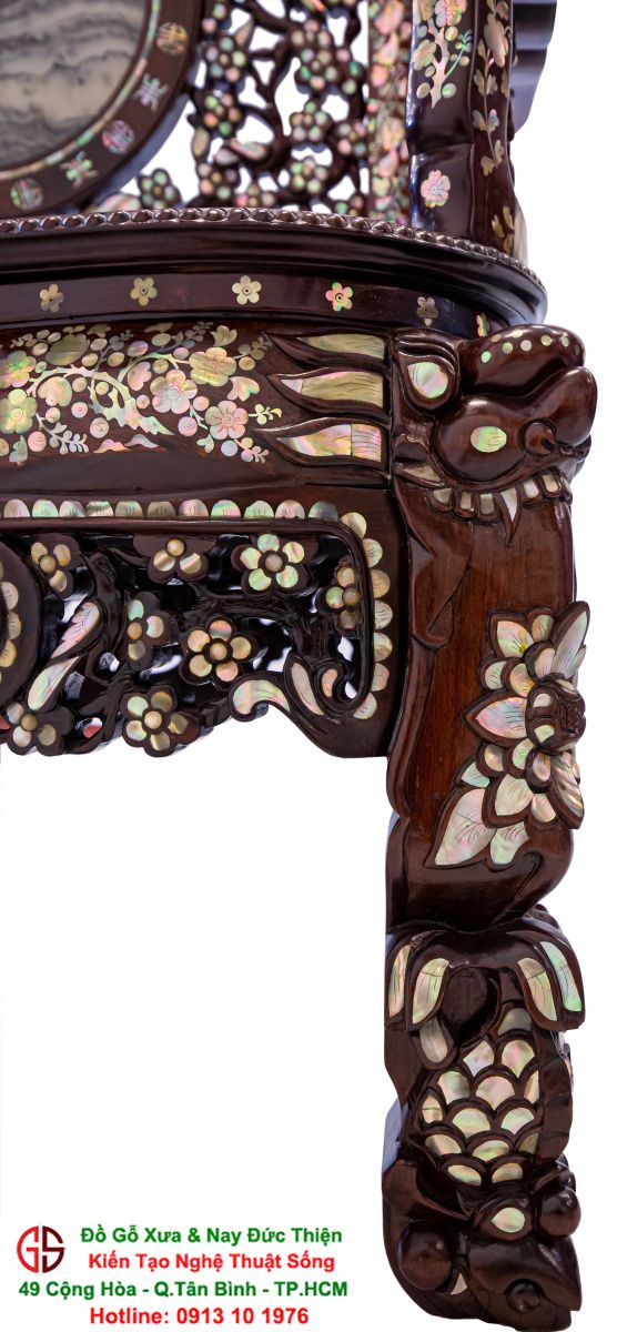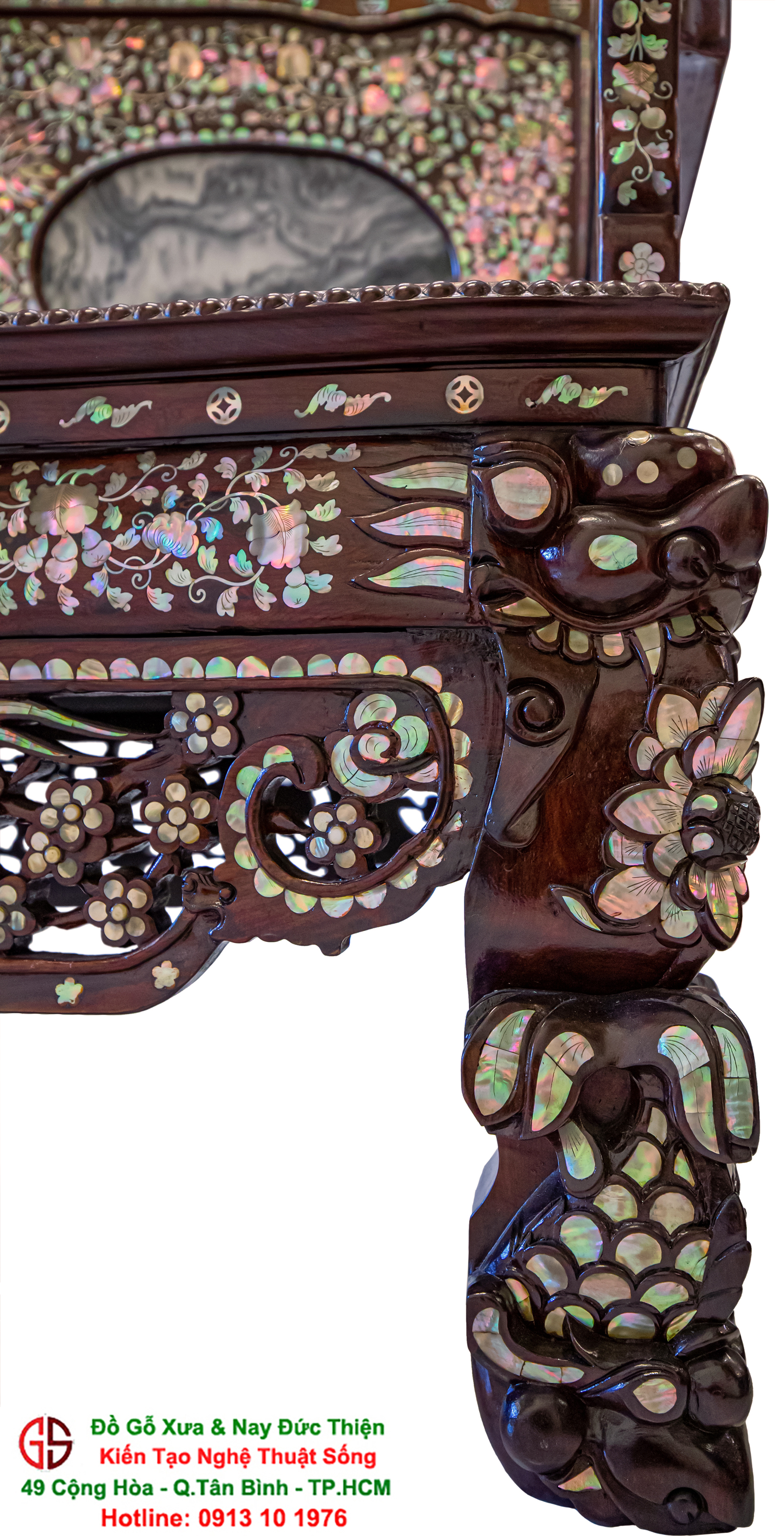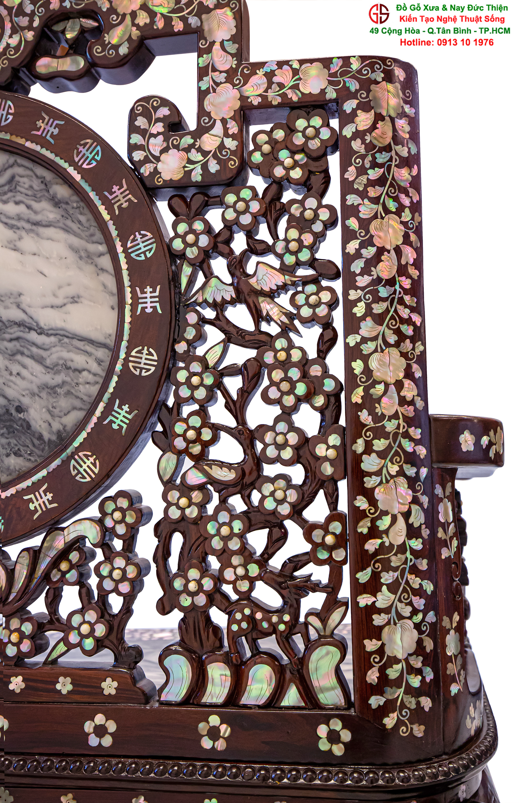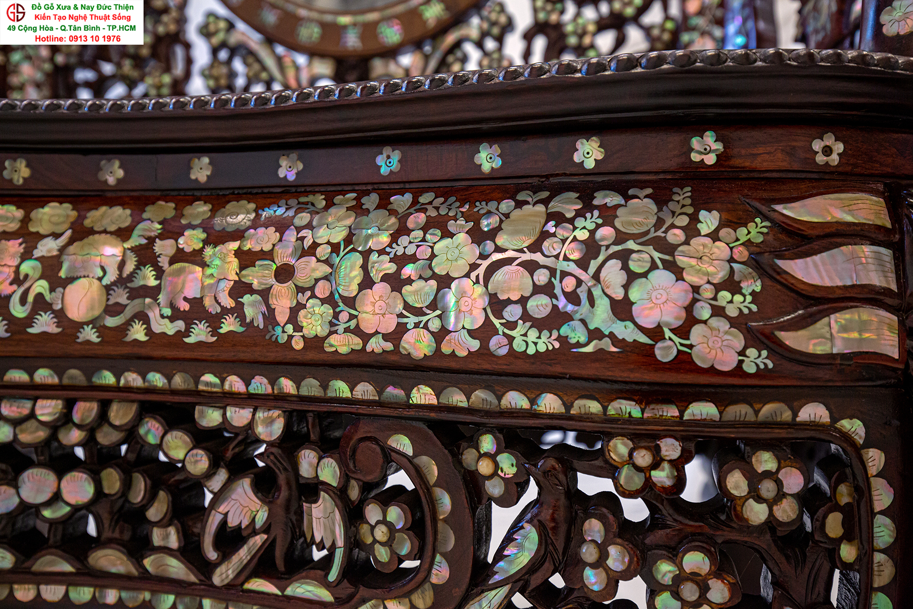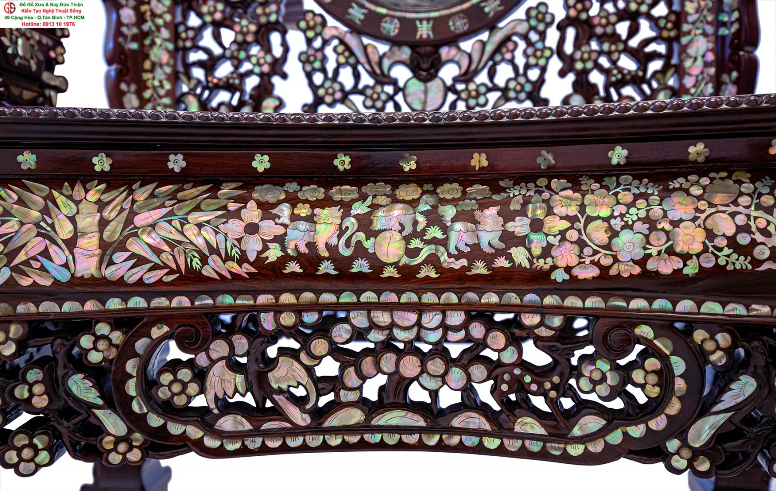 + Chất liệu: gỗ Cẩm Lai Việt khảm ốc xà cừ xịn