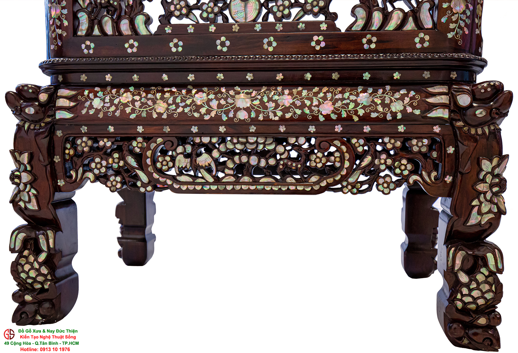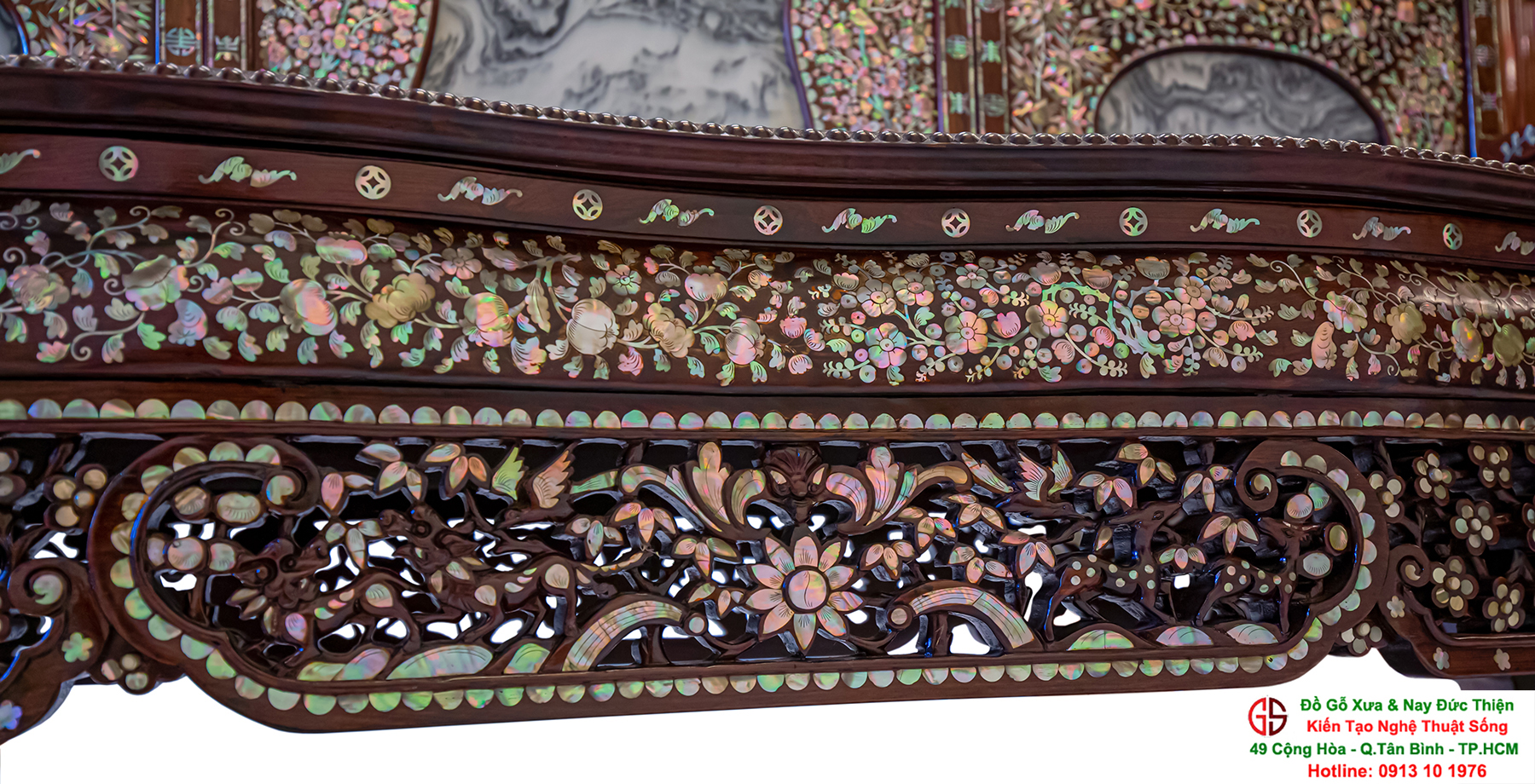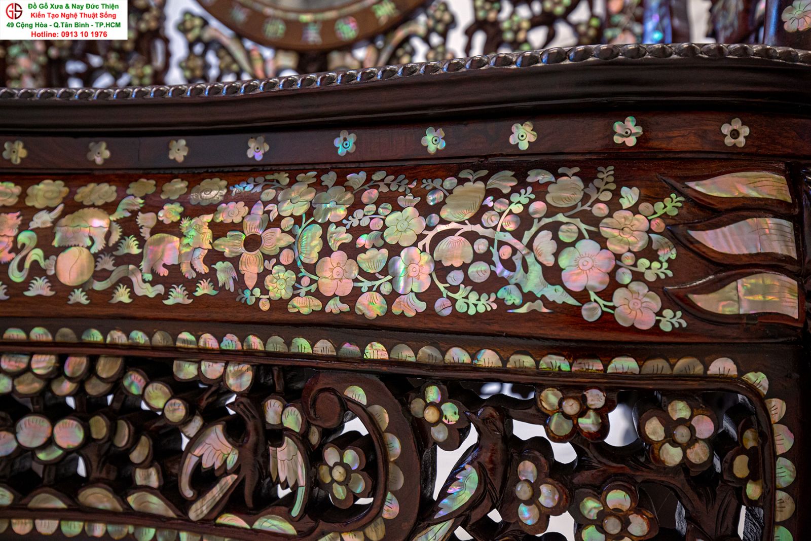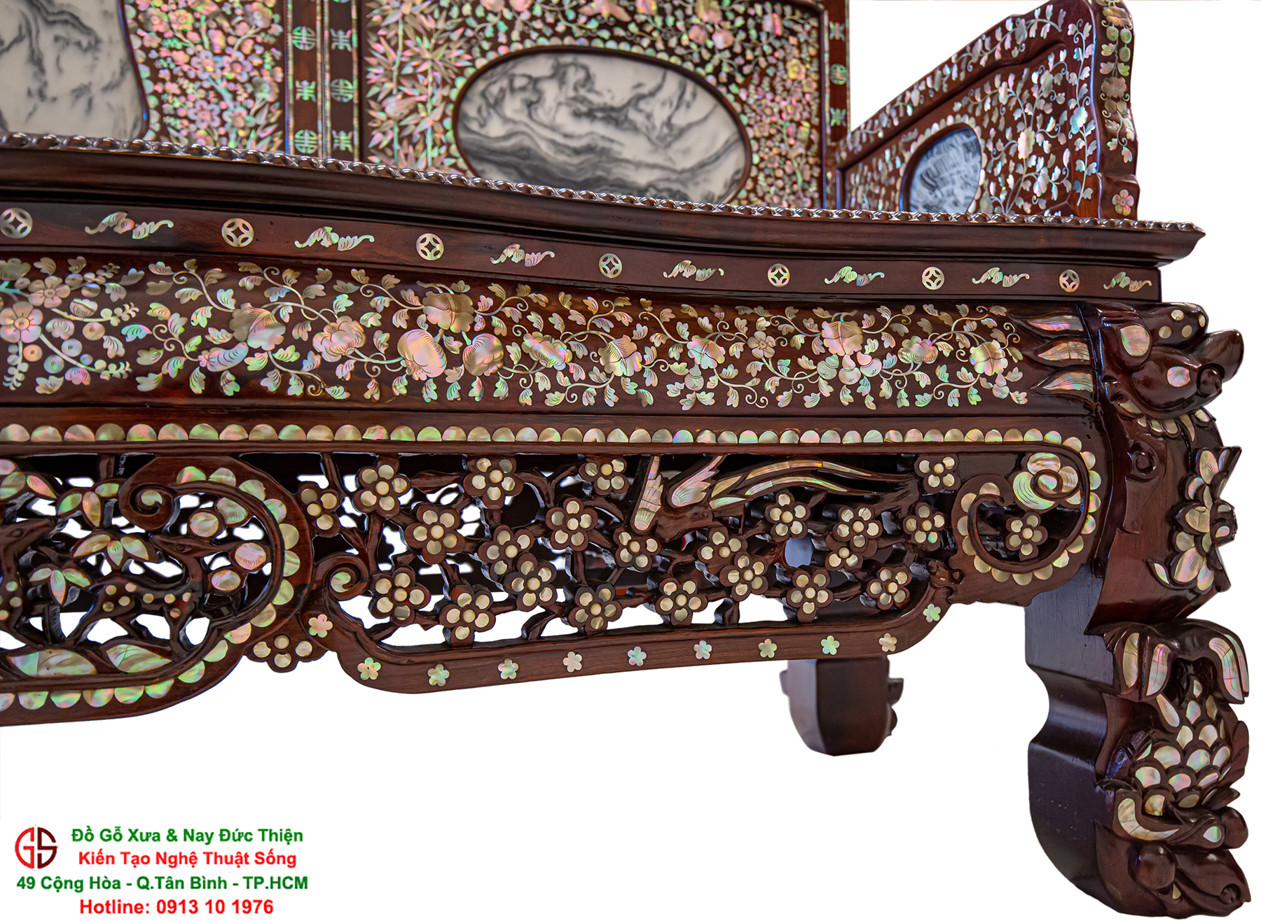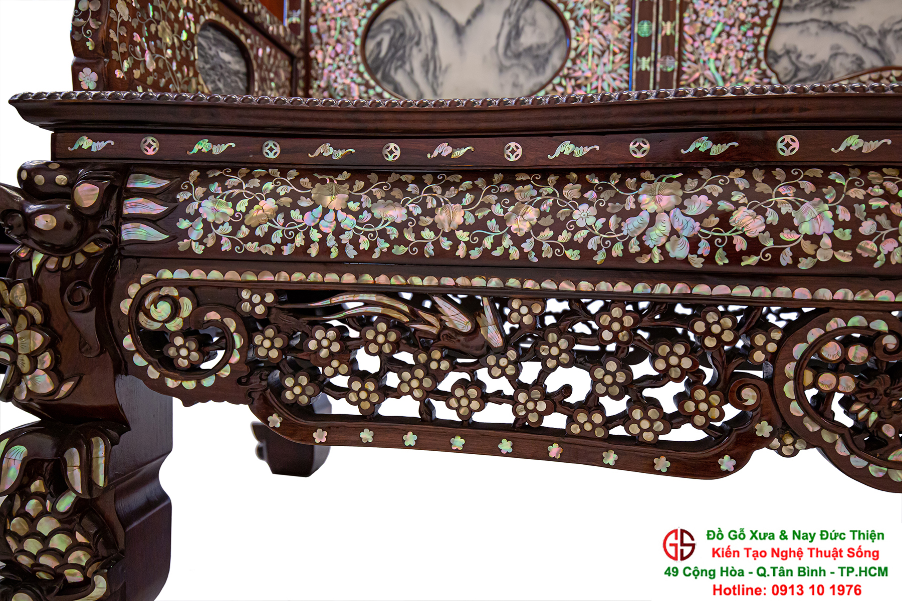 + Chất liệu: gỗ Cẩm Lai Việt khảm ốc xà cừ xịn