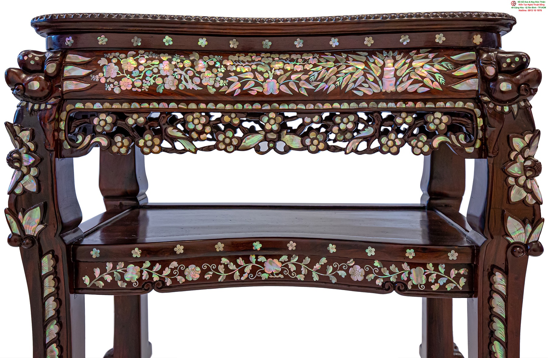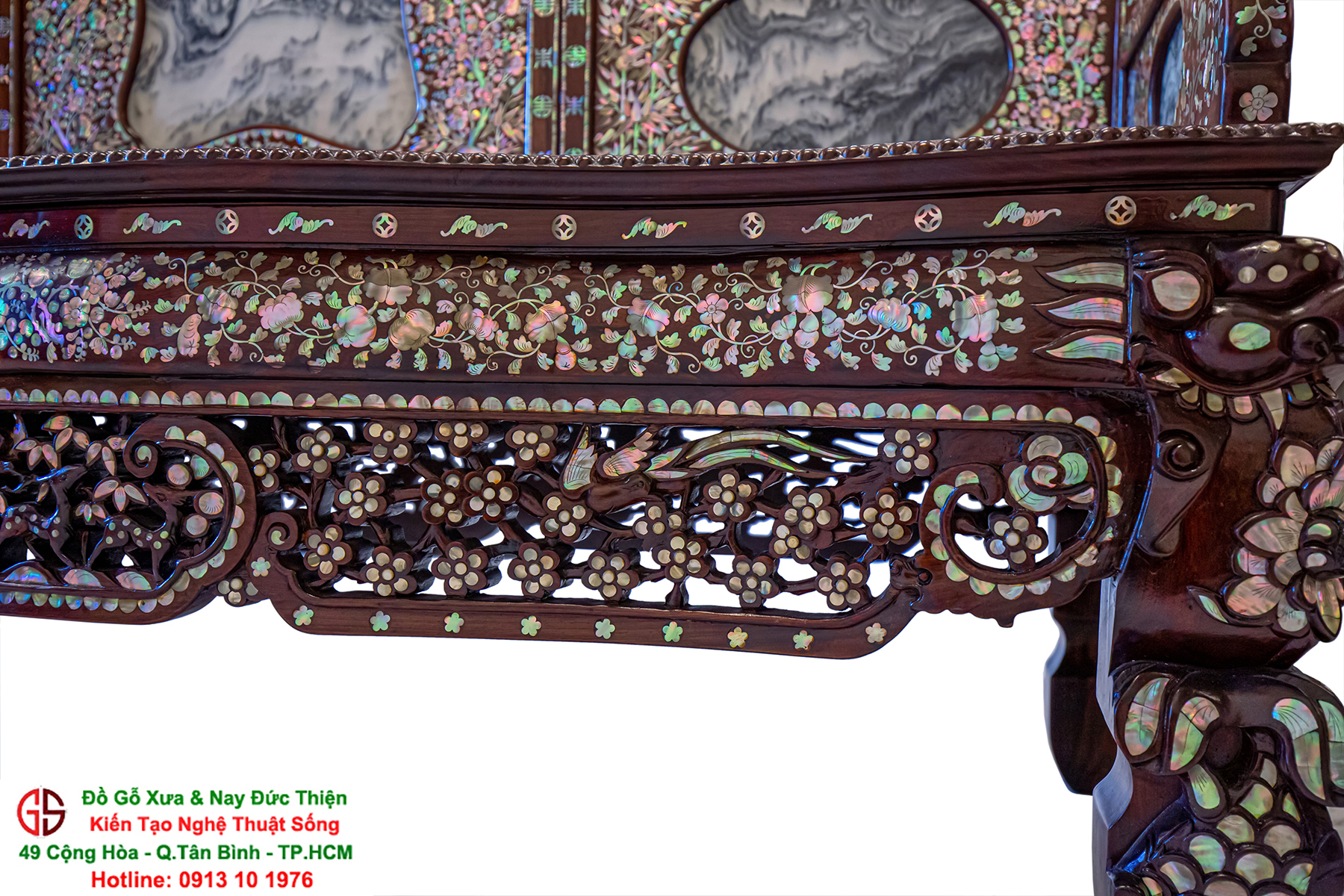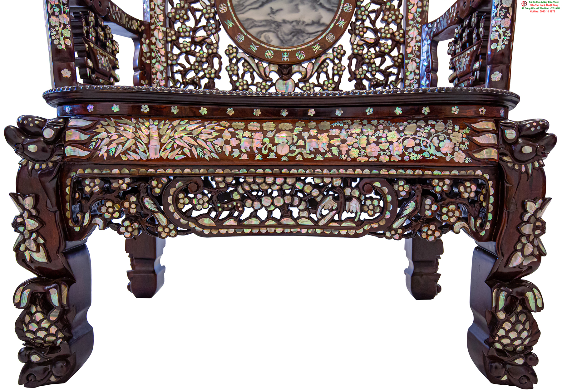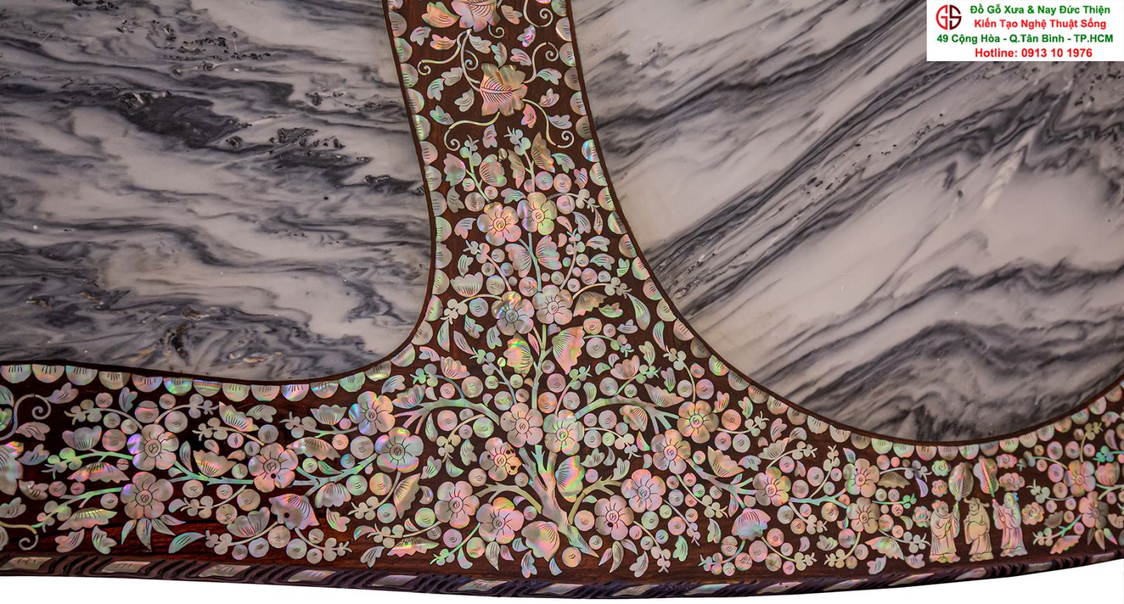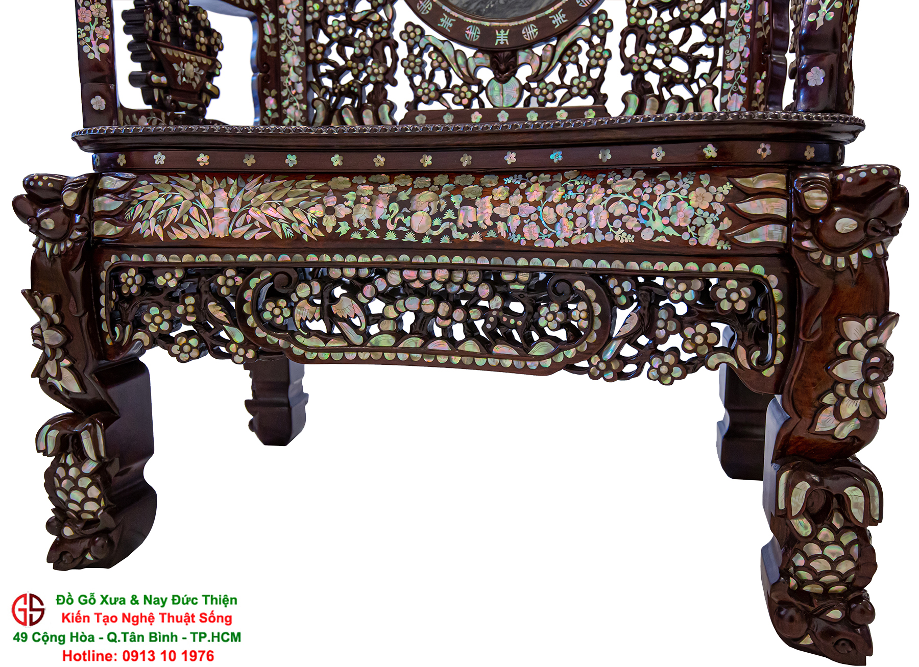 + Chất liệu: gỗ Cẩm Lai Việt khảm ốc xà cừ xịn