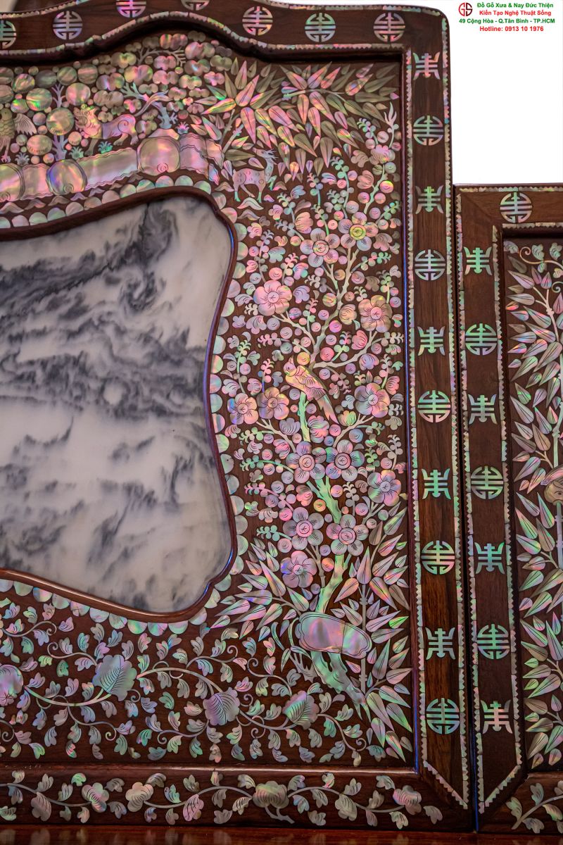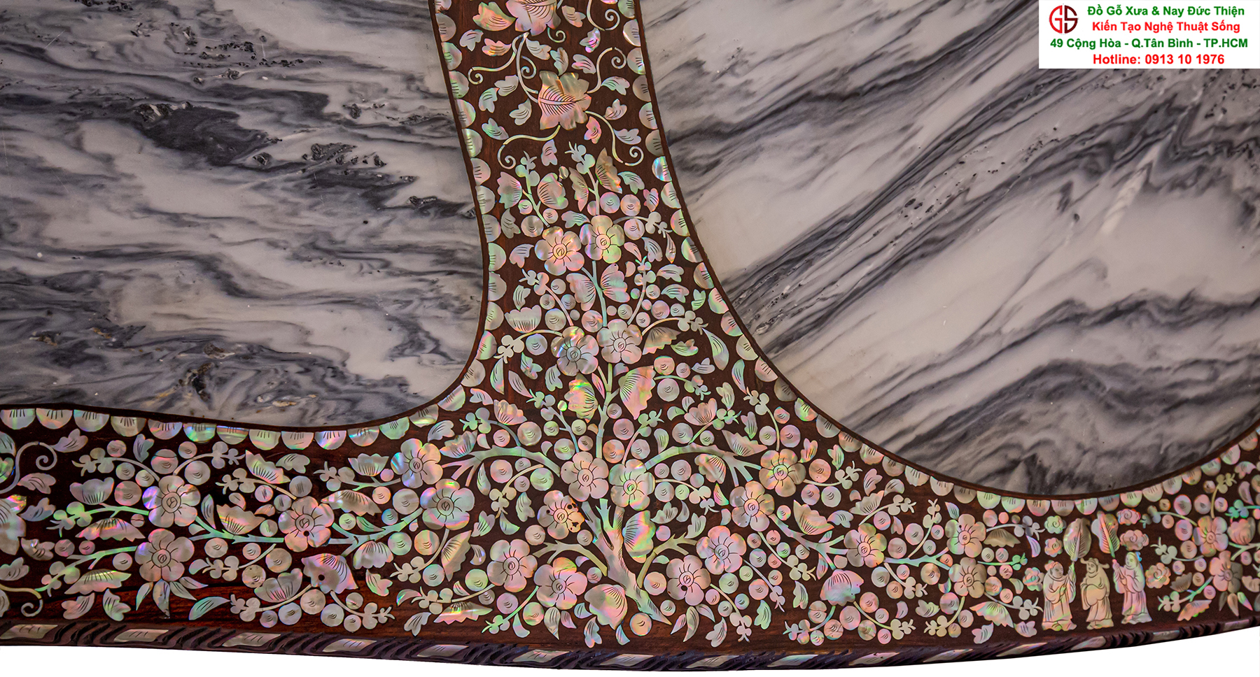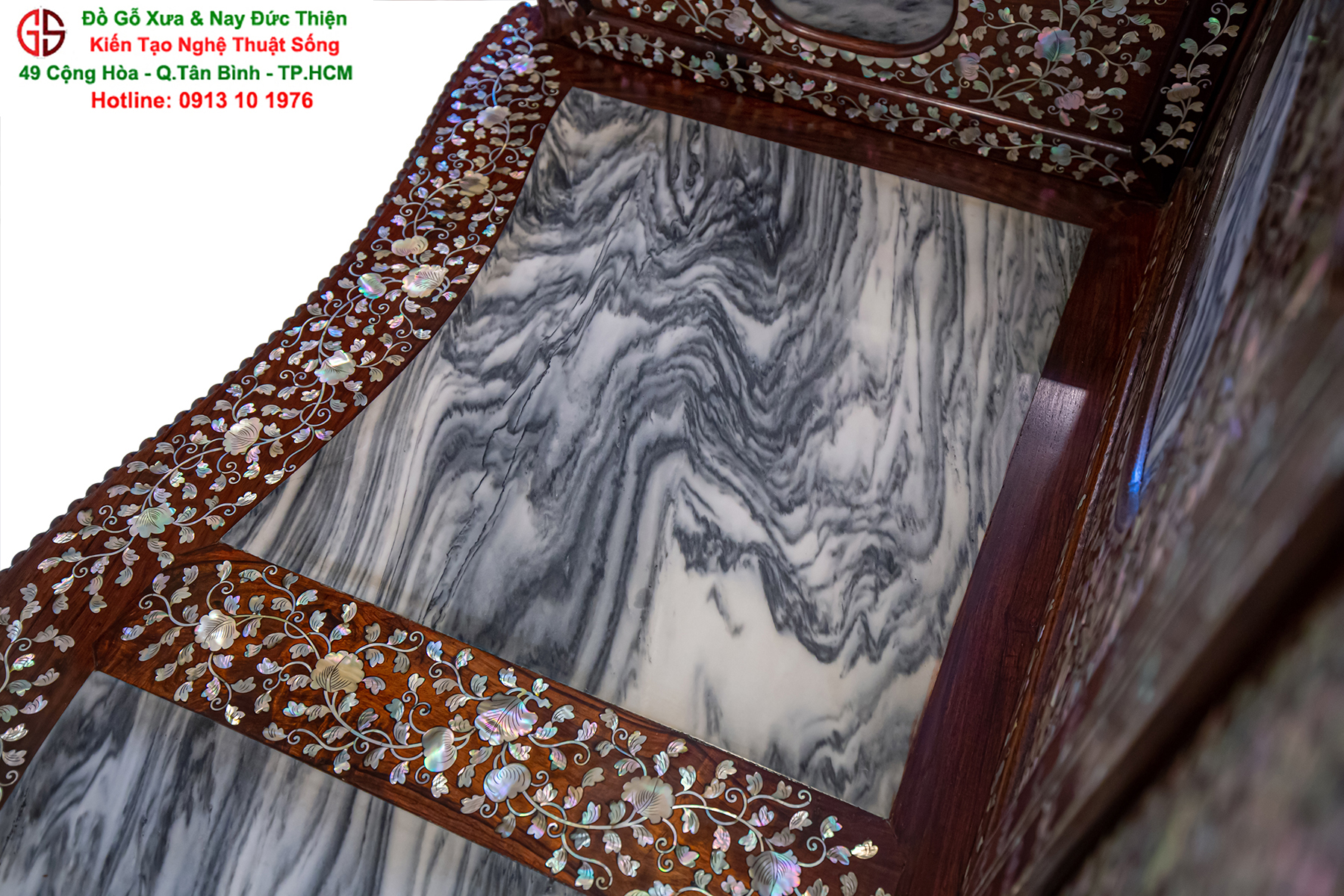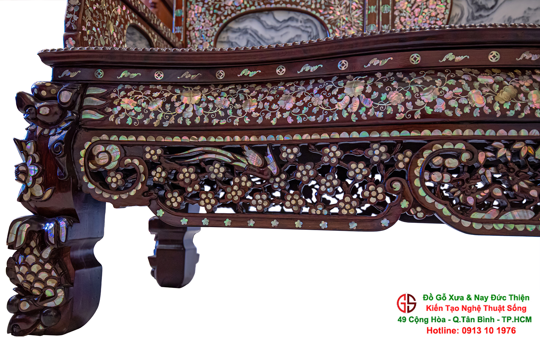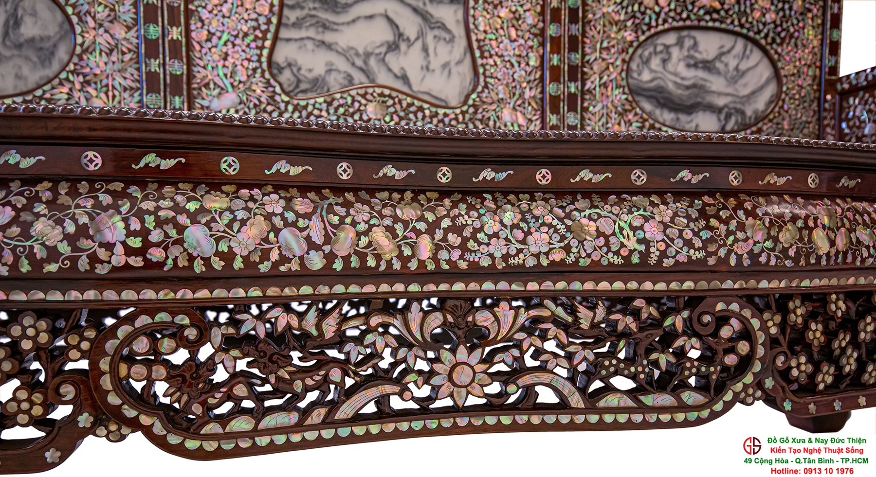 + Chất liệu: gỗ Cẩm Lai Việt khảm ốc xà cừ xịn