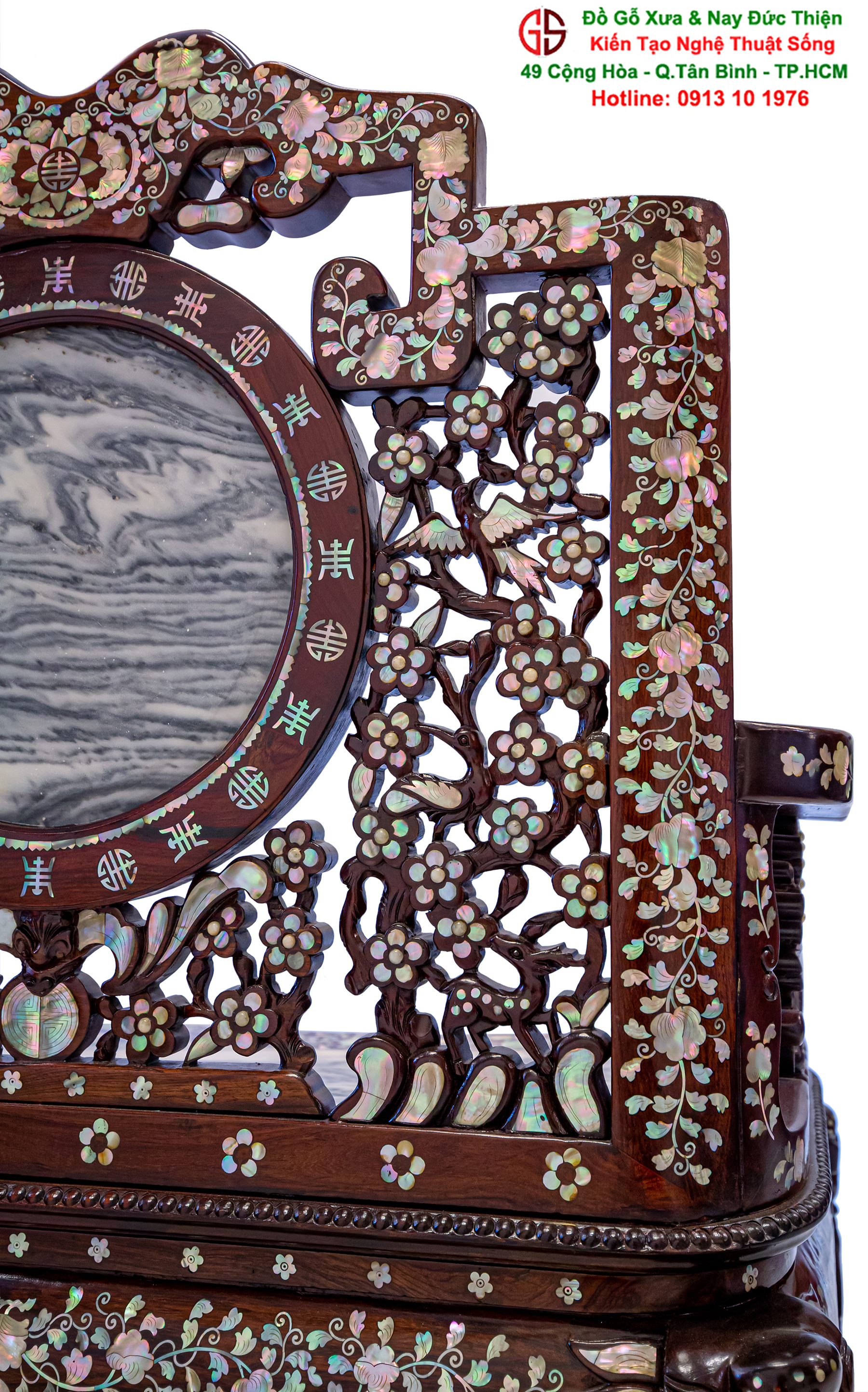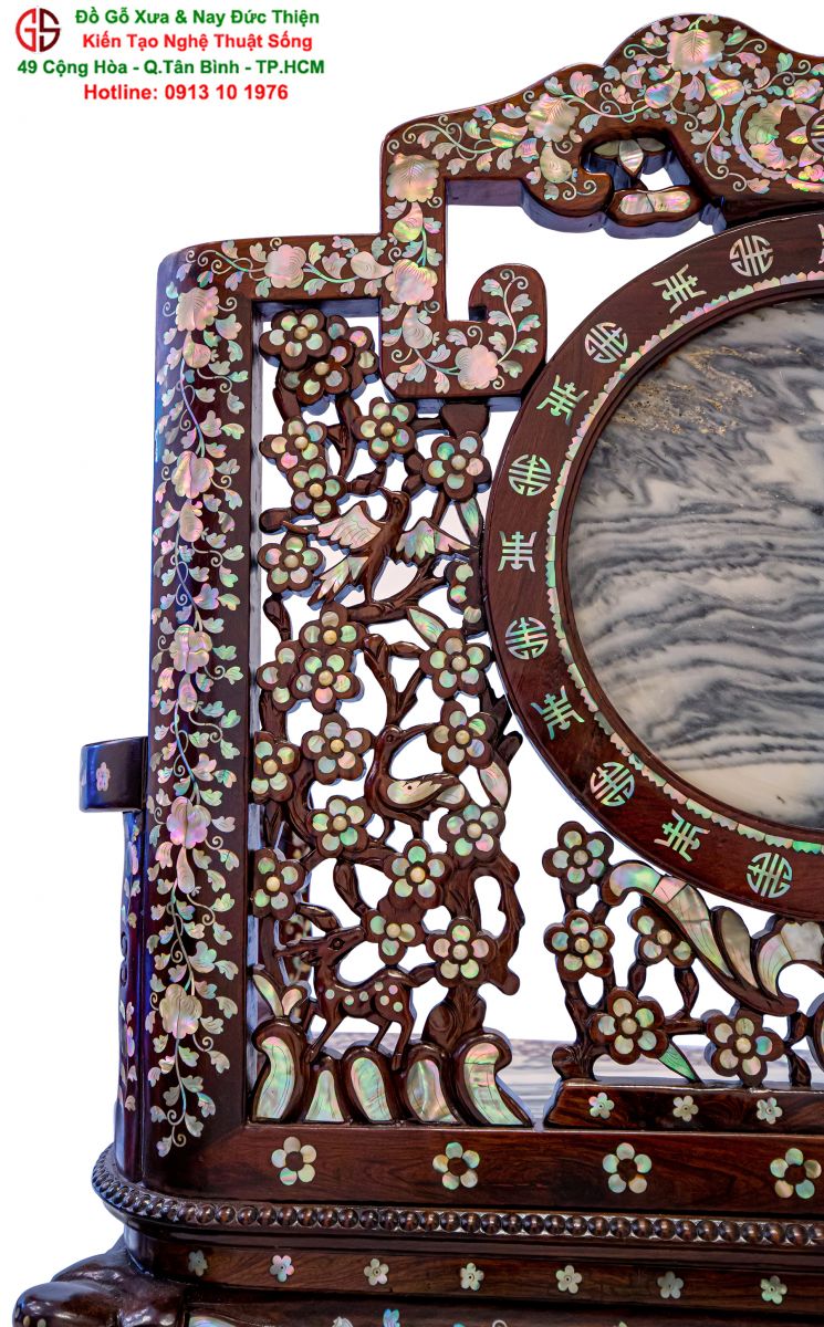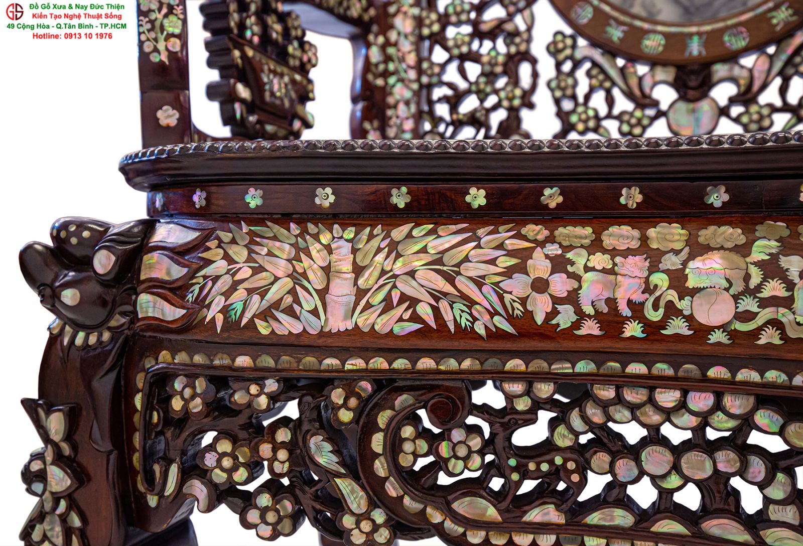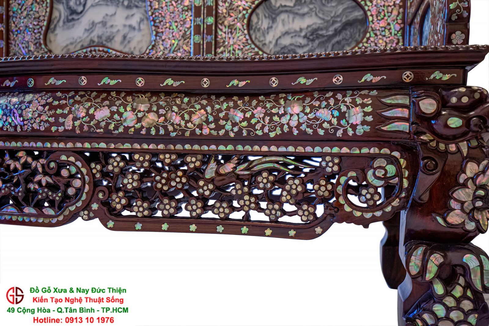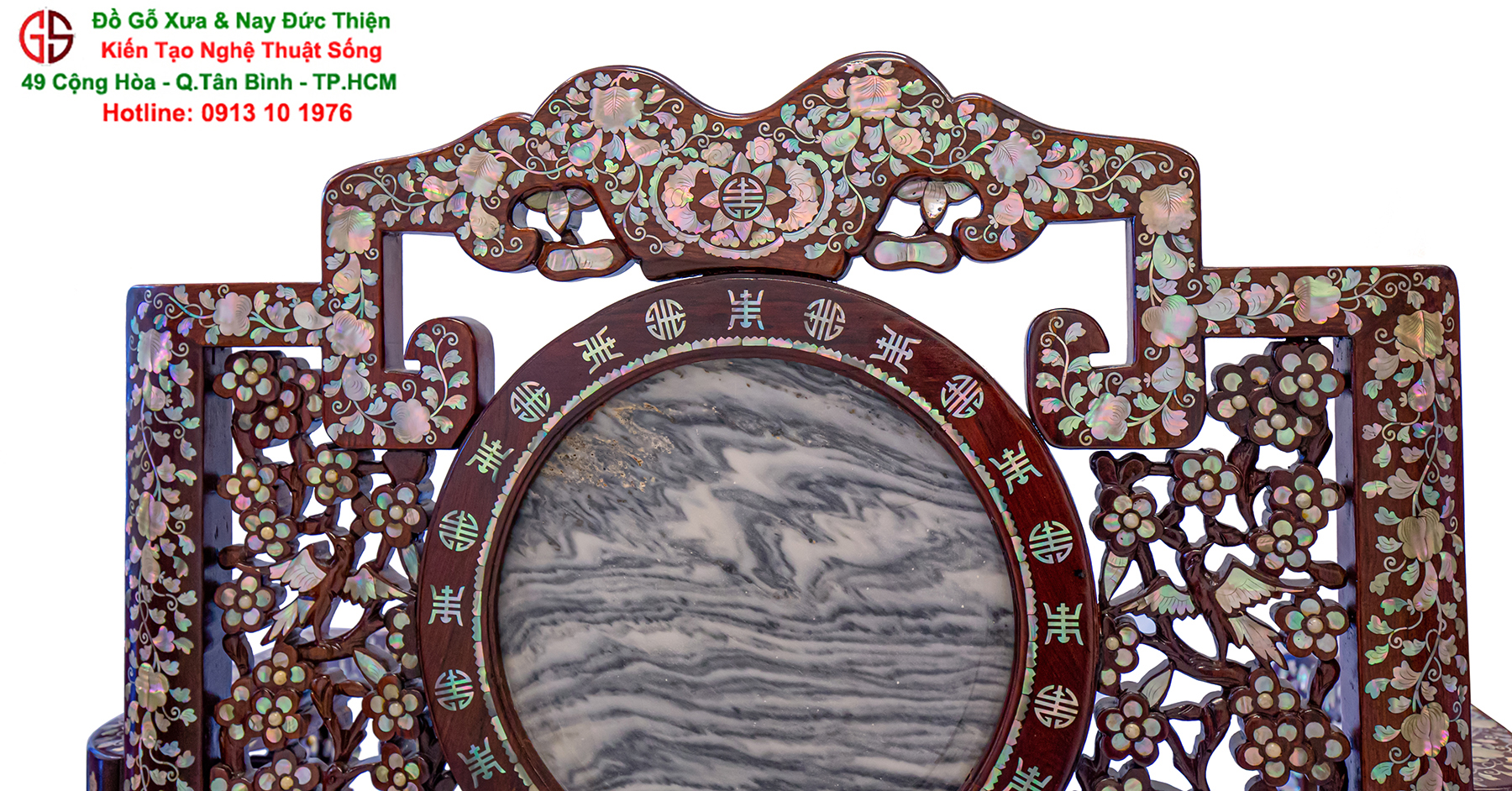 + Chất liệu: gỗ Cẩm Lai Việt khảm ốc xà cừ xịn