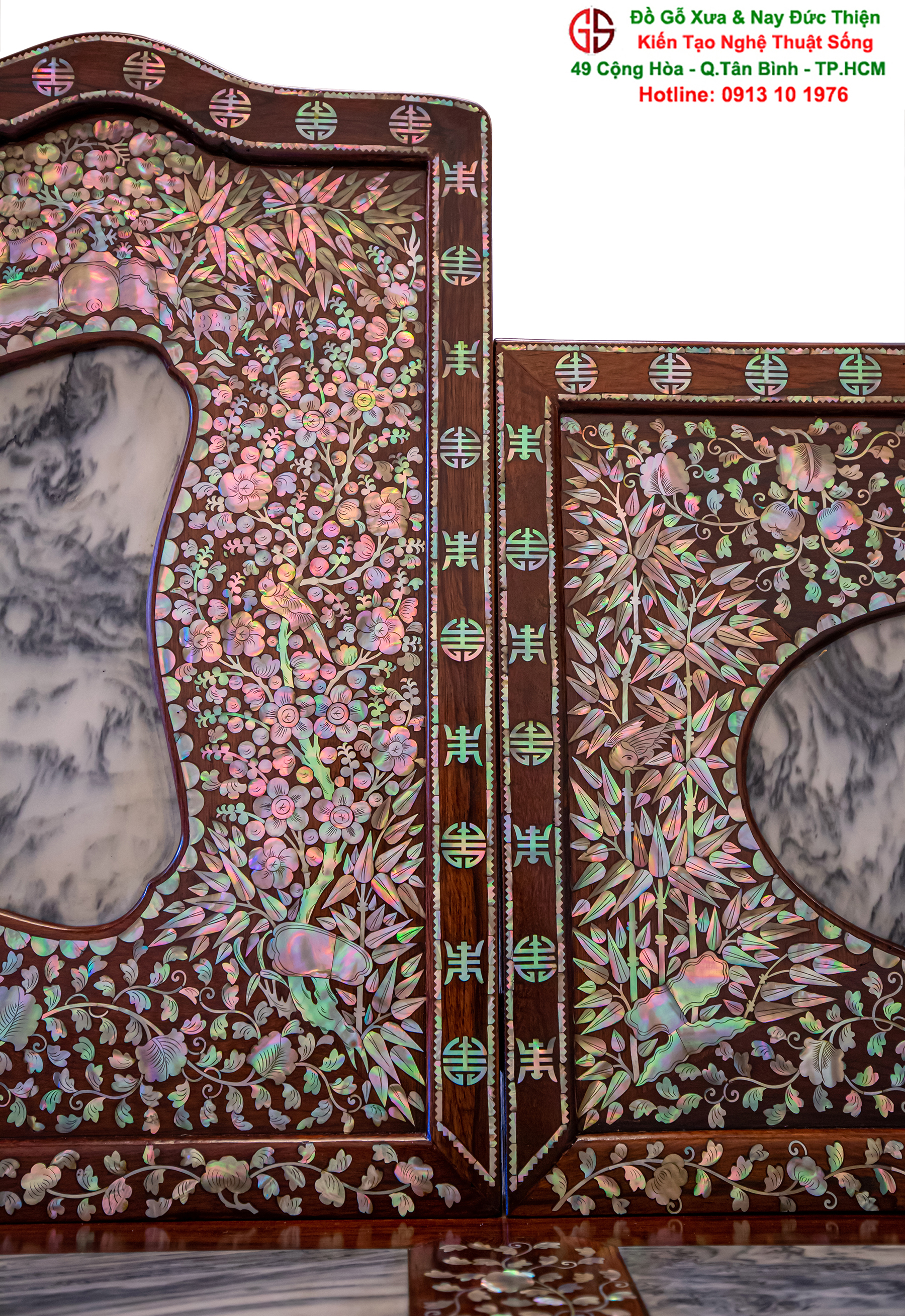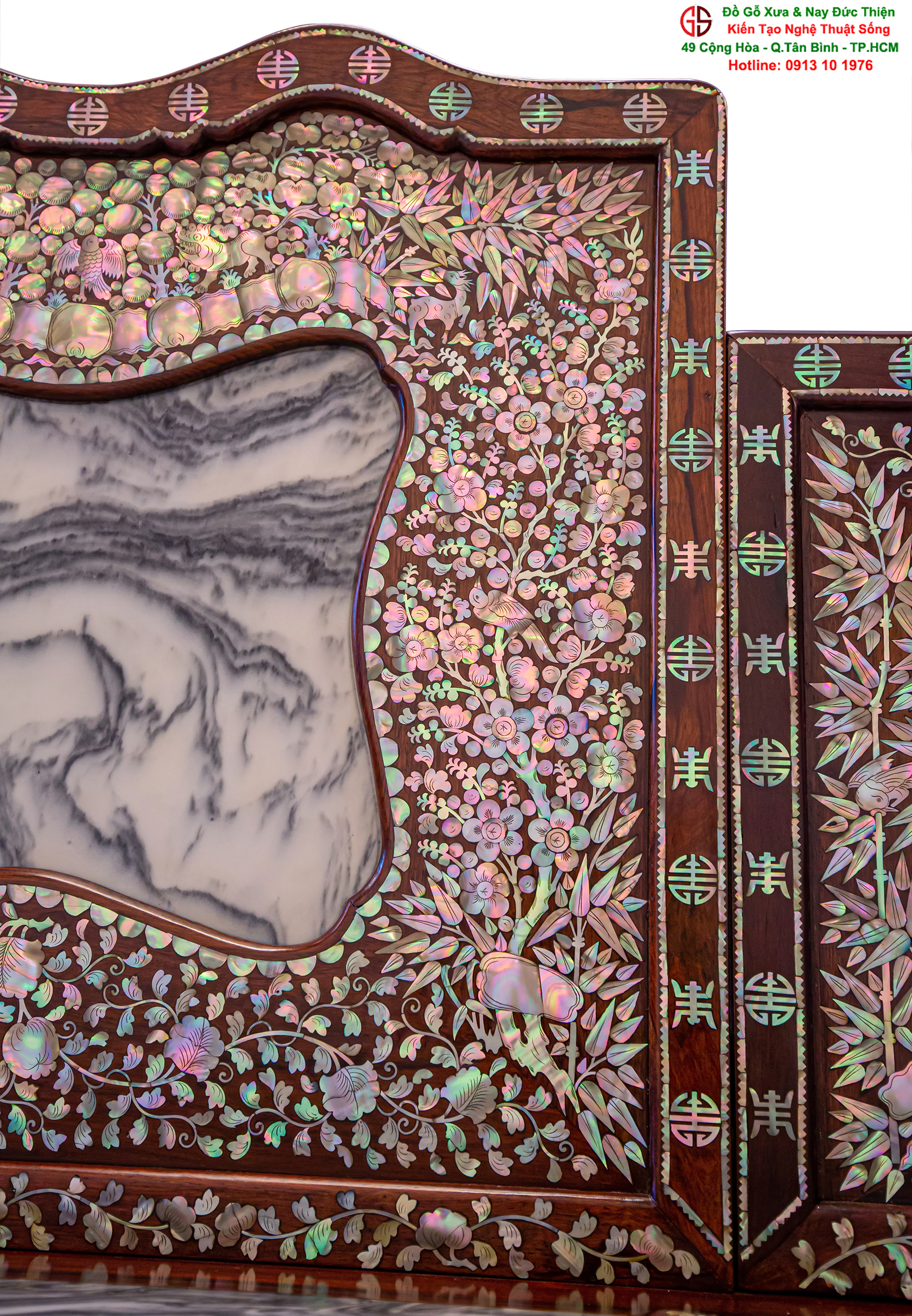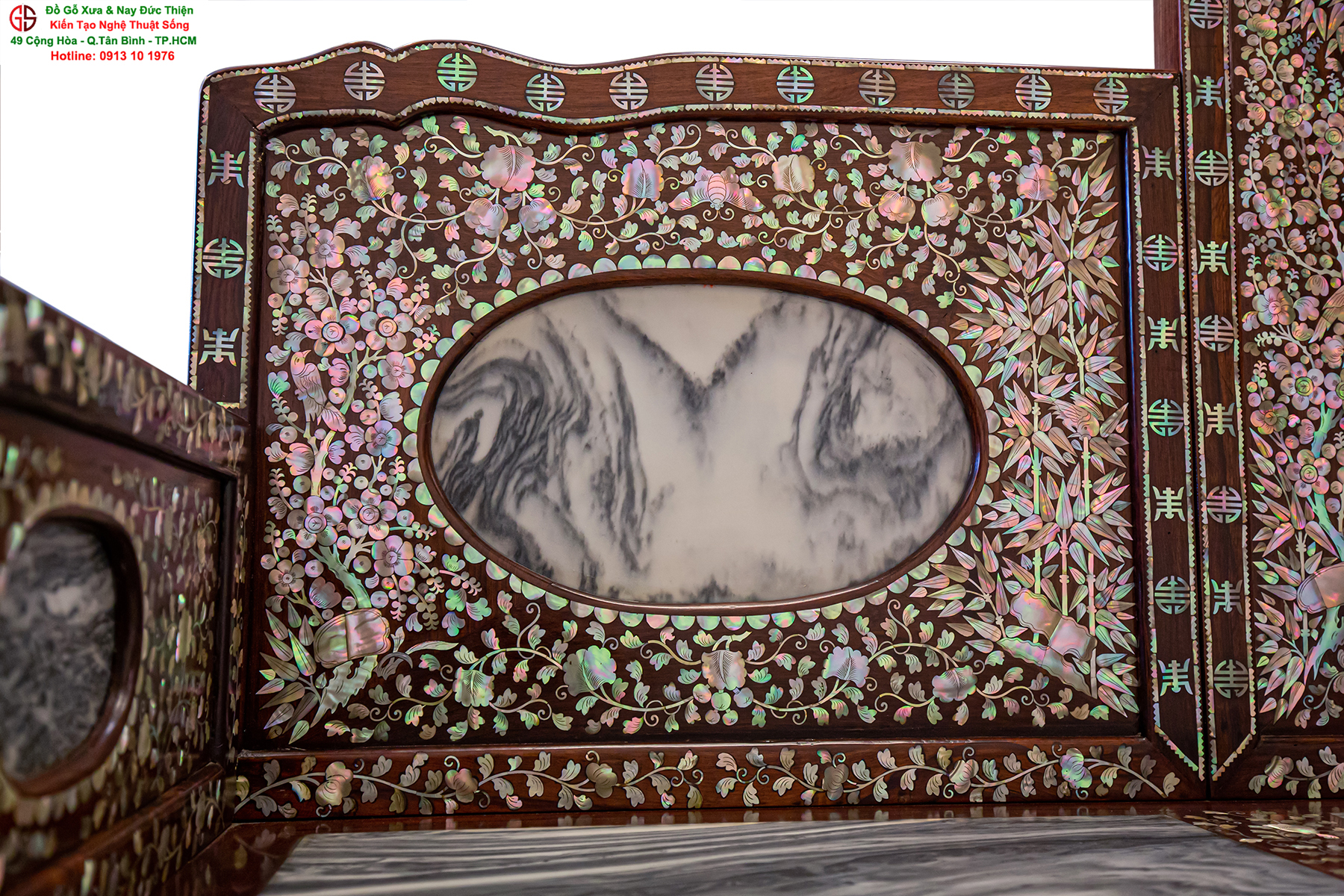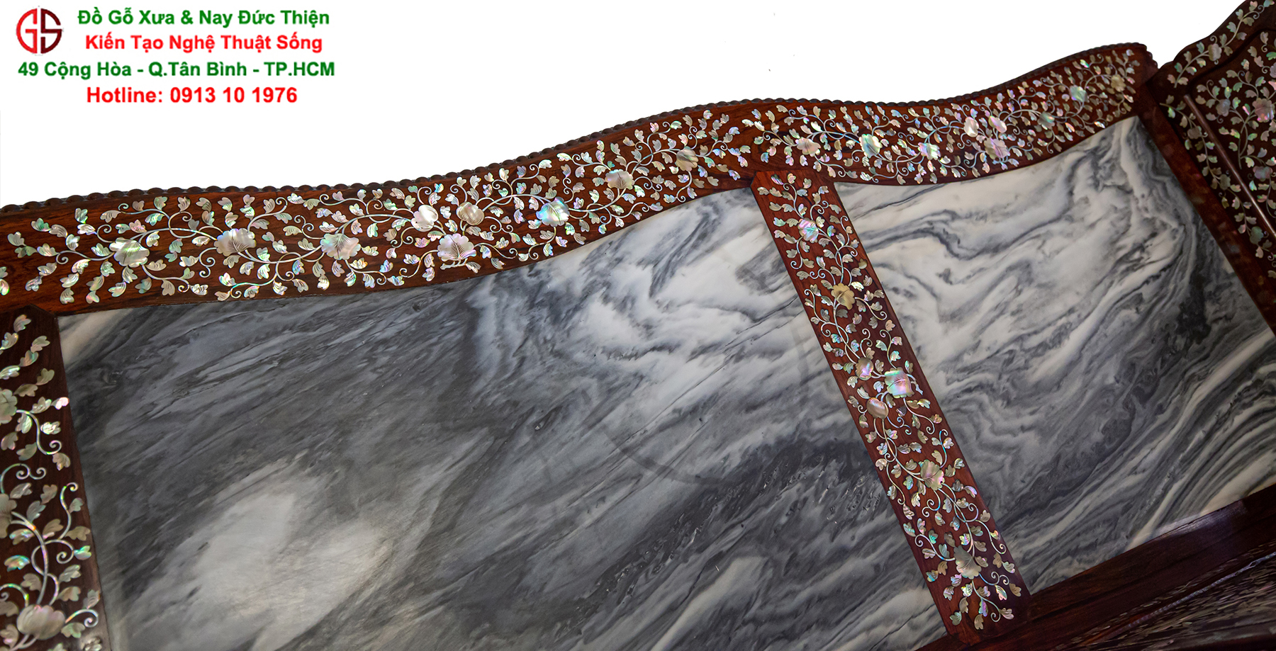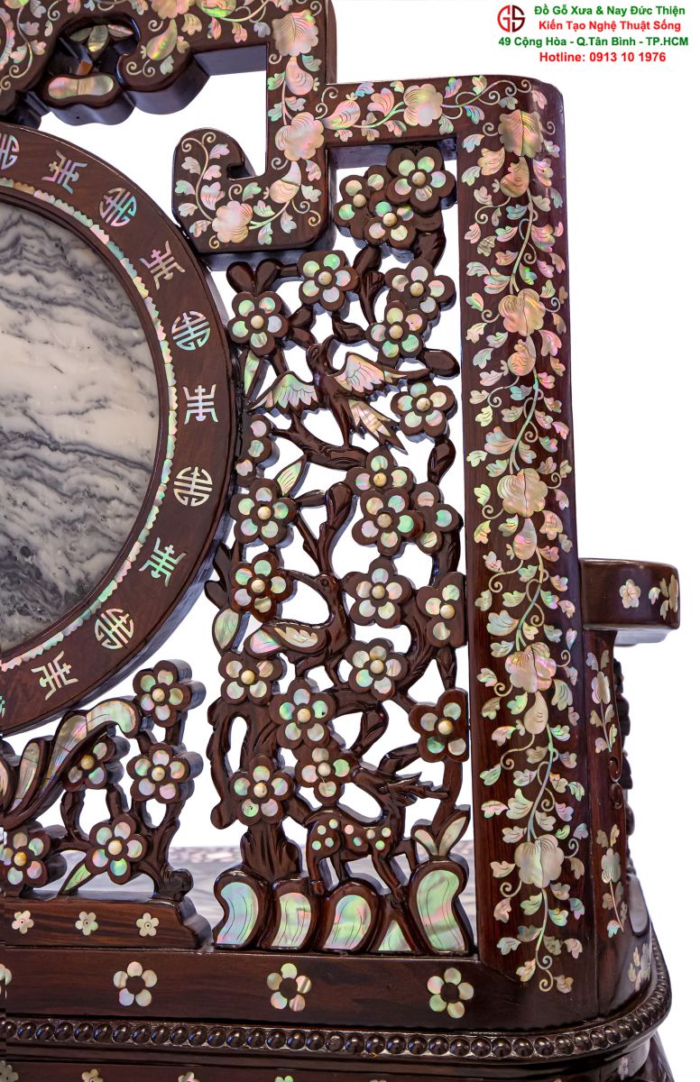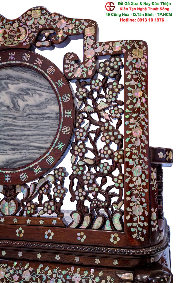 + Chất liệu: gỗ Cẩm Lai Việt khảm ốc xà cừ xịn
