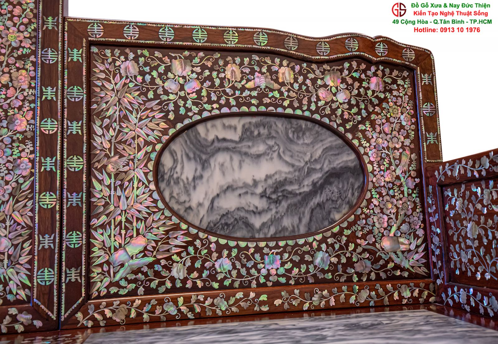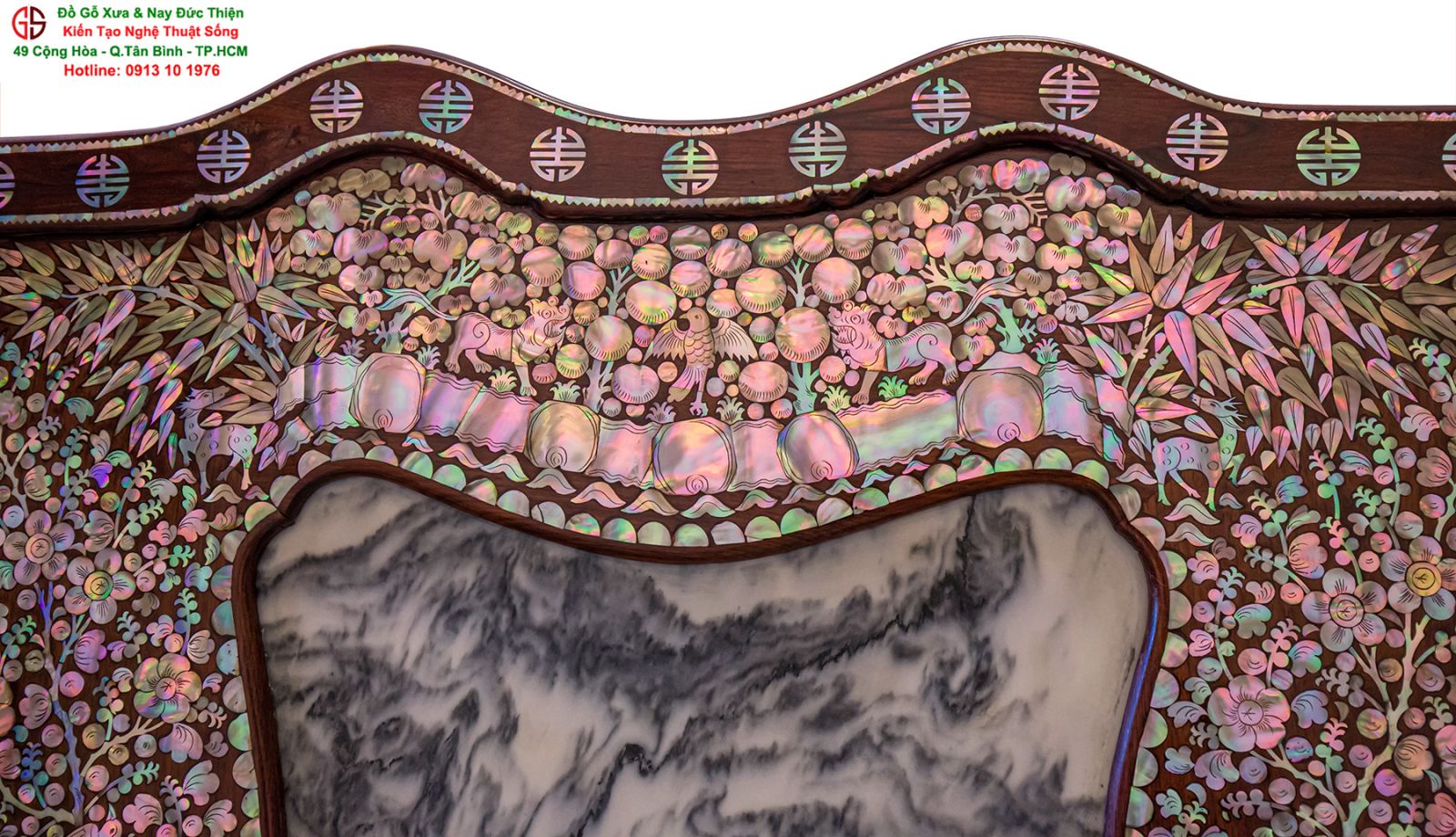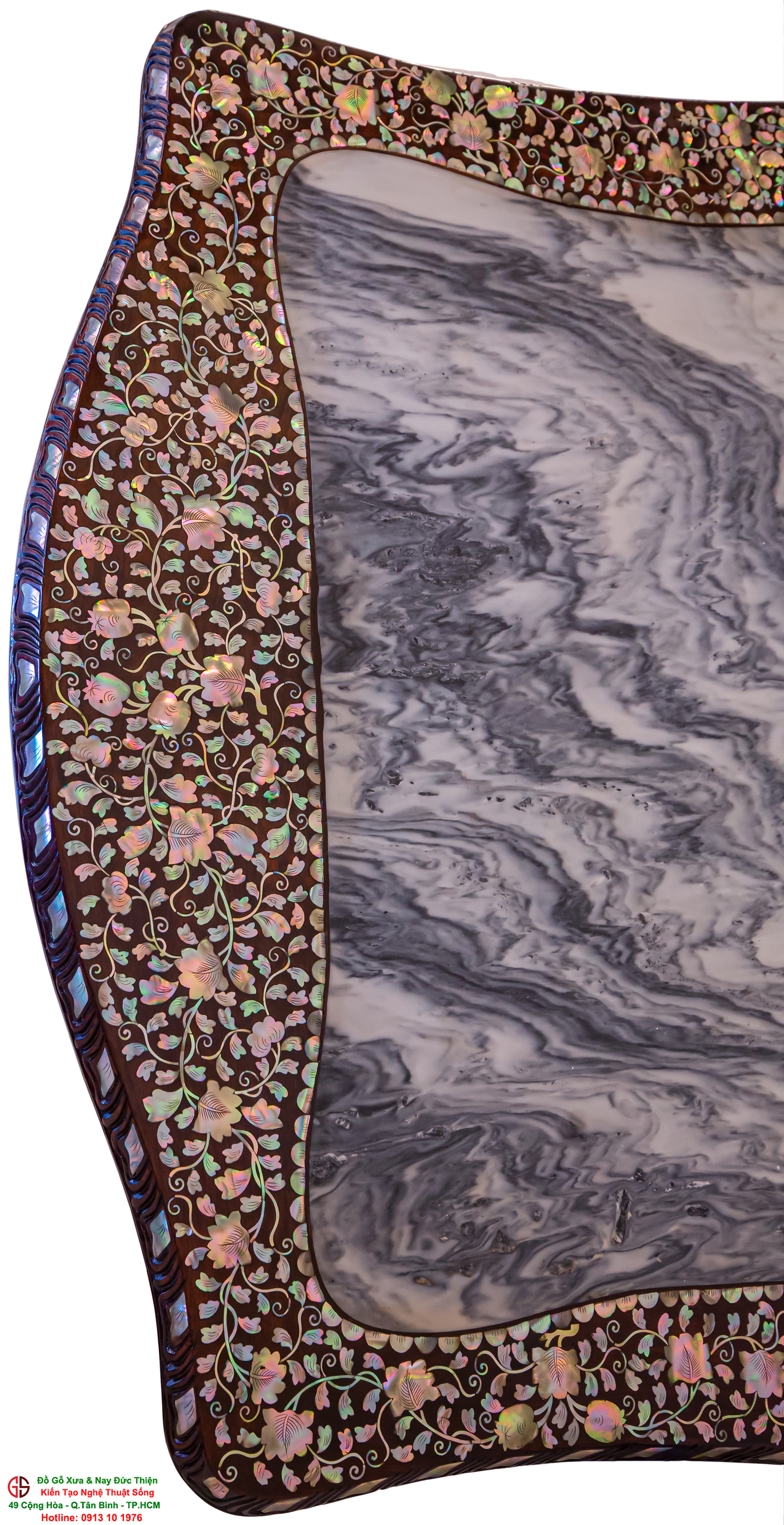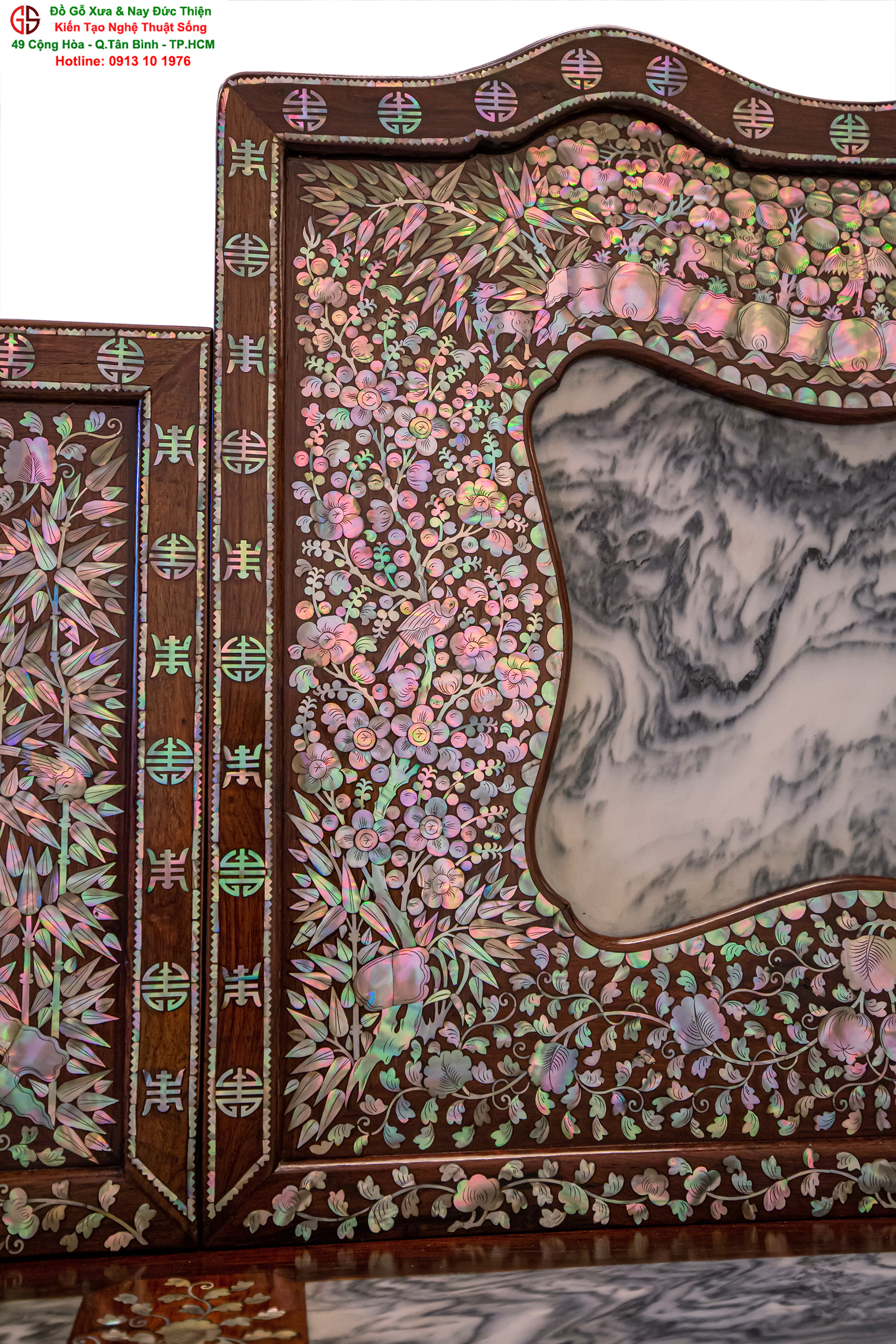 + Chất liệu: gỗ Cẩm Lai Việt khảm ốc xà cừ xịn
