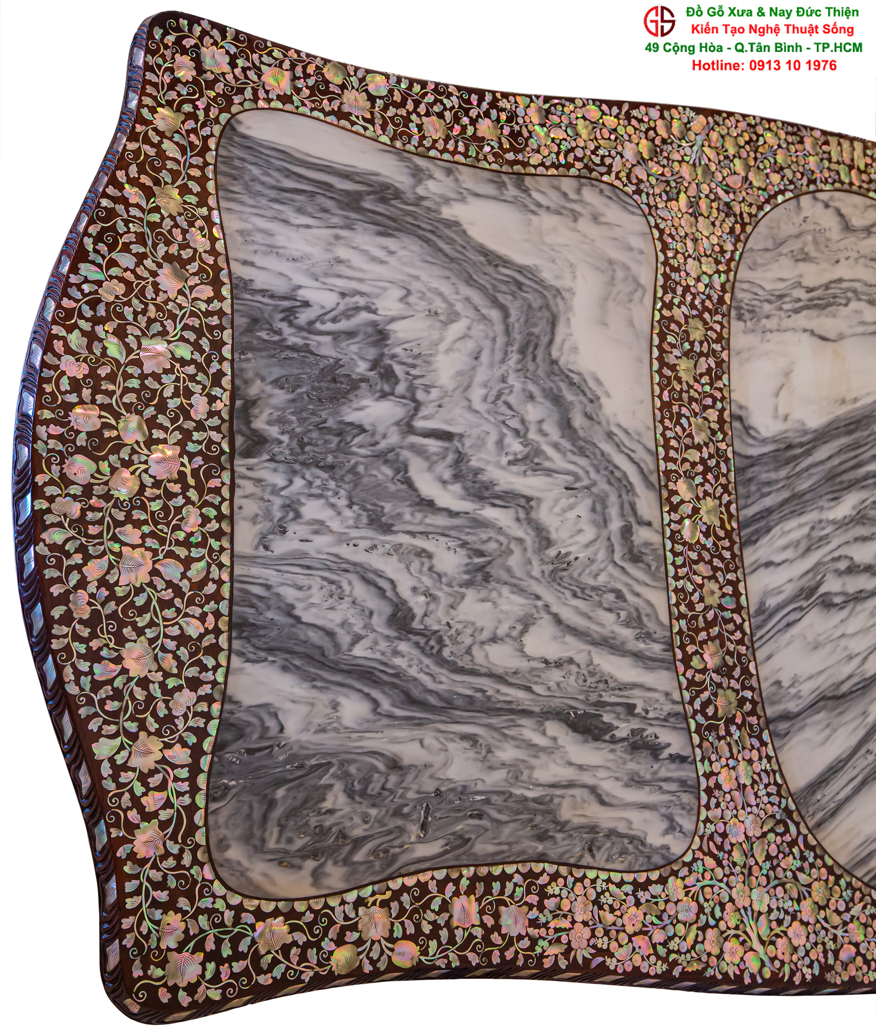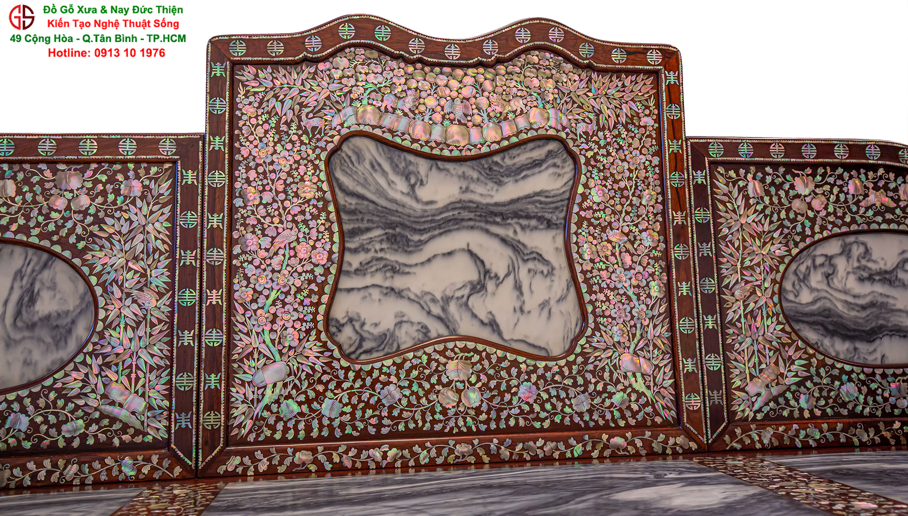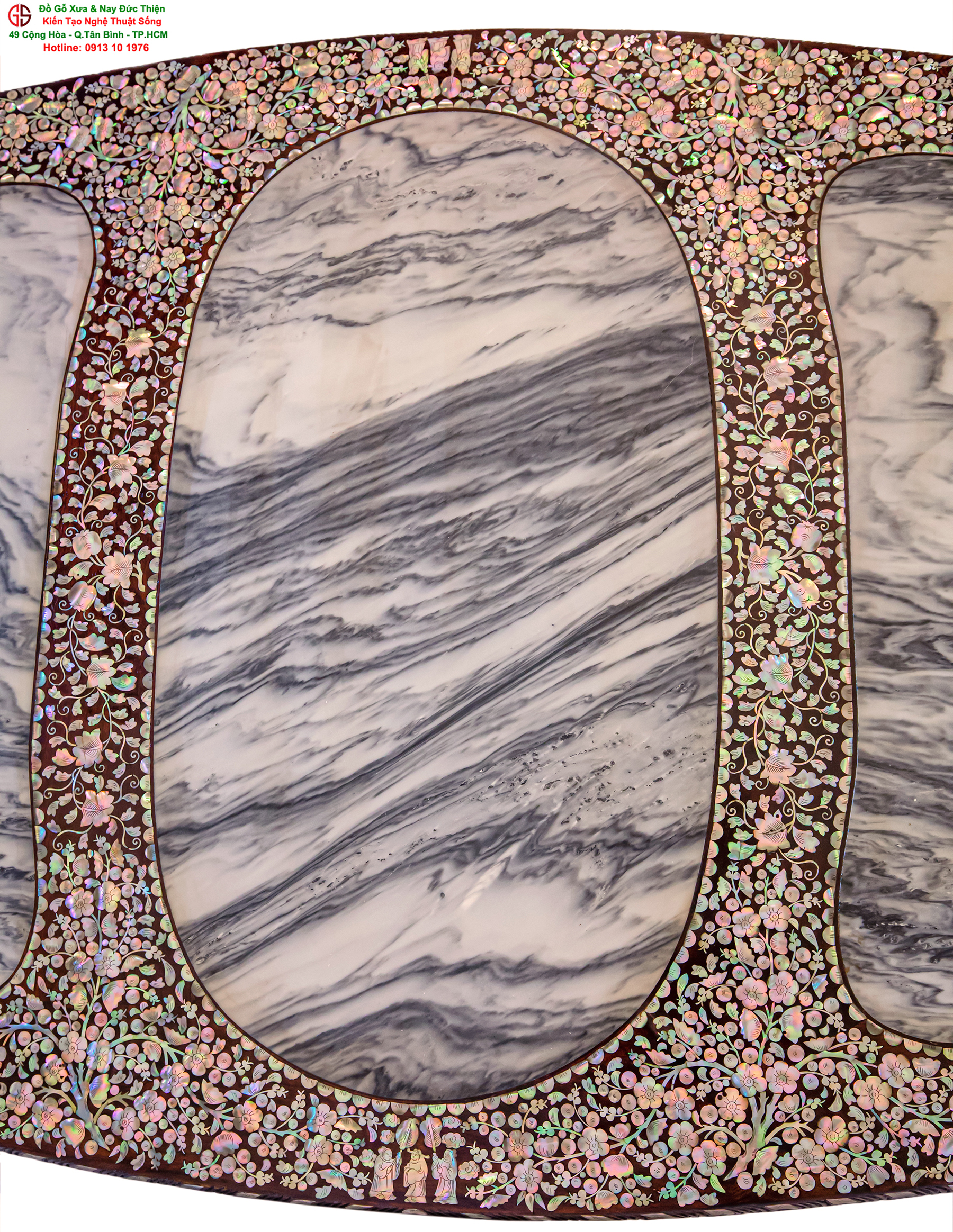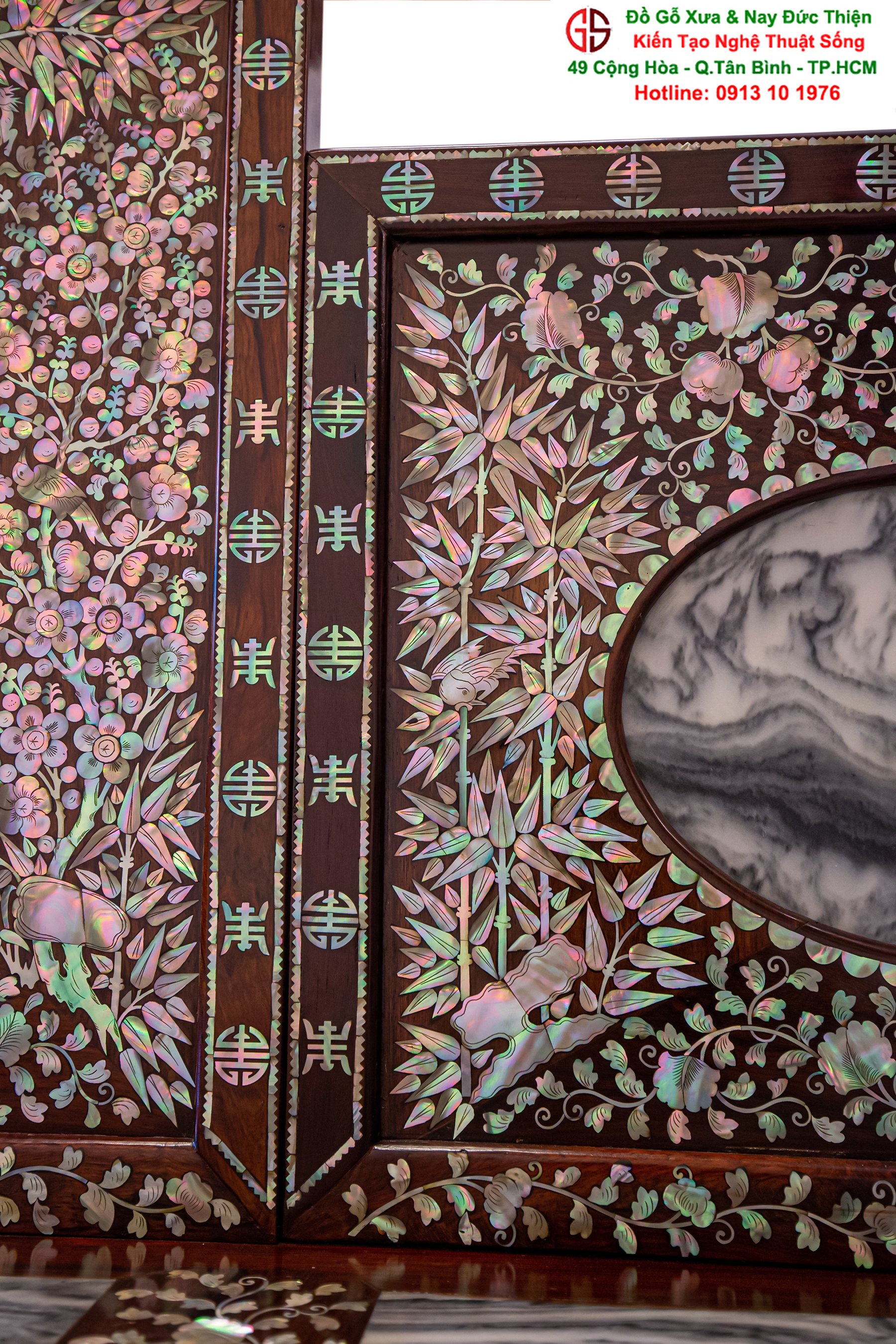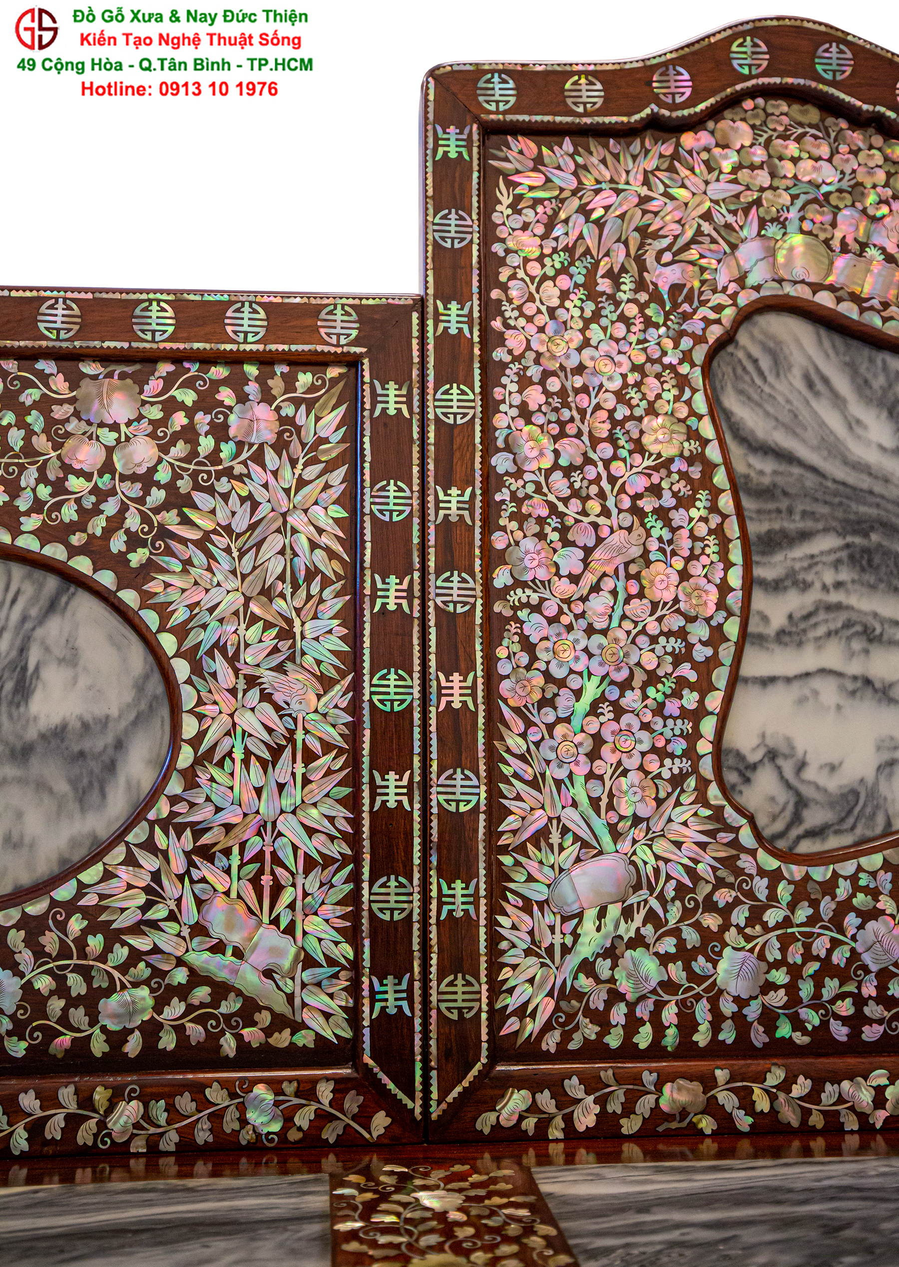 + Chất liệu: gỗ Cẩm Lai Việt khảm ốc xà cừ xịn