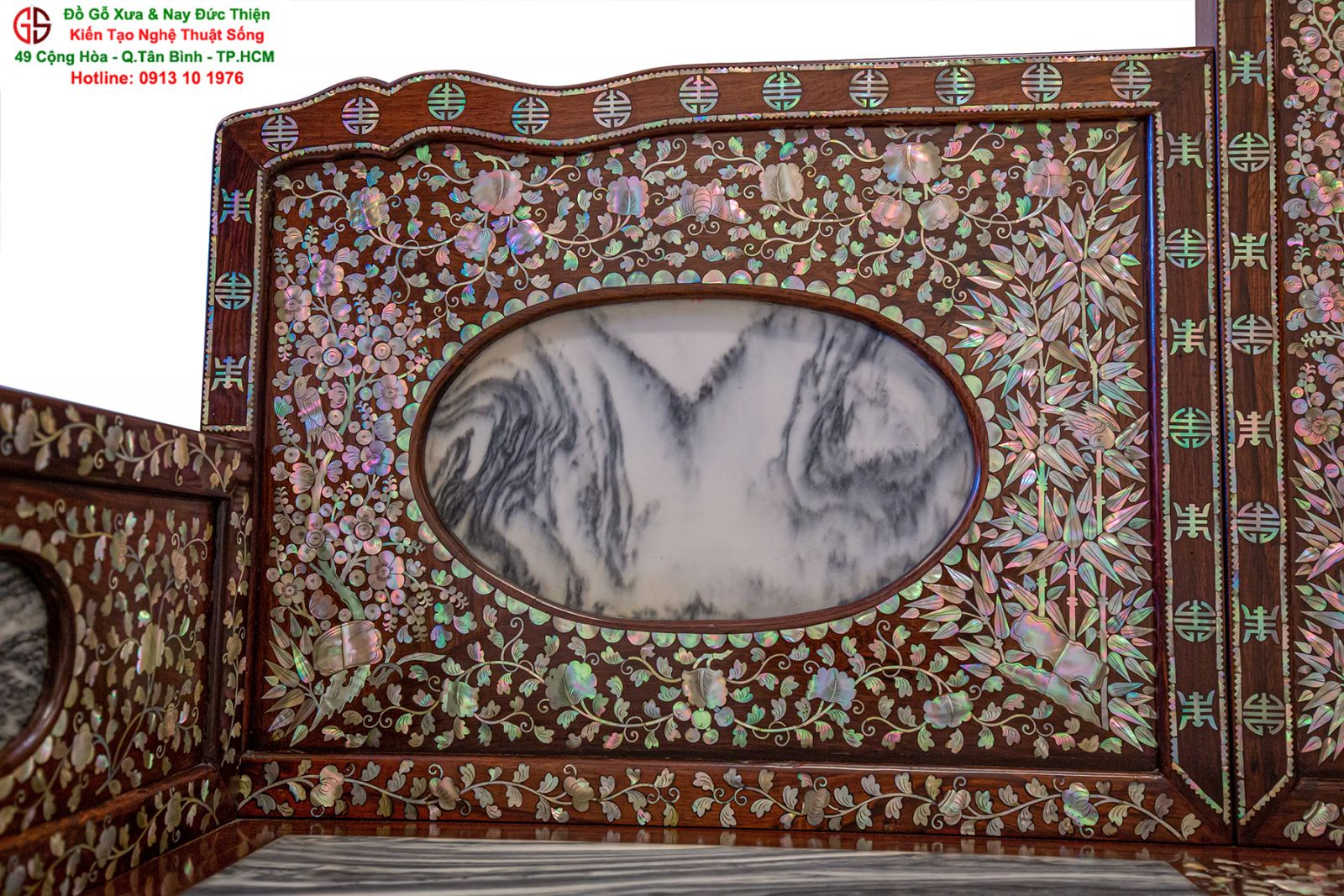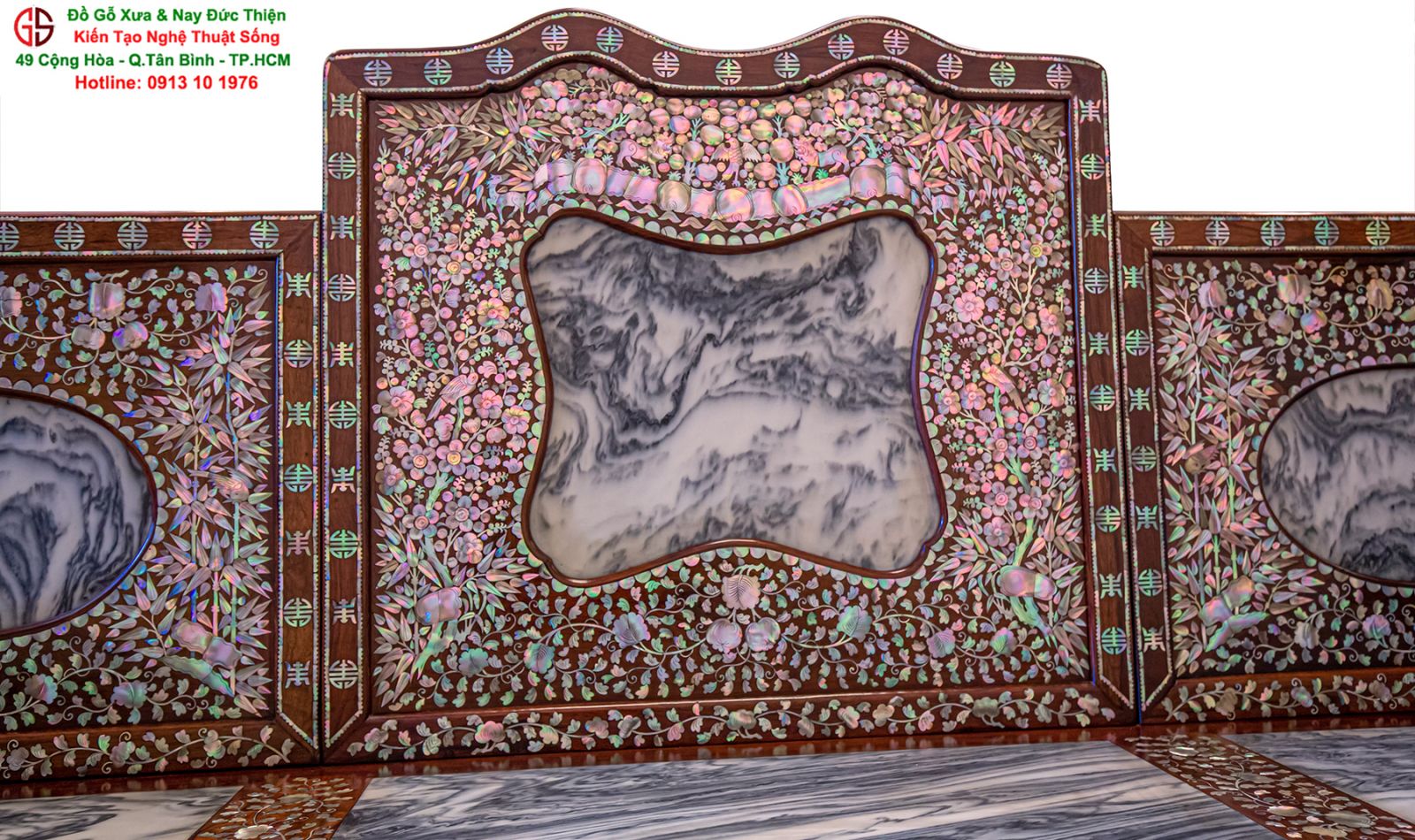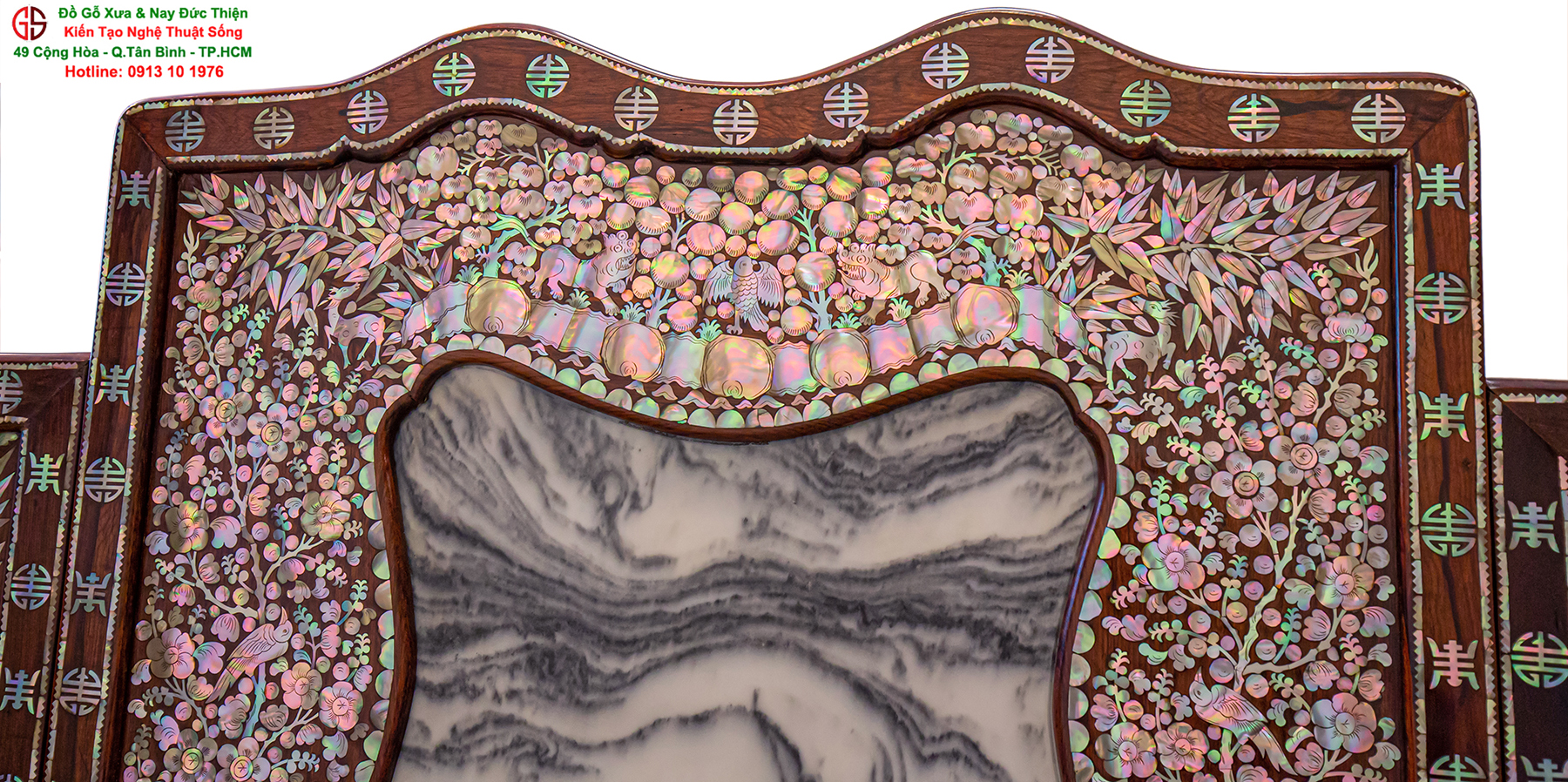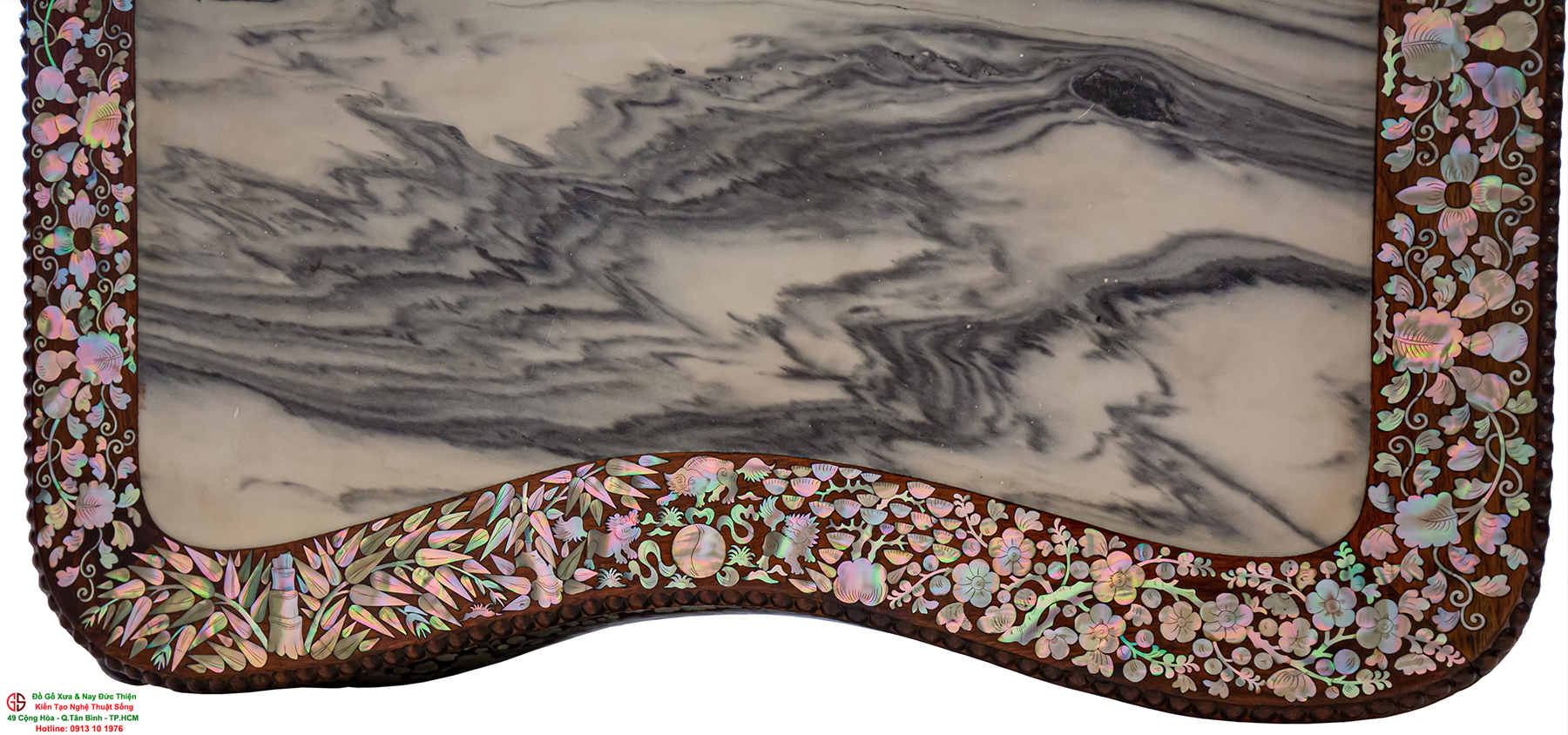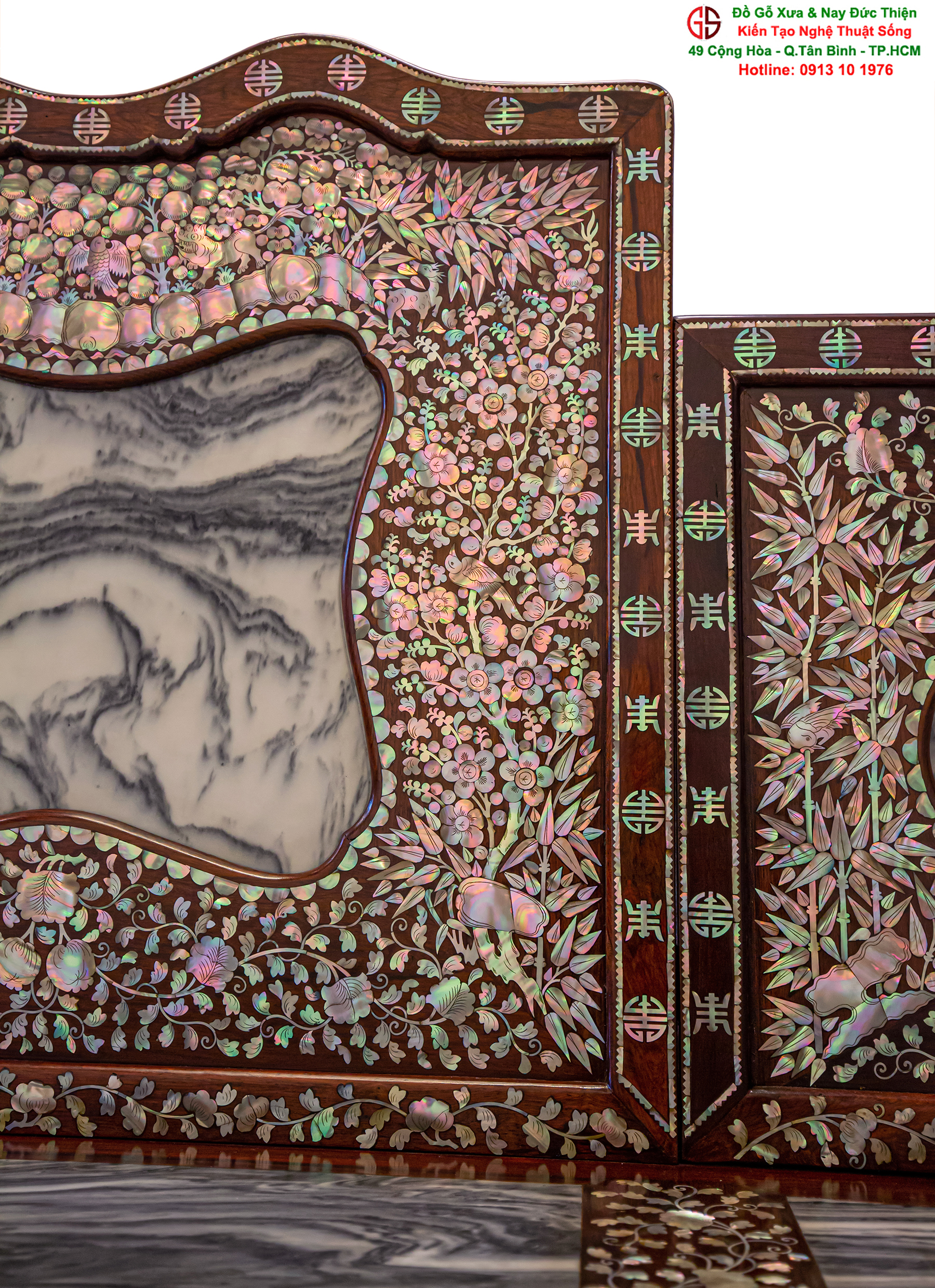 + Chất liệu: gỗ Cẩm Lai Việt khảm ốc xà cừ xịn