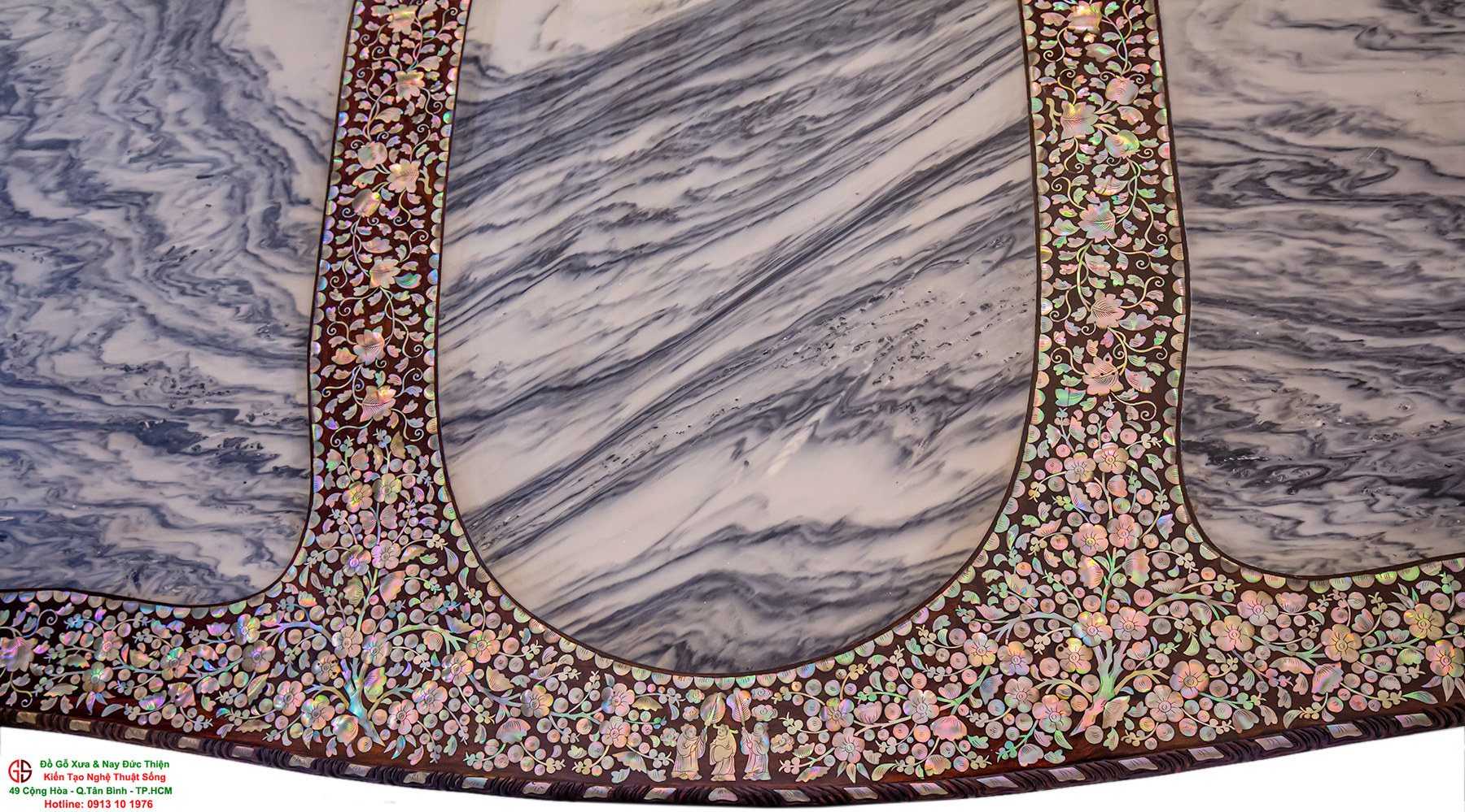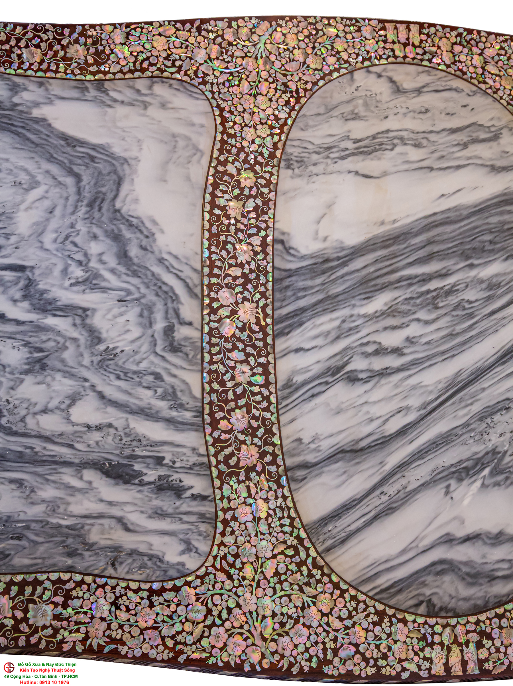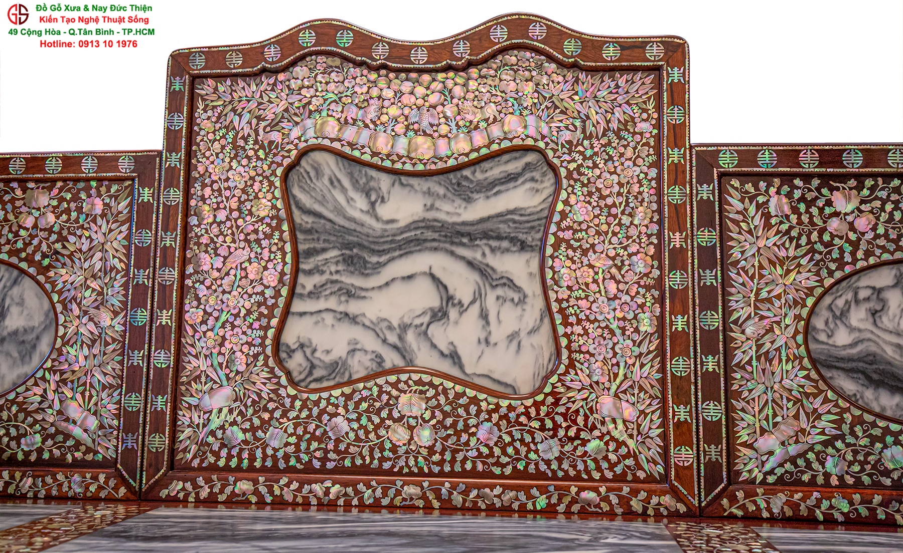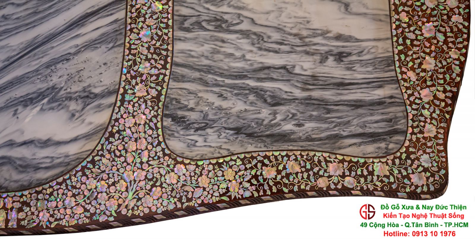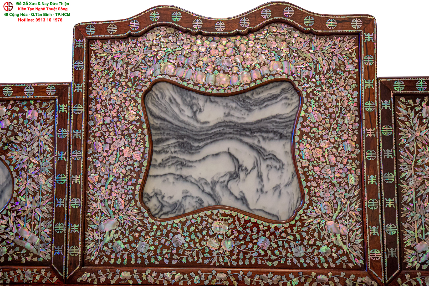 + Chất liệu: gỗ Cẩm Lai Việt khảm ốc xà cừ xịn