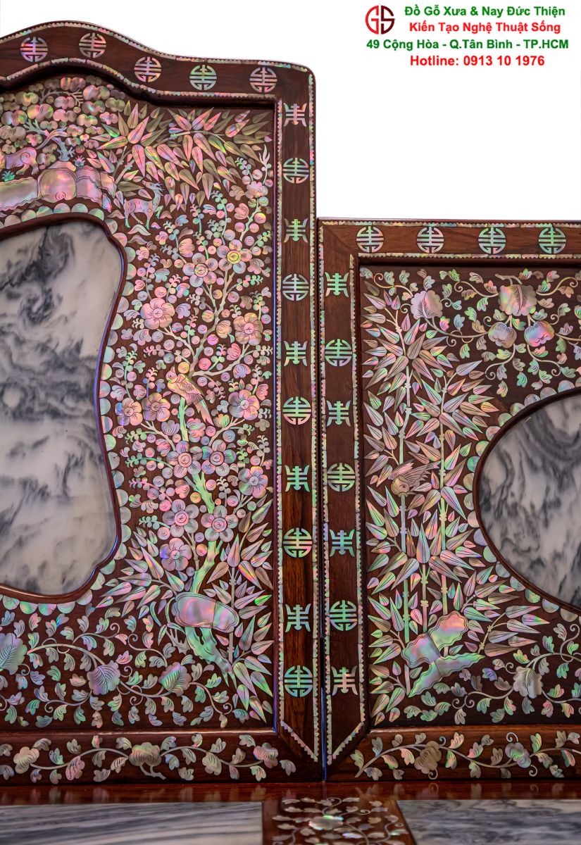 BỘ TAM SƠN GỖ CẨM LAI 9 MÓN KHẢM ỐC