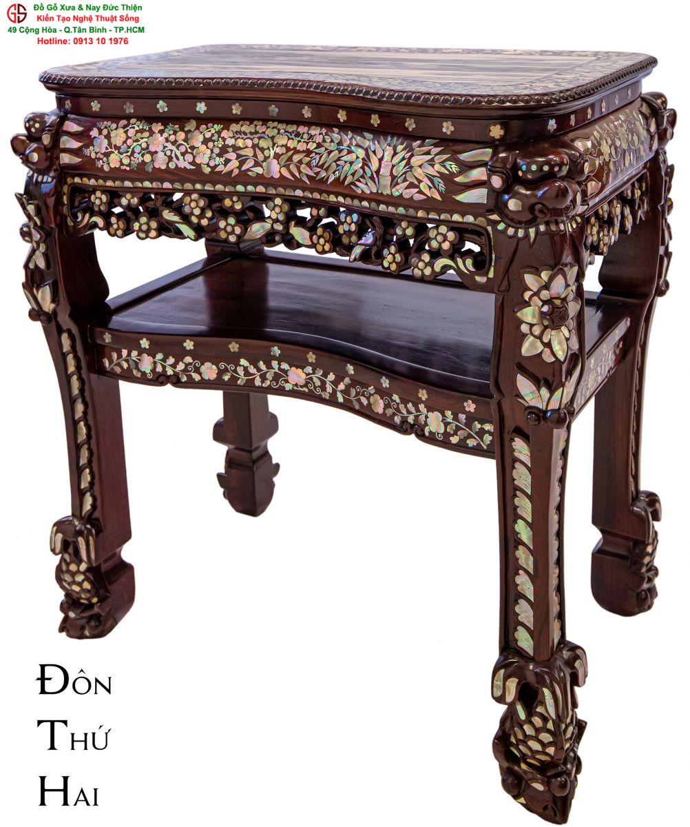 - Đồ Thờ: Bàn thờ, bàn tứ linh, nghi thờ, đại tự thờ, tủ thờ đẹp, tủ thờ cẩn xà cừ, tủ thờ cẩm lai, tủ thờ gò công, tủ thờ 13 chám, tủ thờ nhị thập tứ hiếu.