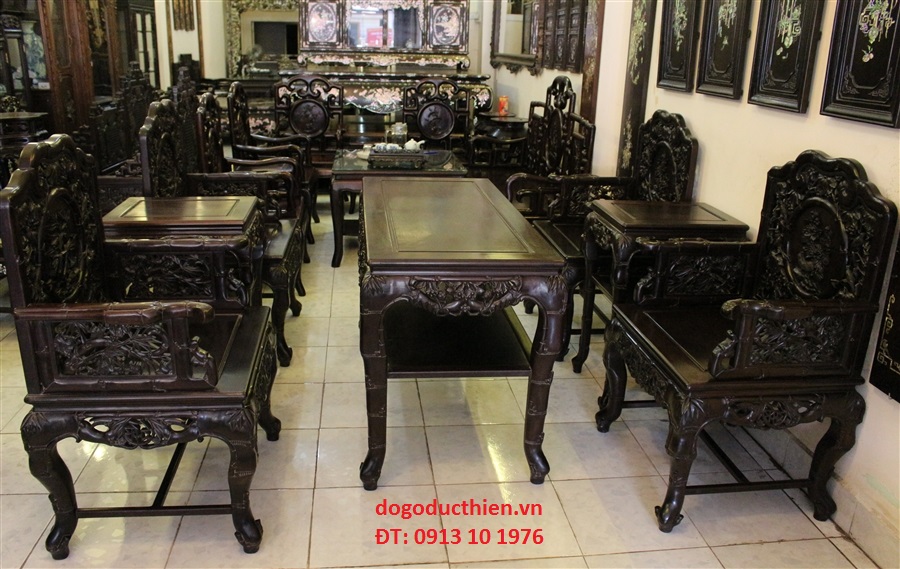 - Bàn ghế Louis, đôn trống gỗ trắc, bộ bàn ăn cẩn ốc, bàn ghế phương kỷ, bàn trung đường cẩn ốc xà cừ