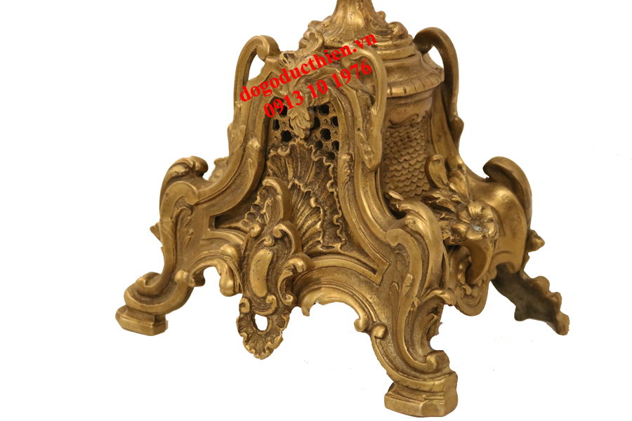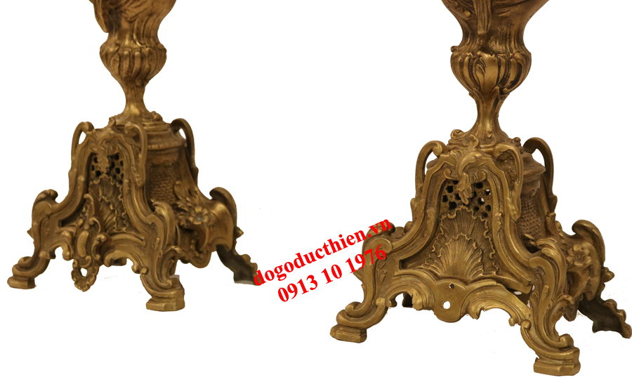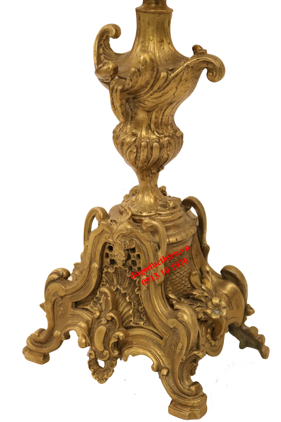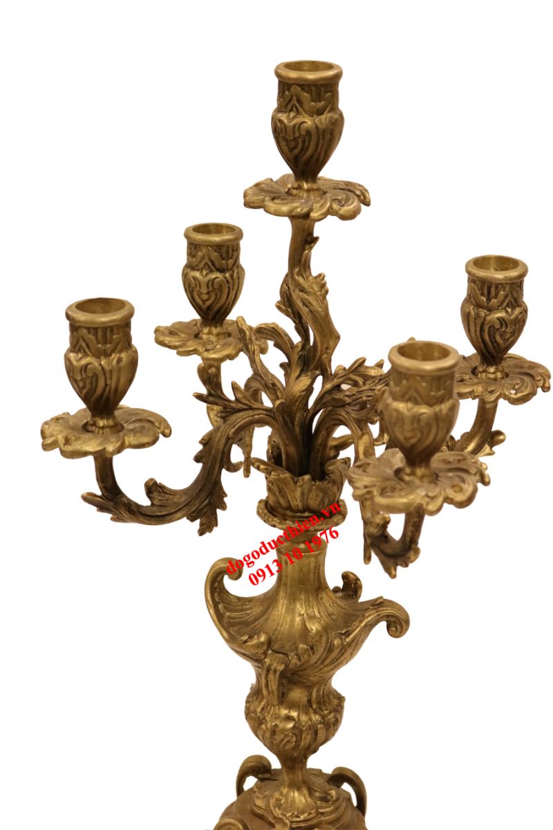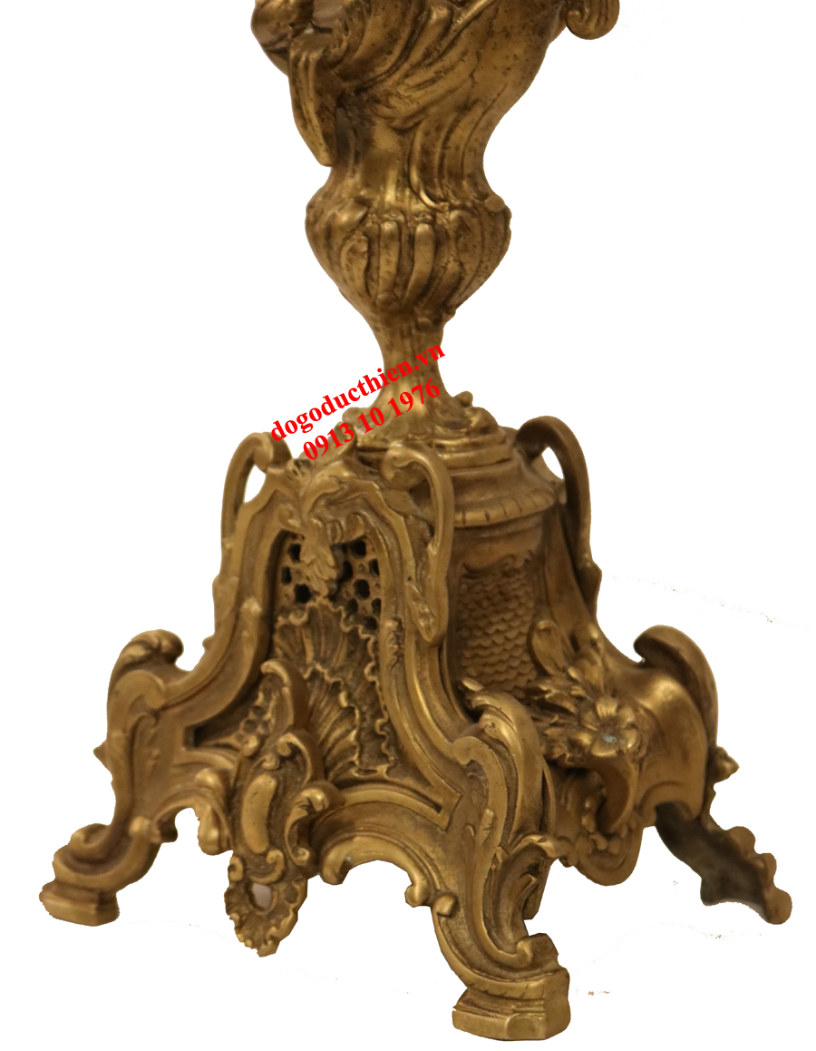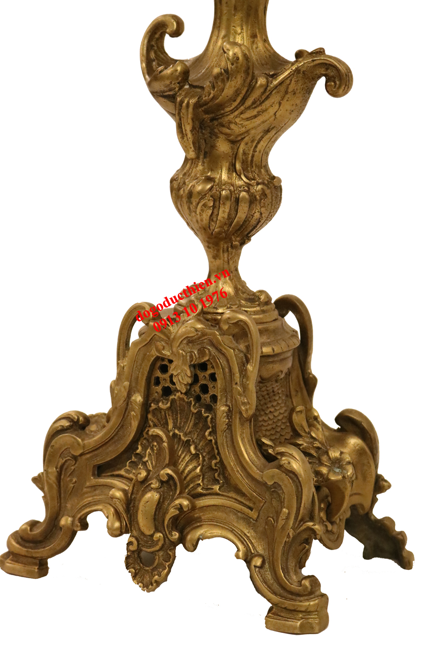 Đồ gỗ Đức Thiện xin giao lưu với các bác cặp chân đèn phong cách Pháp. Cổ đèn và chân đèn được chạm hoa lá tây rất cầu kỳ và tinh xảo, bên trên gồm có 4 ngọn nến và 1 ngọn ở trung tâm tổng cộng là 5 ngọn. Sản phẩm được đúc từ 100% đồng nguyên chất rất bền và đẹp . Là một món đồ quý trang trí trong phòng khách của bạn.