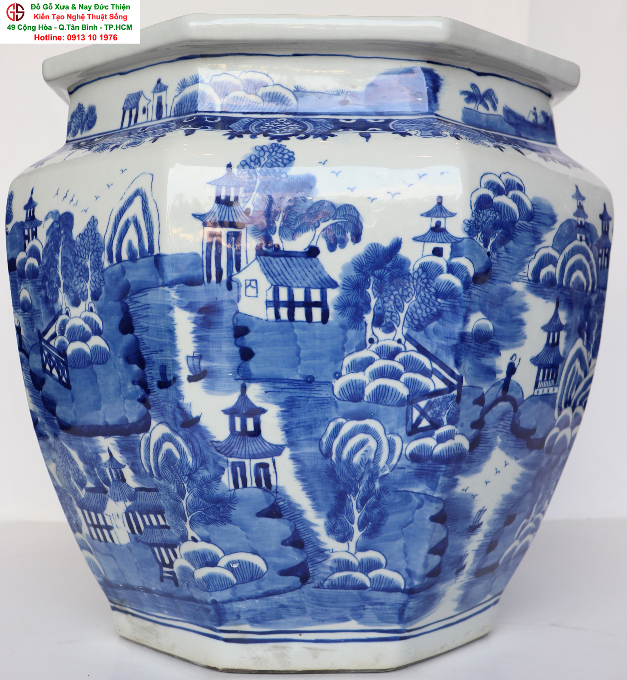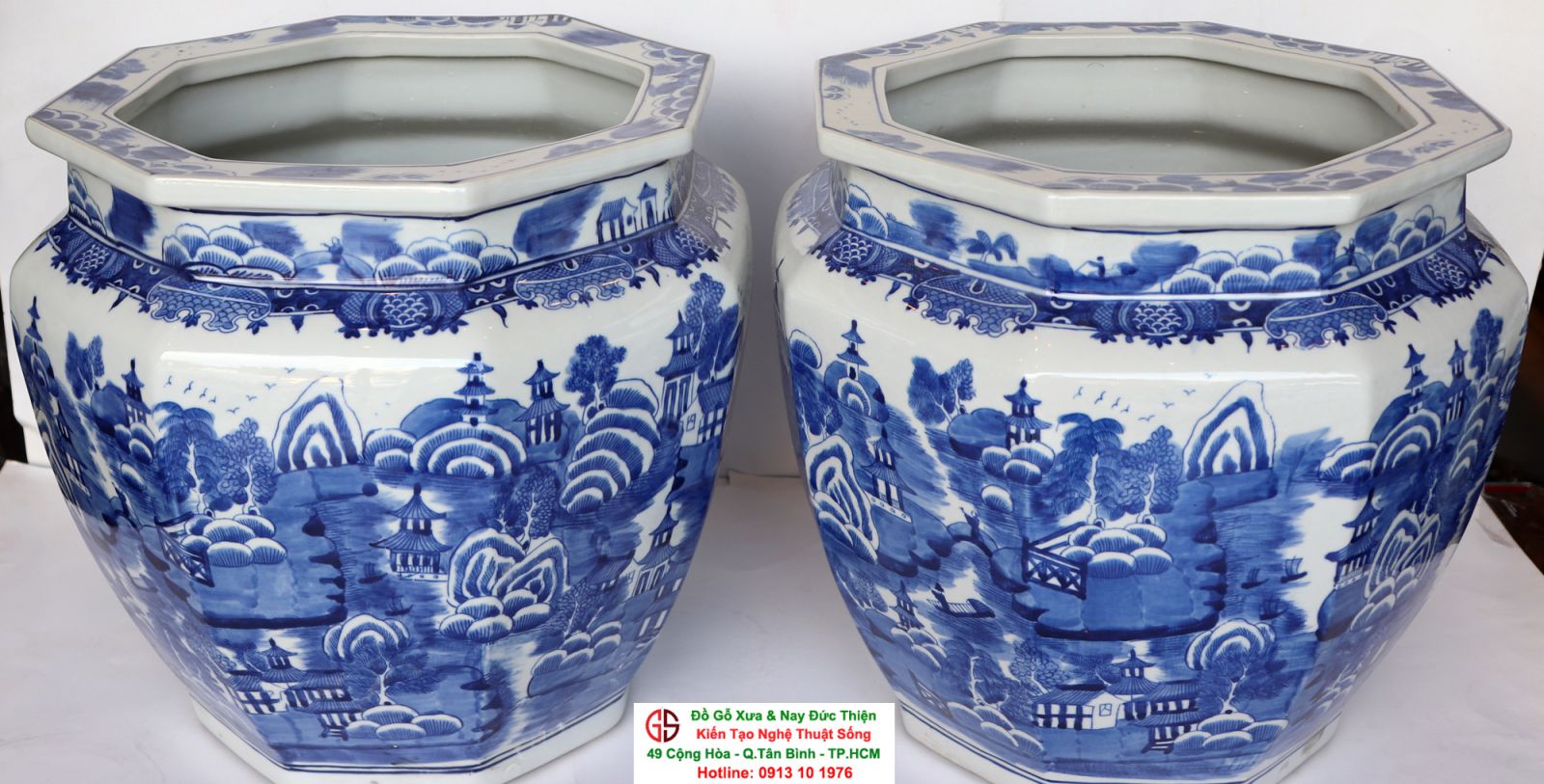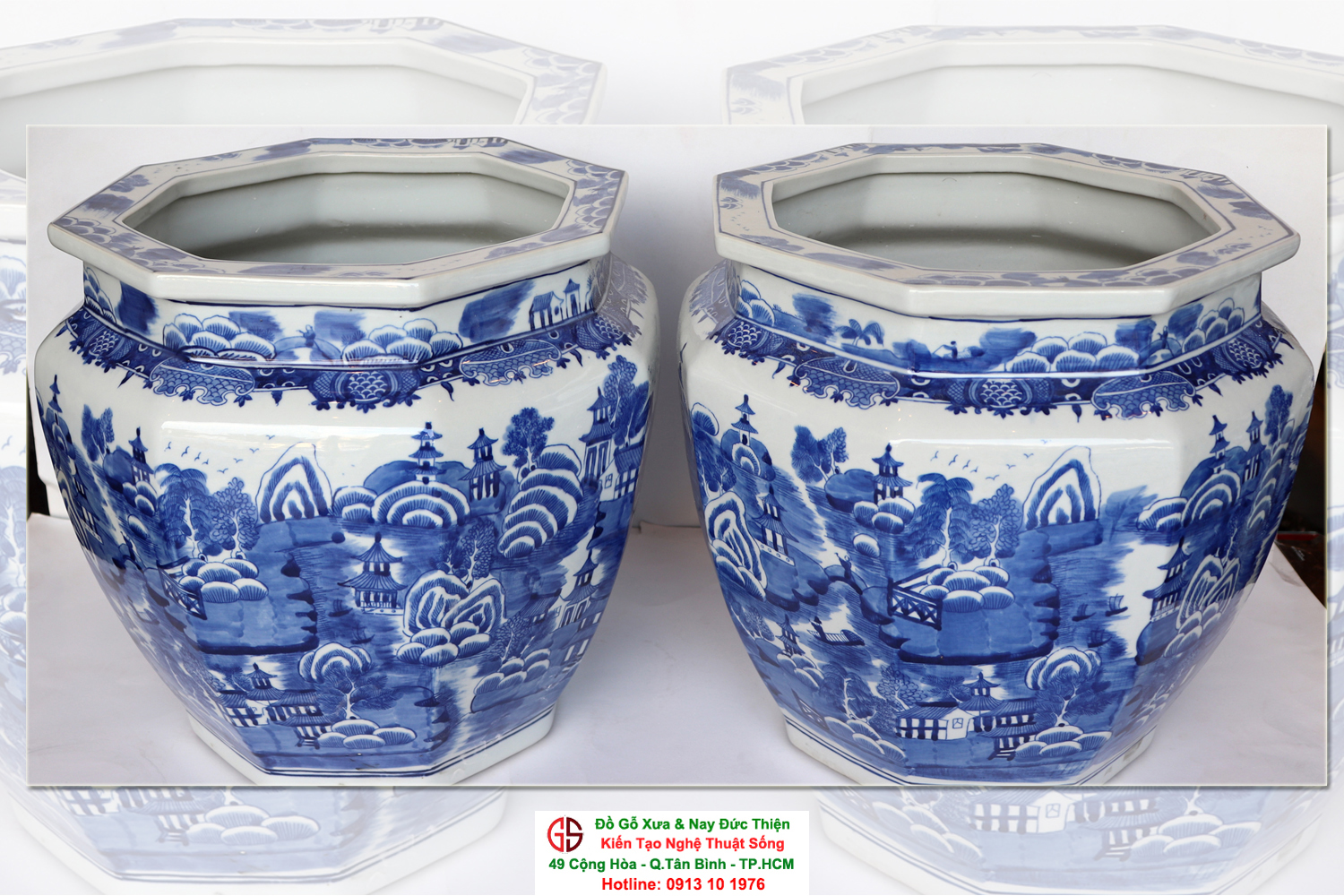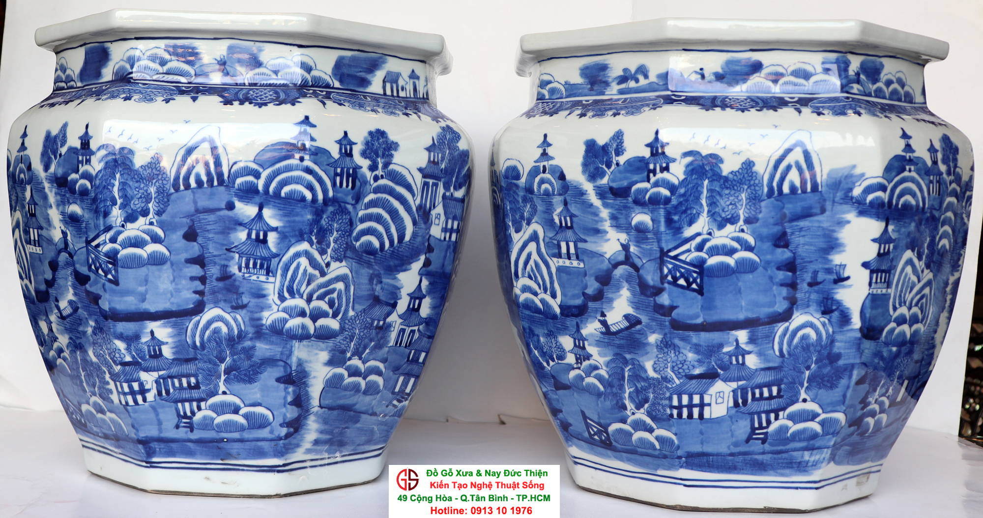 Đồ Gỗ Đức Thiện xin giới thiệu với quý hữu có chung niềm đam mê một cặp chậu sự đẹp được vẽ theo kiểu cổ ( hàng mới phỏng cổ cao cấp ) tích : sơn thủy hữu tình.