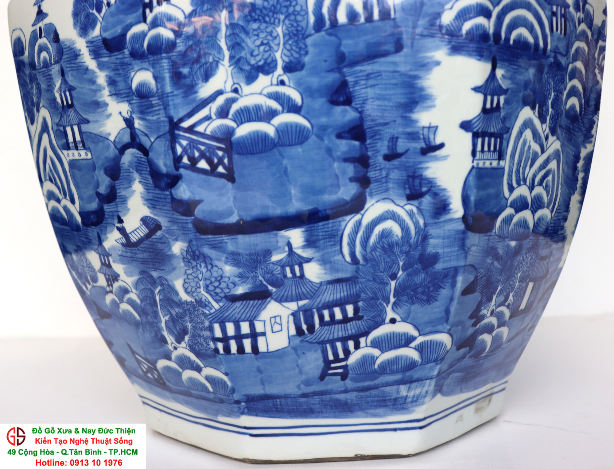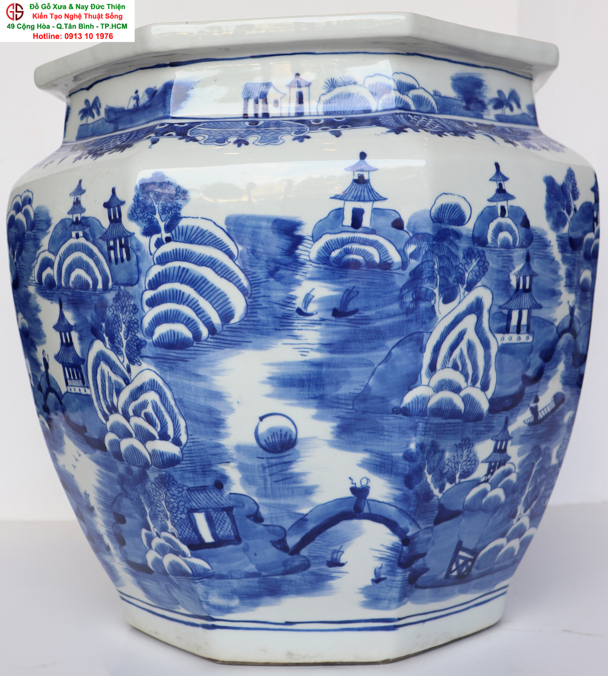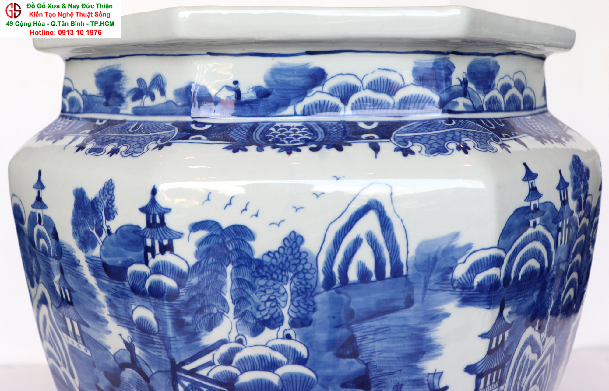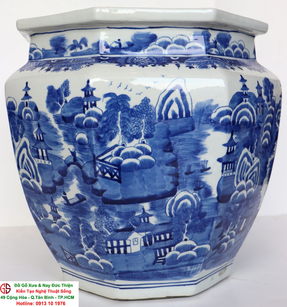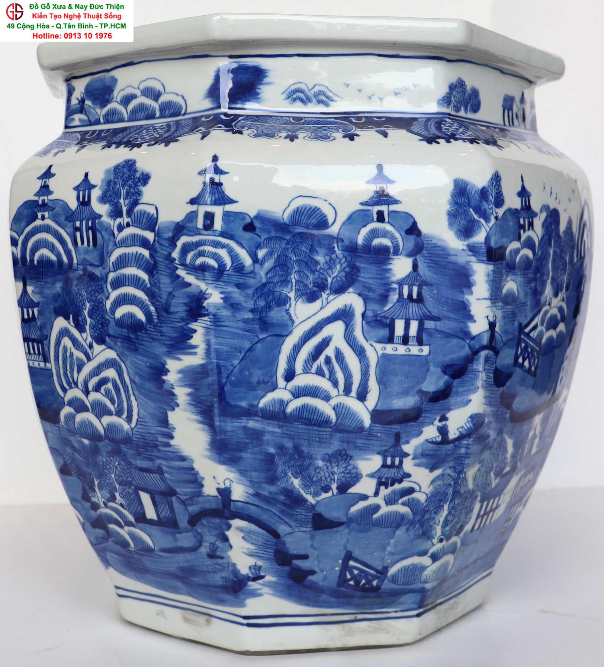 Đồ Gỗ Đức Thiện xin giới thiệu với quý hữu có chung niềm đam mê một cặp chậu sự đẹp được vẽ theo kiểu cổ ( hàng mới phỏng cổ cao cấp ) tích : sơn thủy hữu tình.