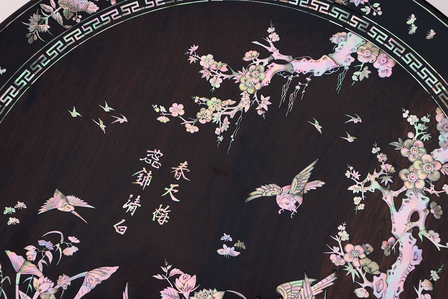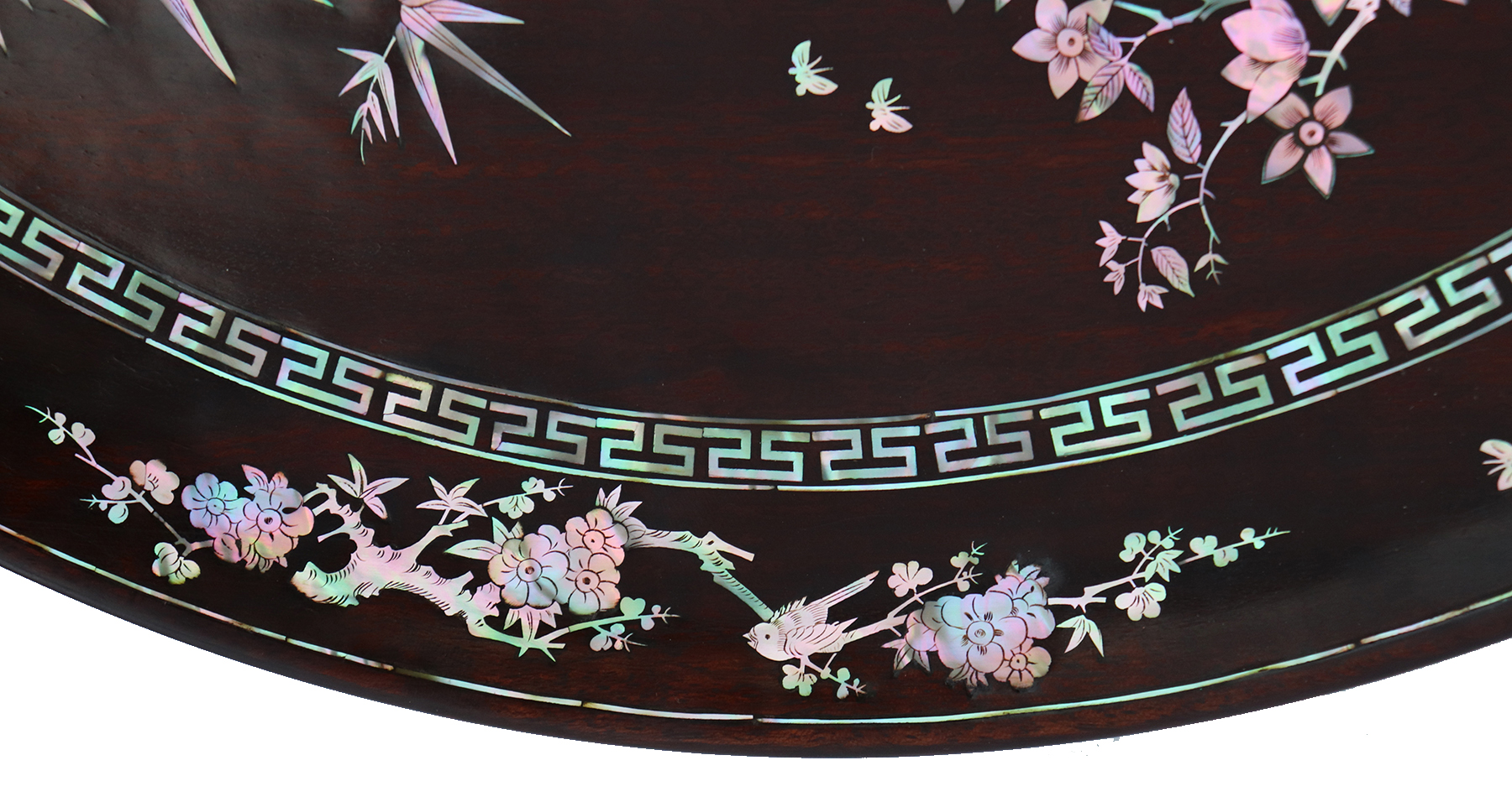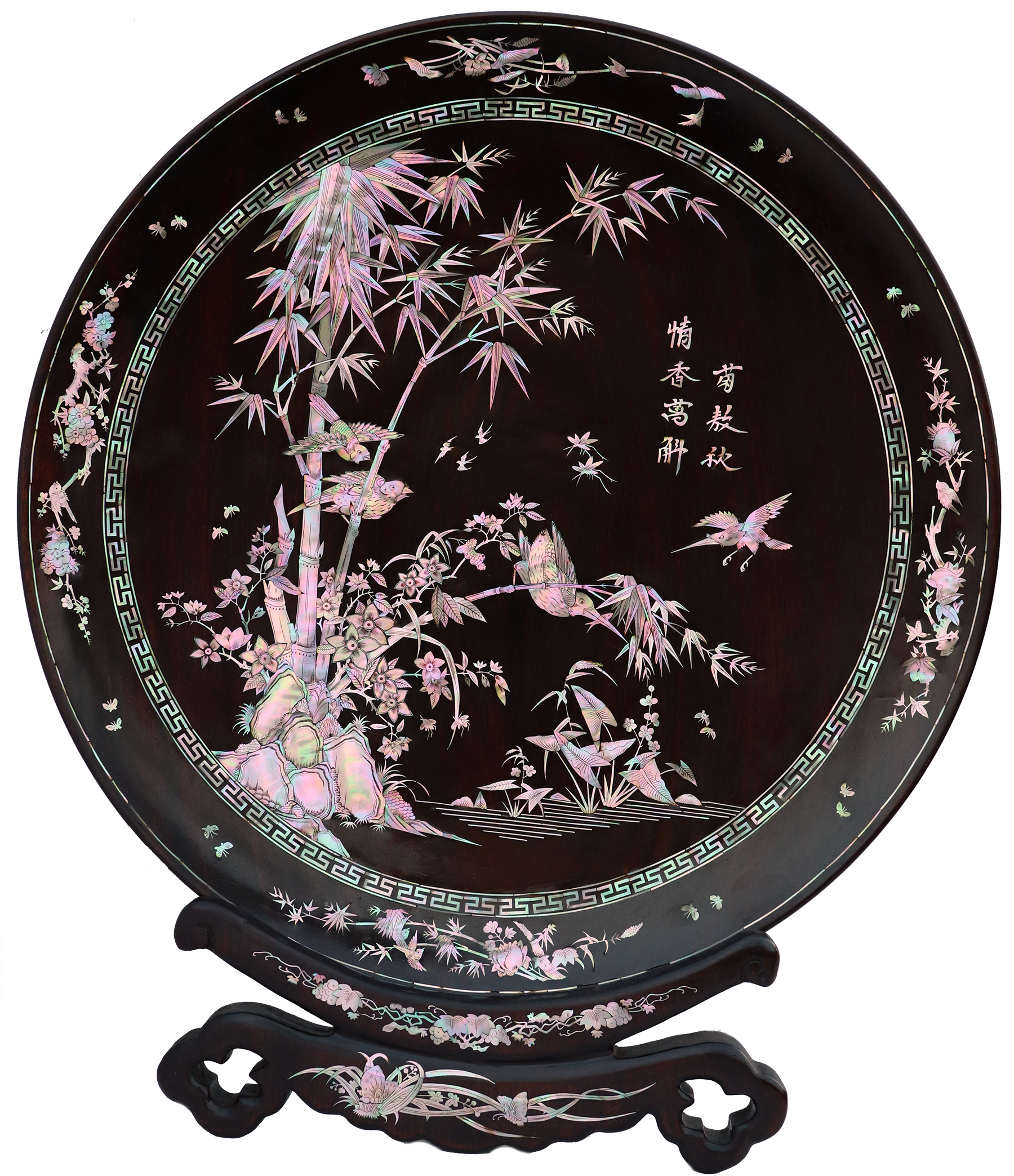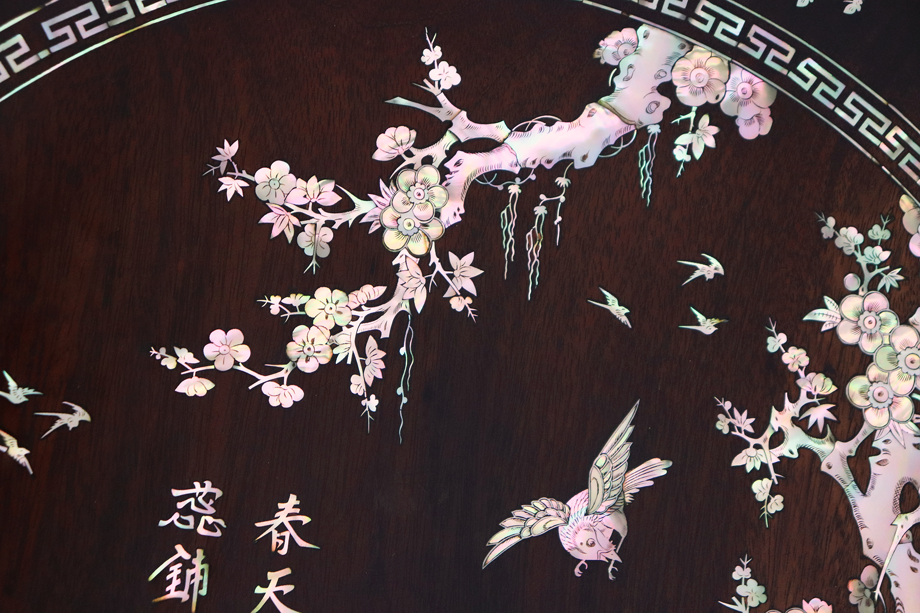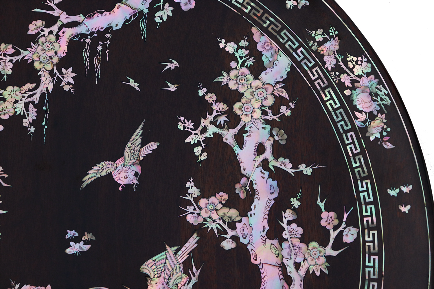 Mỗi món đồ khảm ốc luôn chất chứa những tâm huyết của người nghệ nhân. Với đôi đĩa khảm trúc mai sum họp một nhà này là một tuyệt tác điển hình