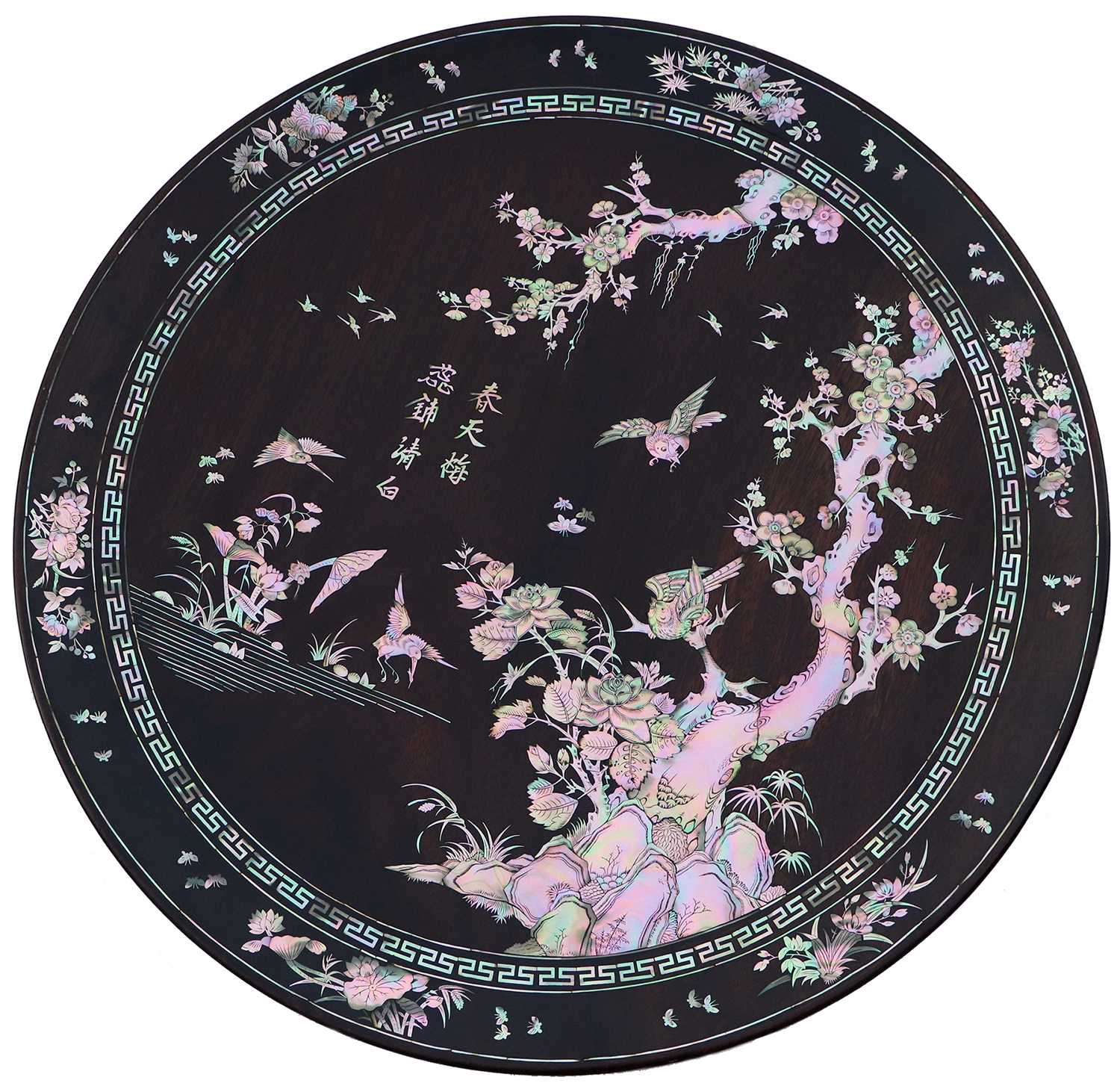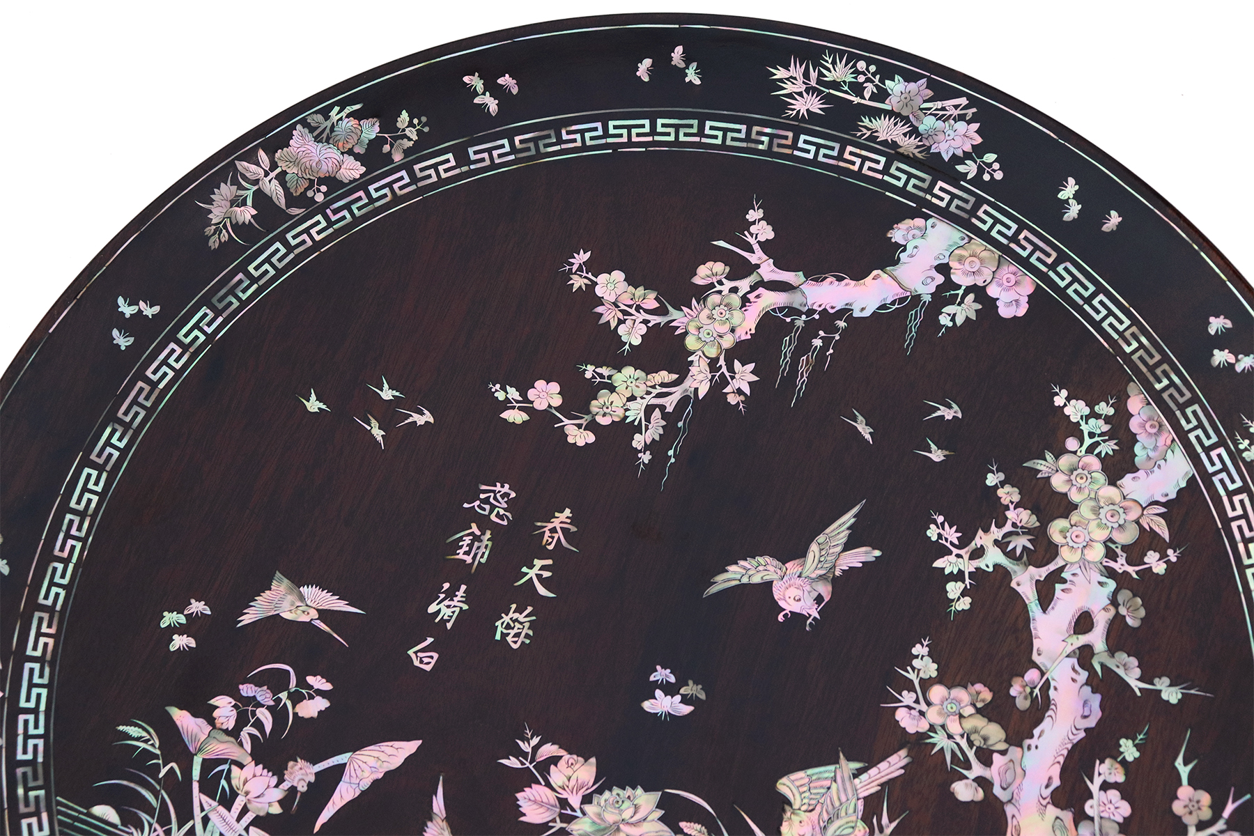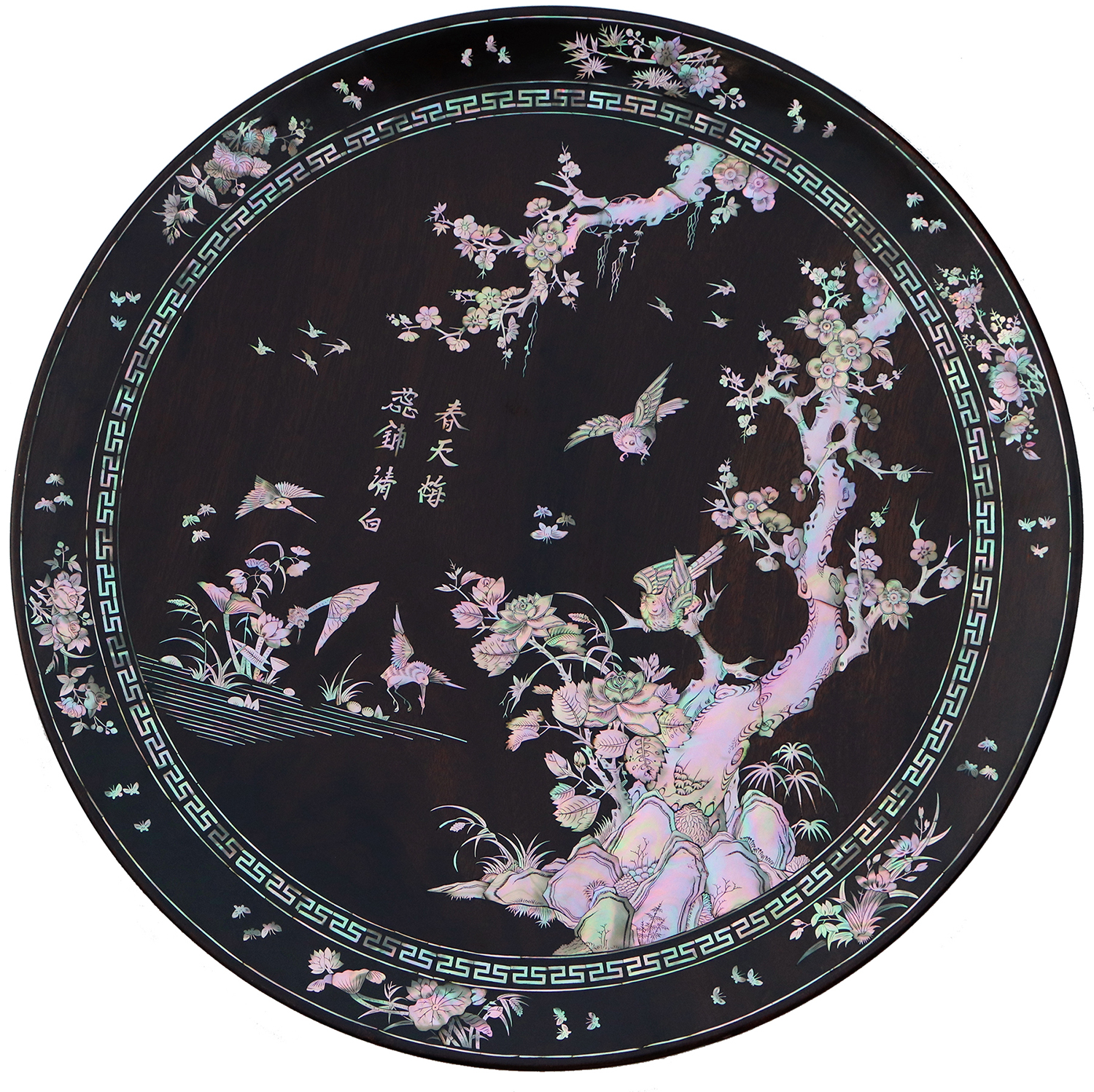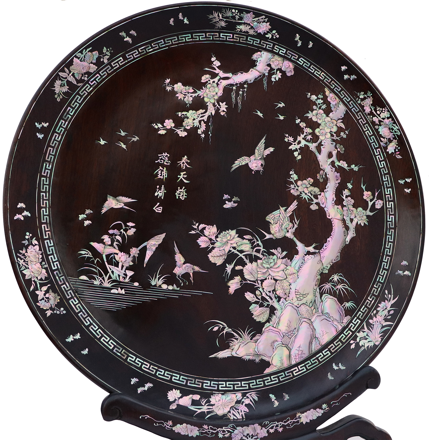 Mỗi món đồ khảm ốc luôn chất chứa những tâm huyết của người nghệ nhân. Với đôi đĩa khảm trúc mai sum họp một nhà này là một tuyệt tác điển hình