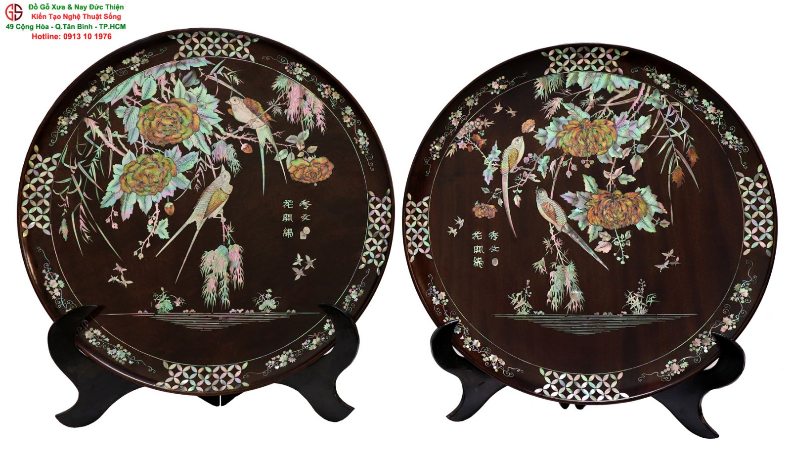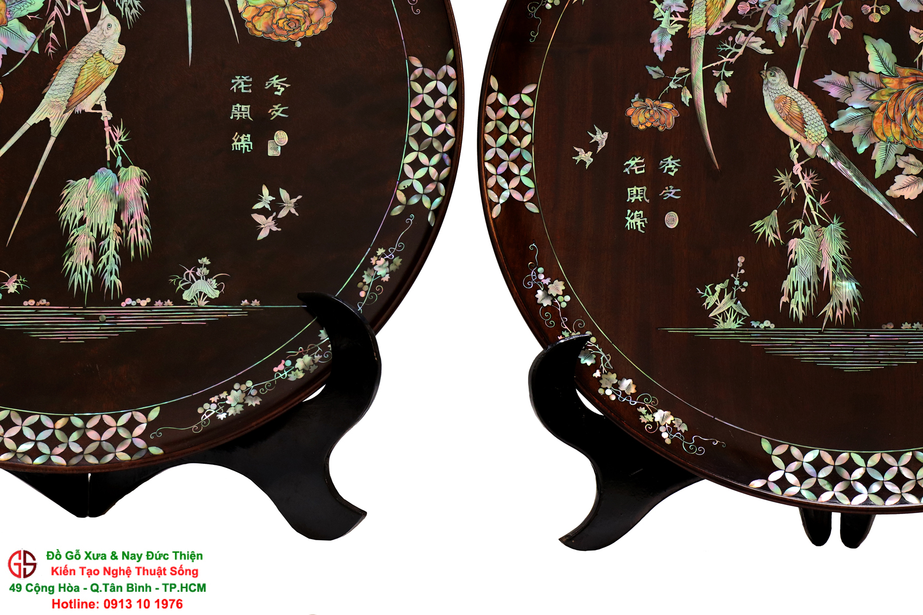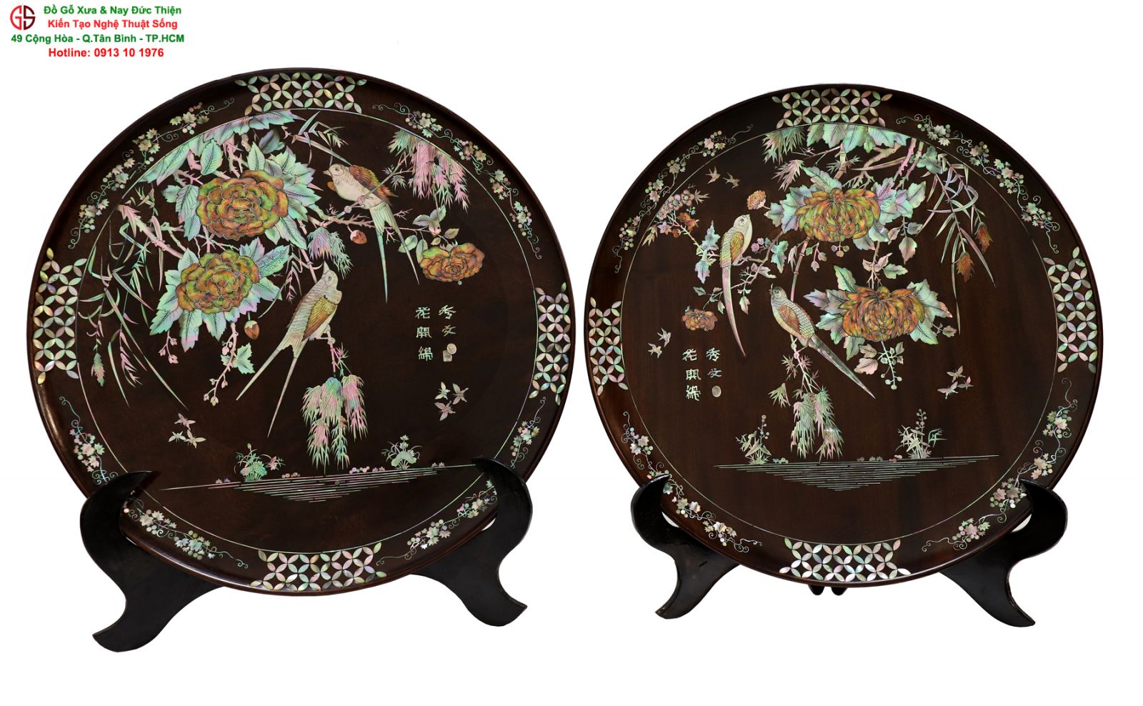 Cặp Đĩa Gỗ Gụ Khảm Ốc Đẹp