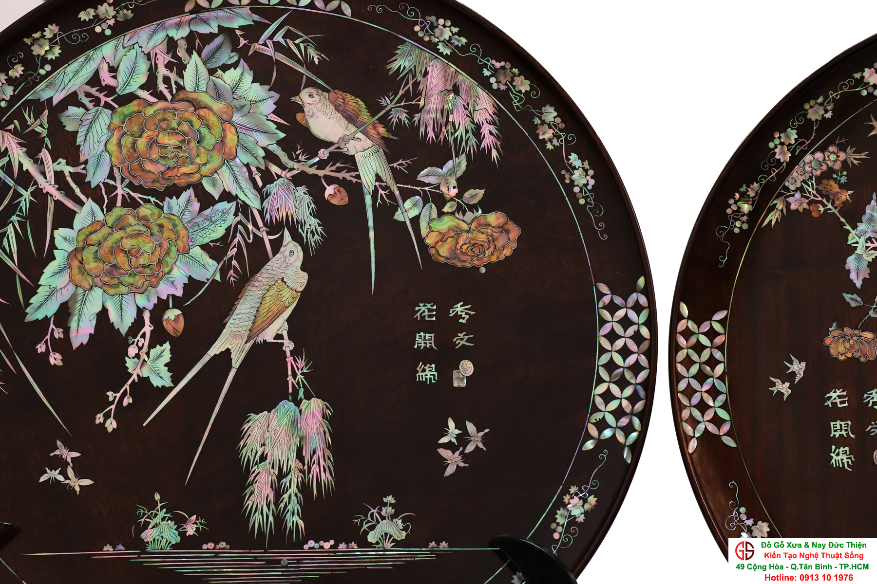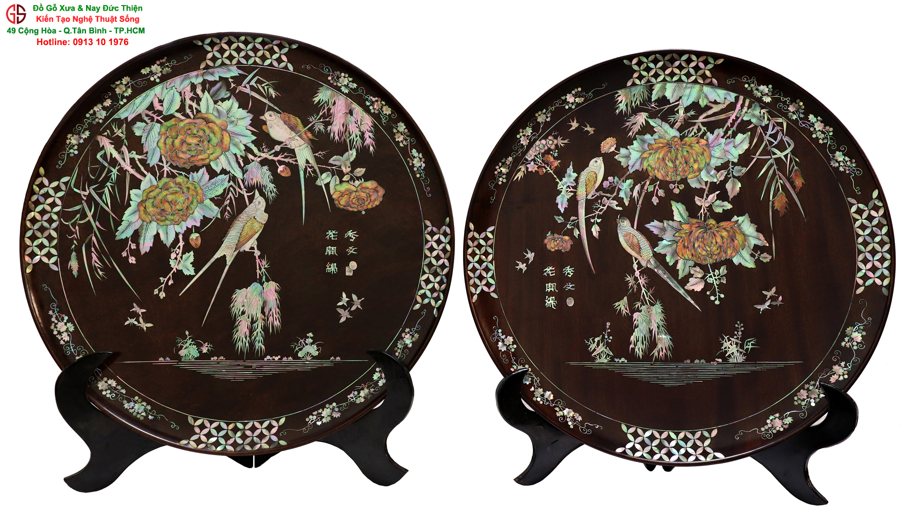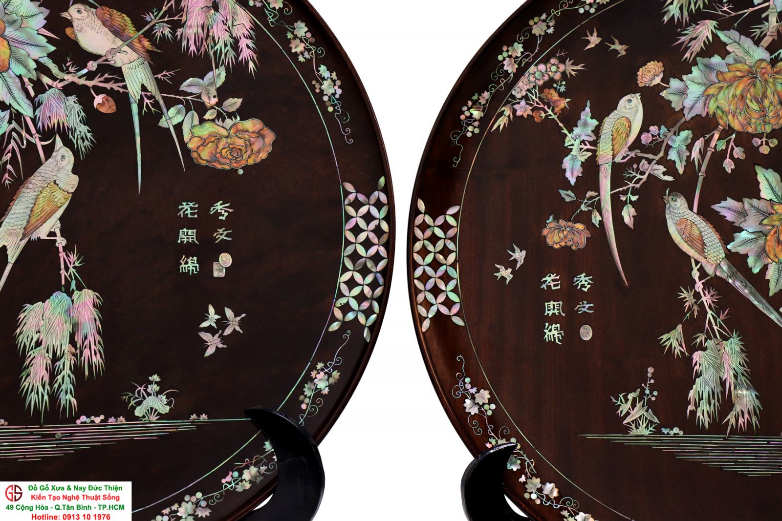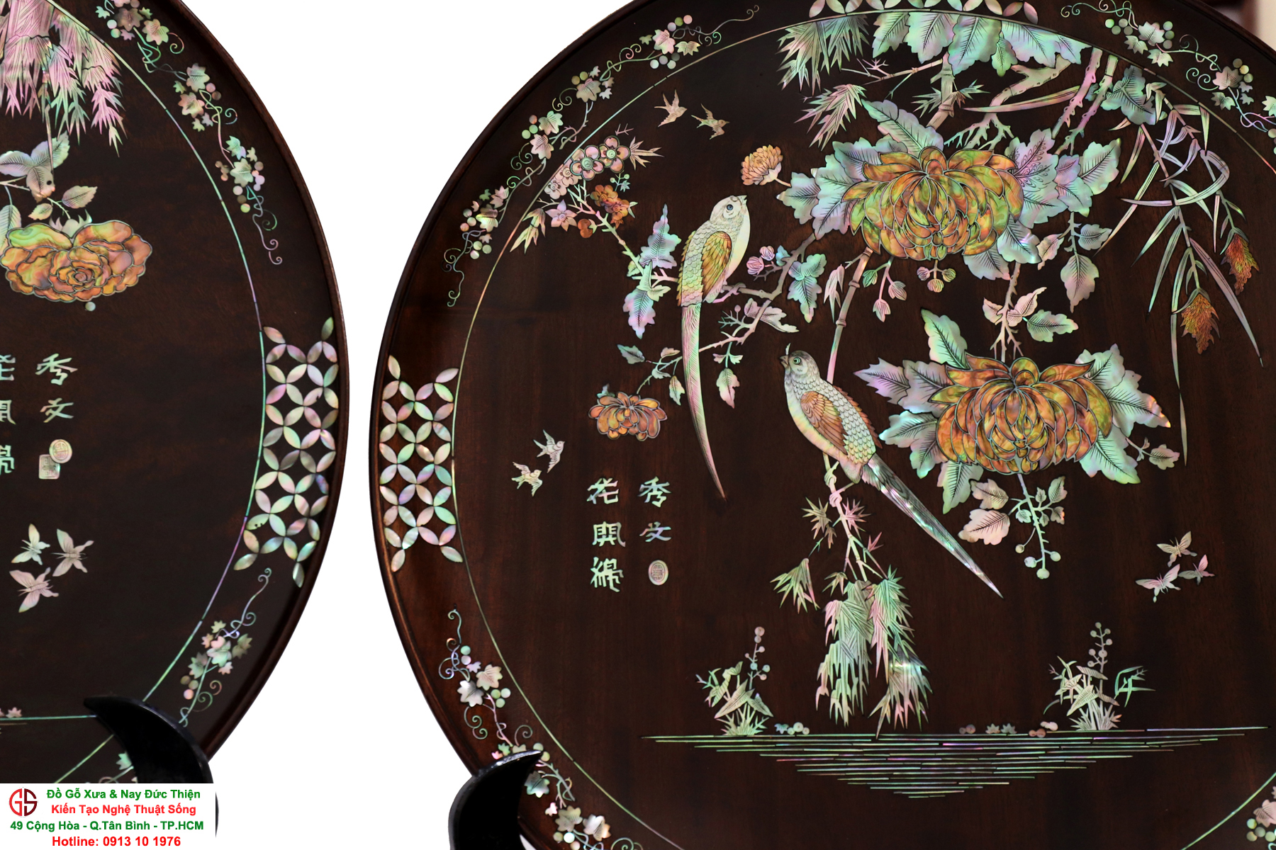 Cặp Đĩa Gỗ Gụ Khảm Ốc Đẹp