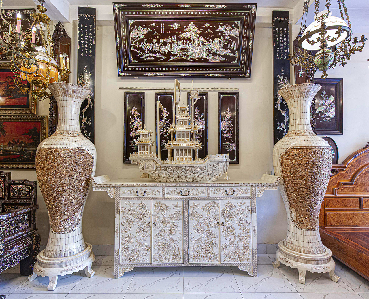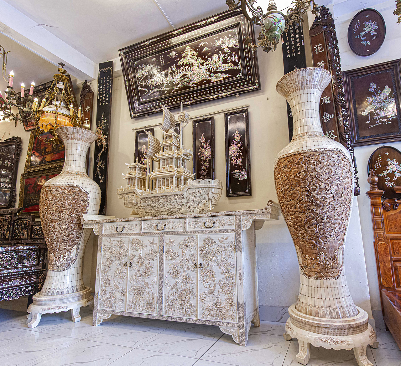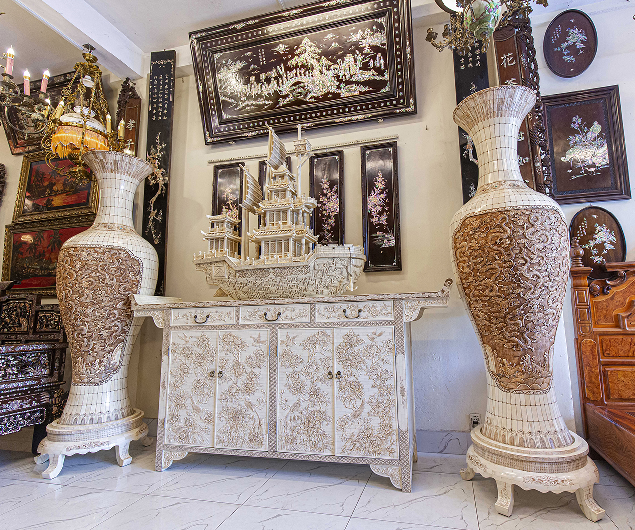 - Tranh cẩn ốc xà cừ: tranh tứ quý cẩn ốc, tranh vinh quy bái tổ, tranh phượng hồng, tranh tứ bình cẩn ốc, tranh tùng cúc trúc mai, tranh cổ đồ.