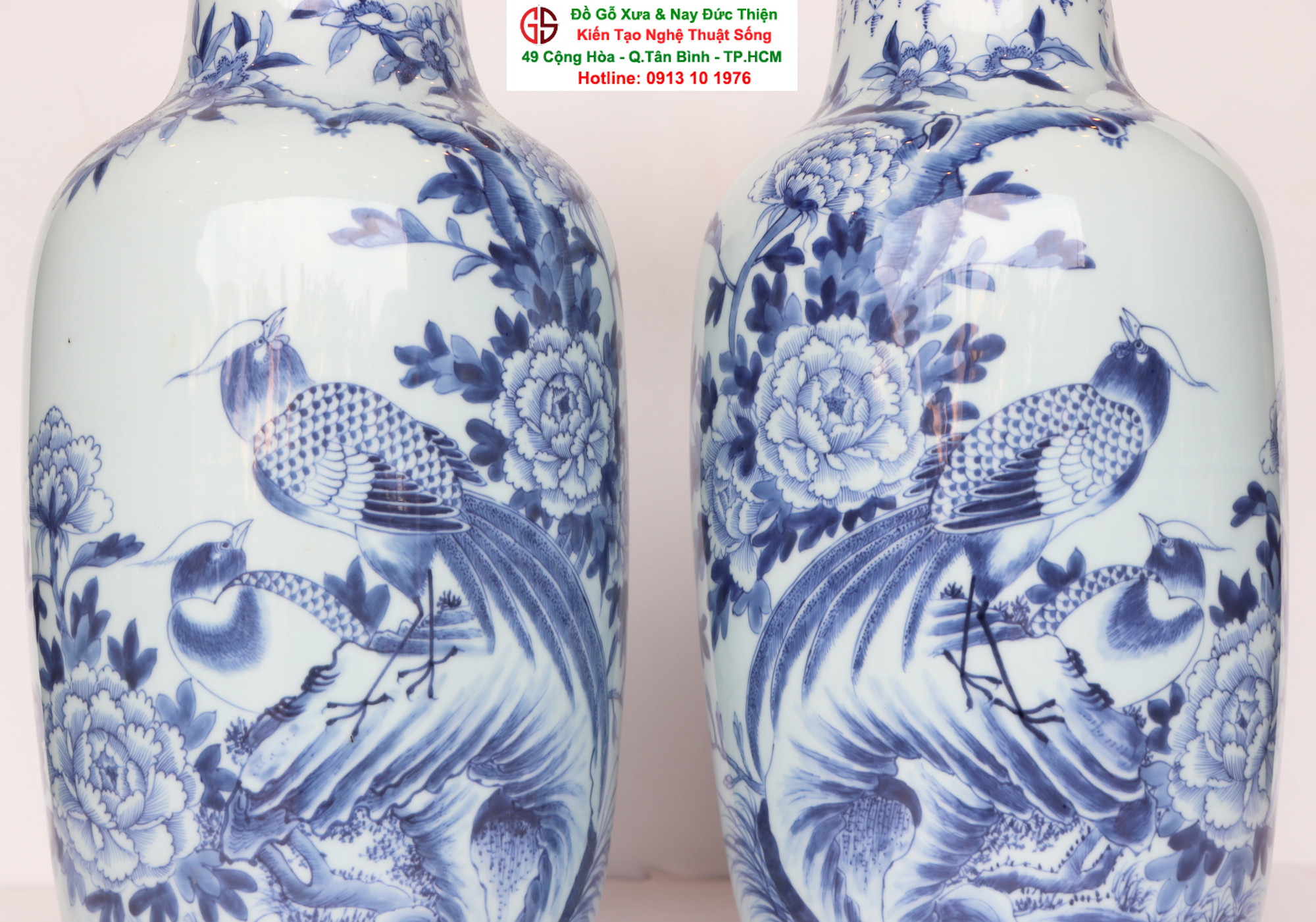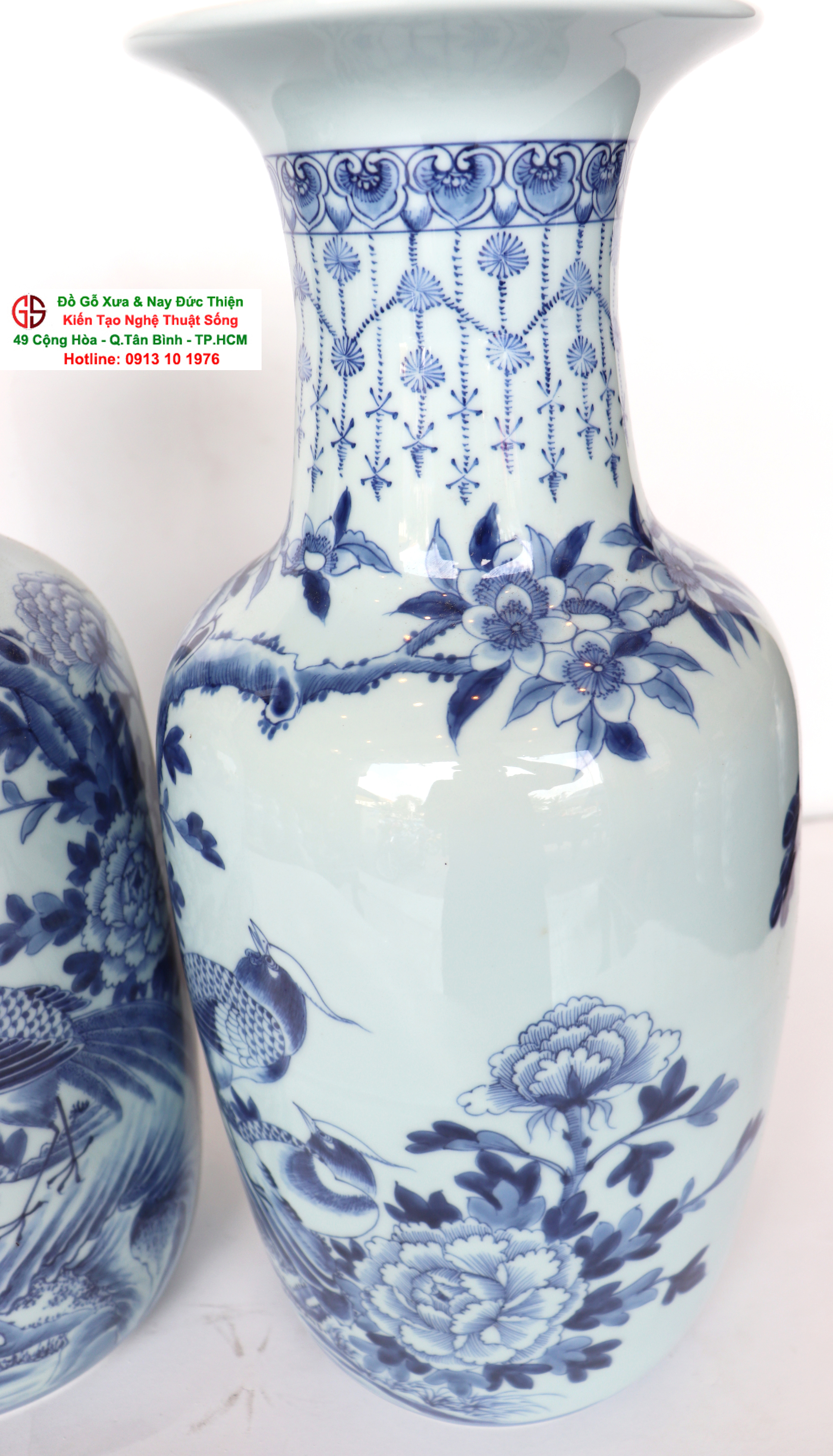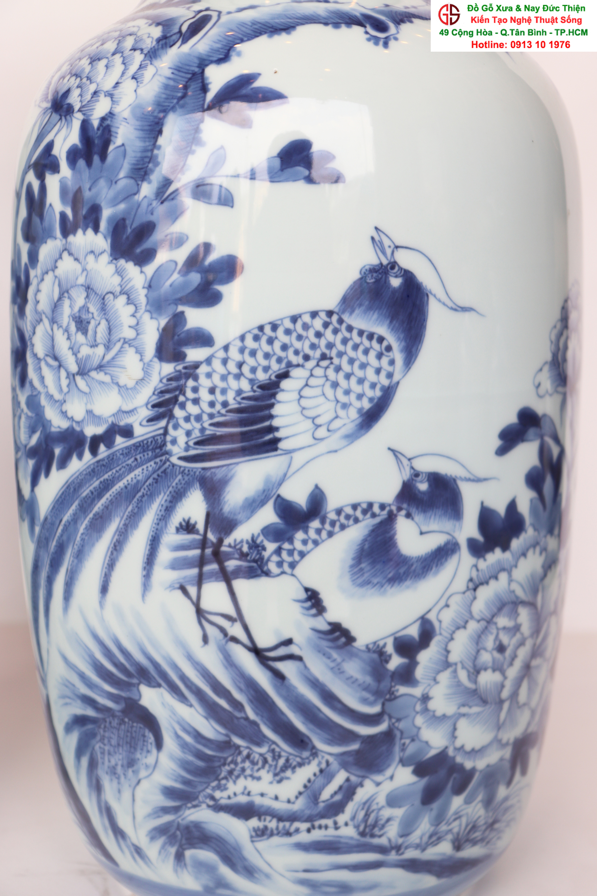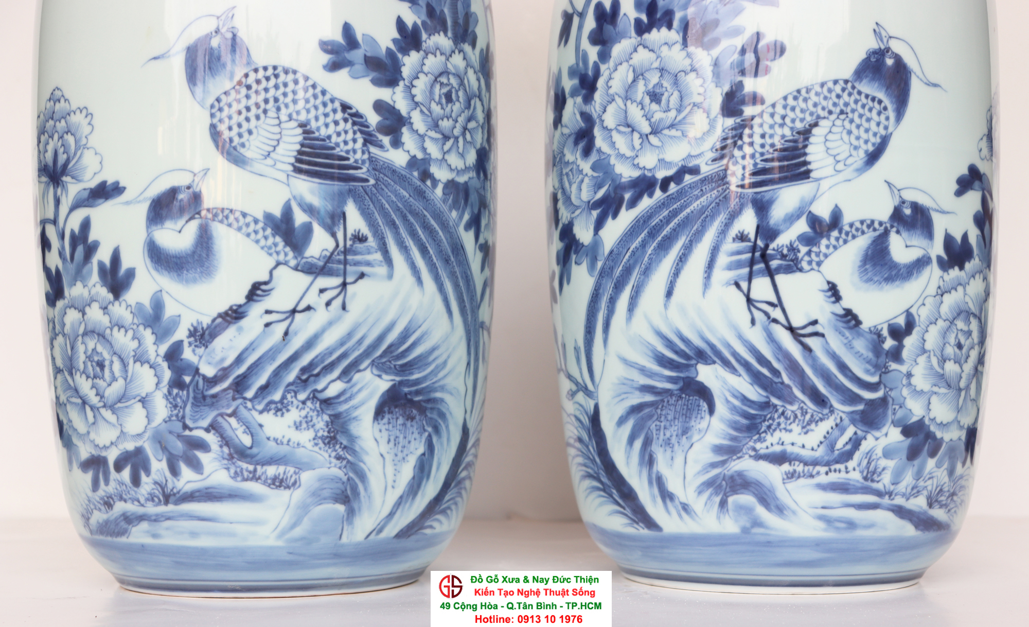 Chi tiết về Cặp Tiểu Lộc Bình Gốm Sứ Phù Dung Chim Trĩ