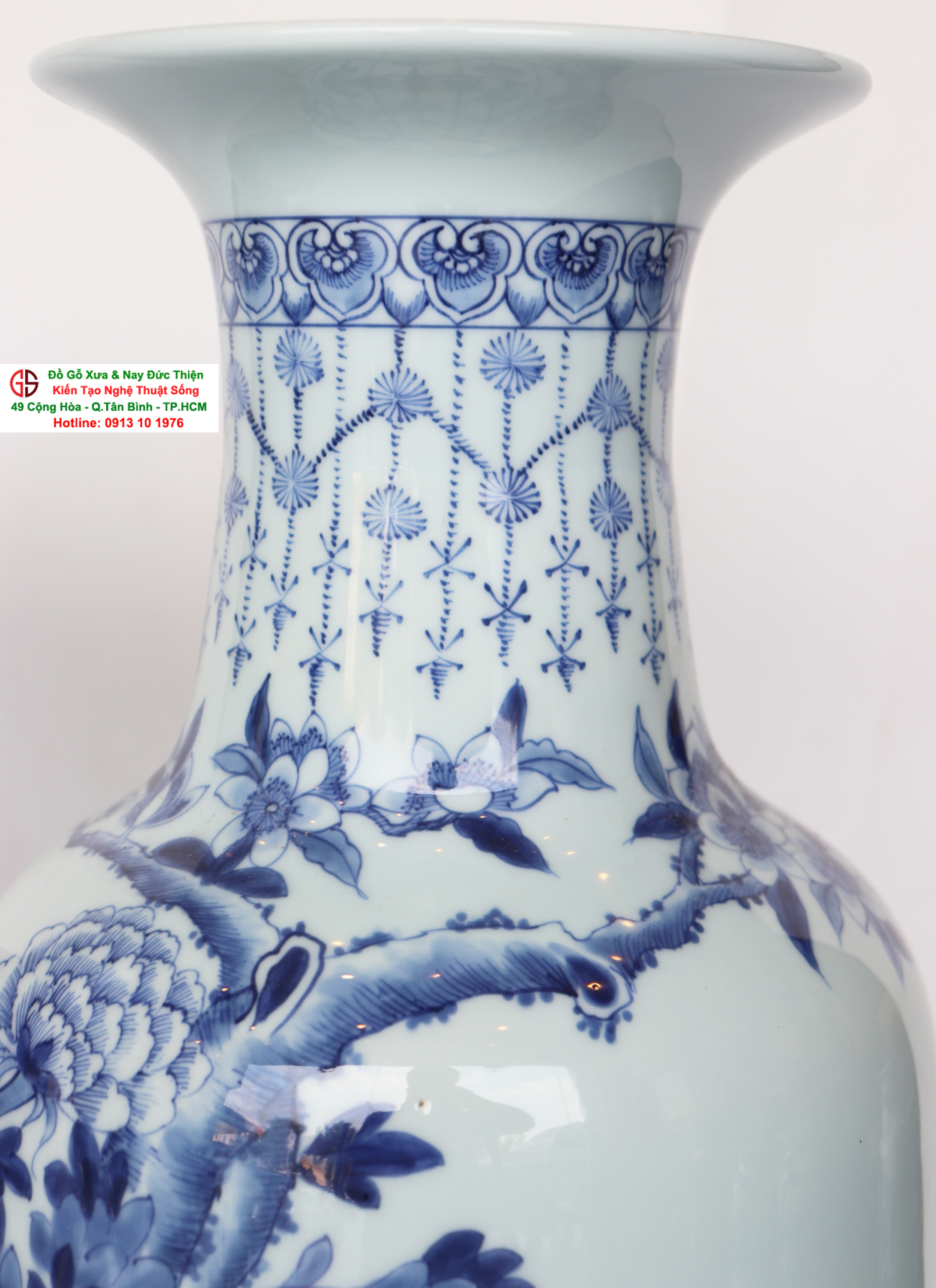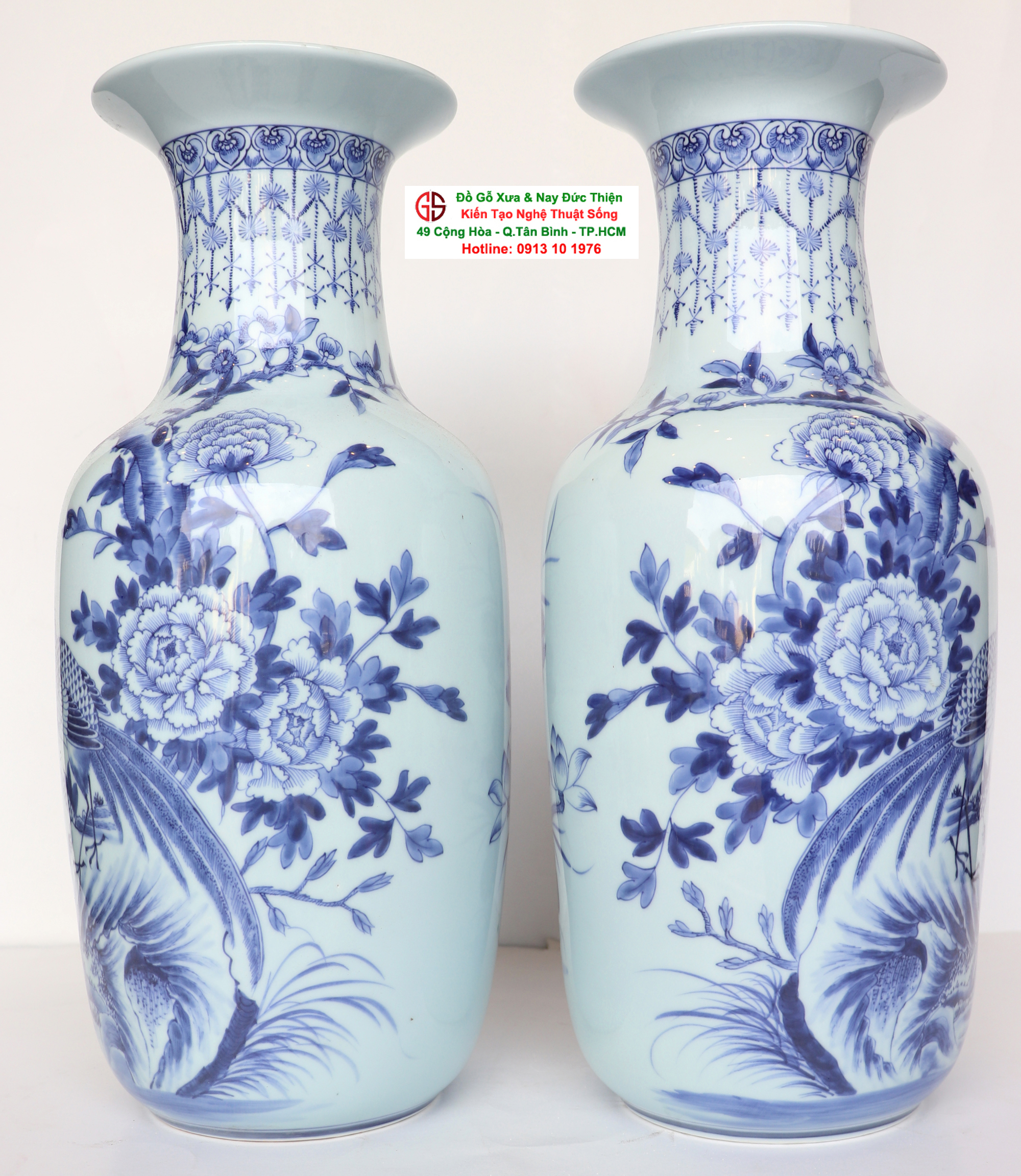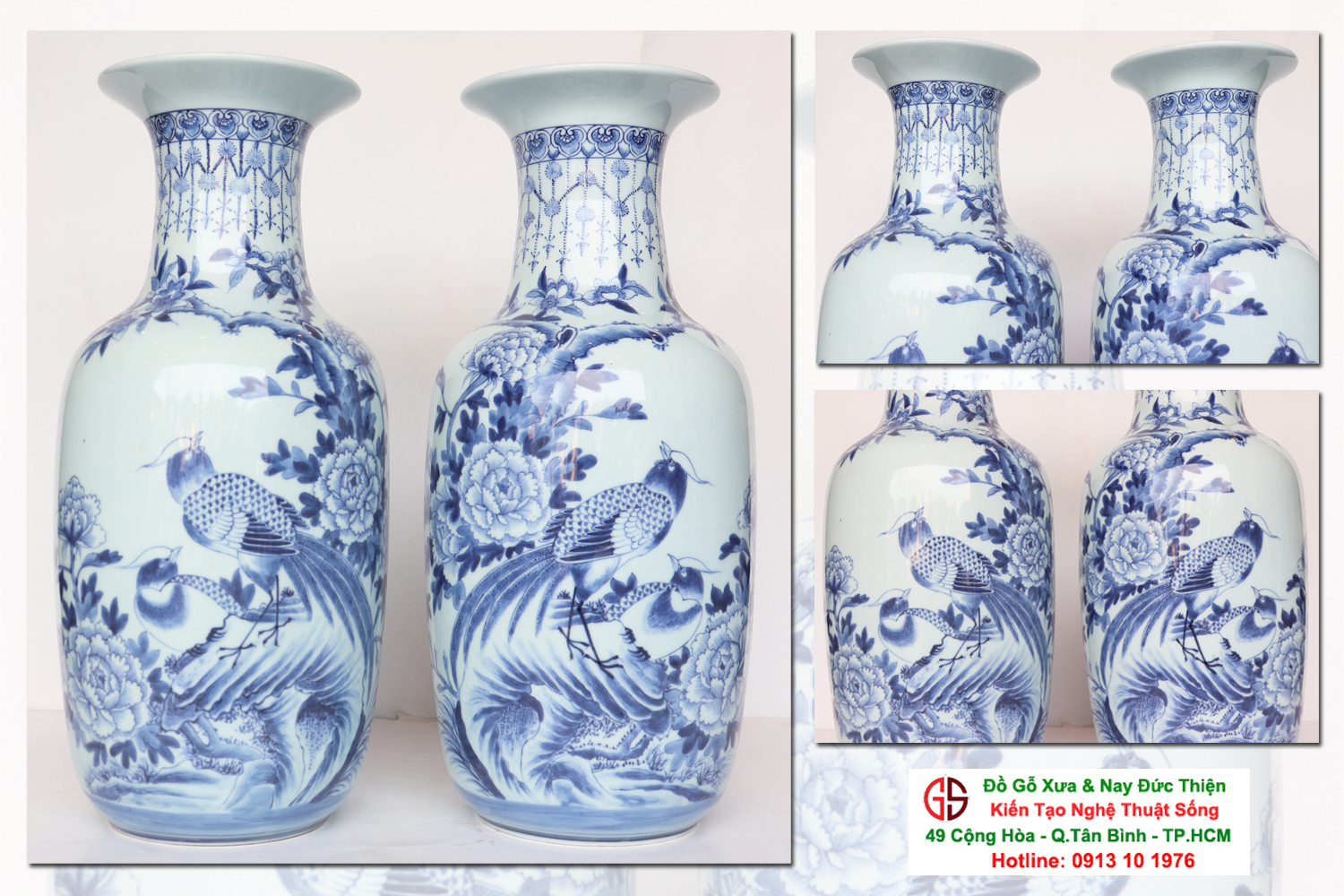 Chi tiết về Cặp Tiểu Lộc Bình Gốm Sứ Phù Dung Chim Trĩ