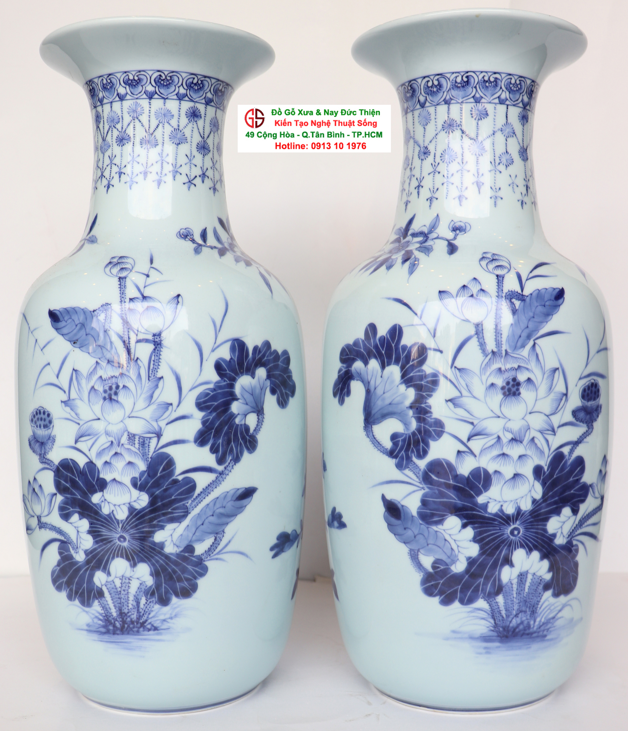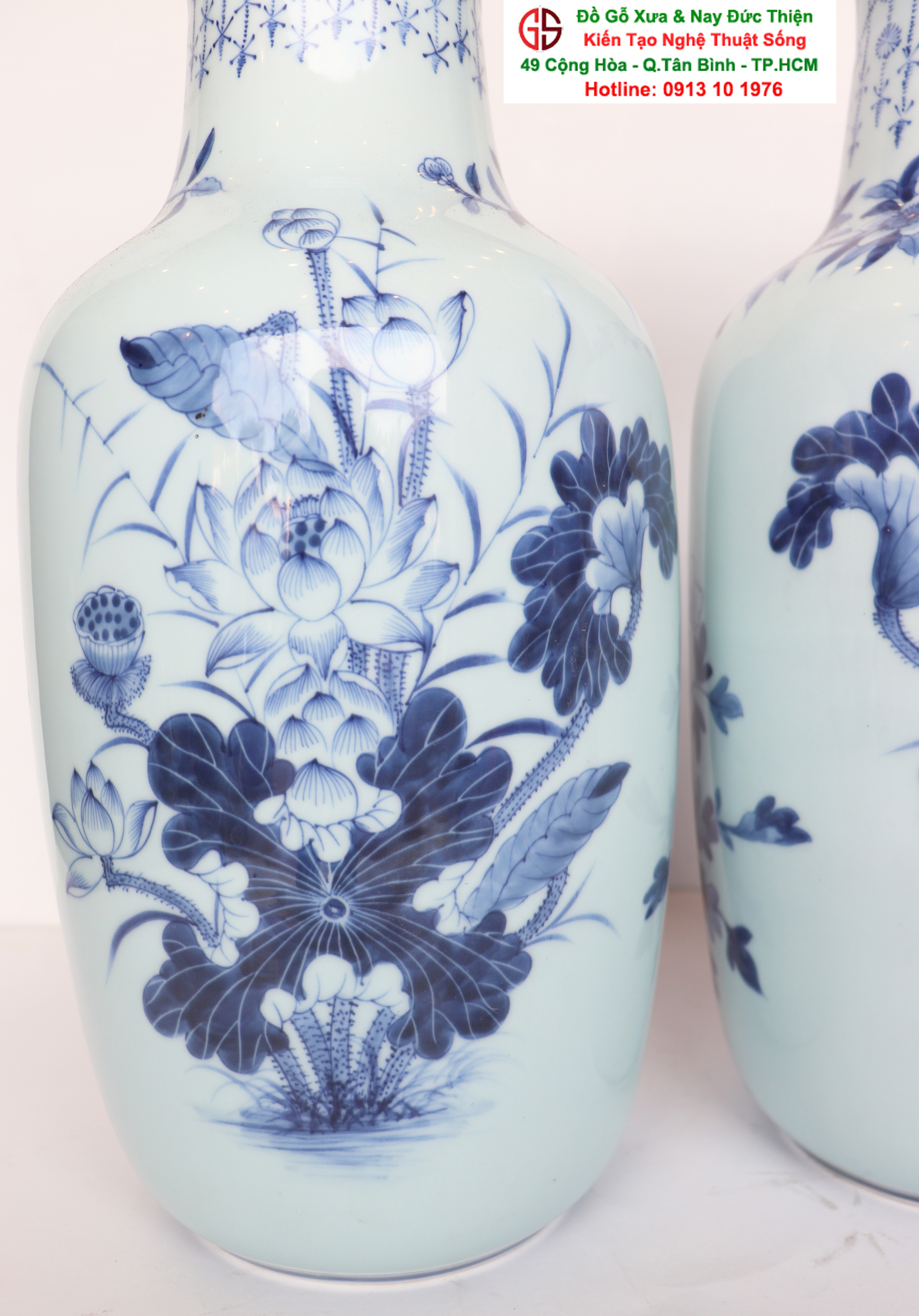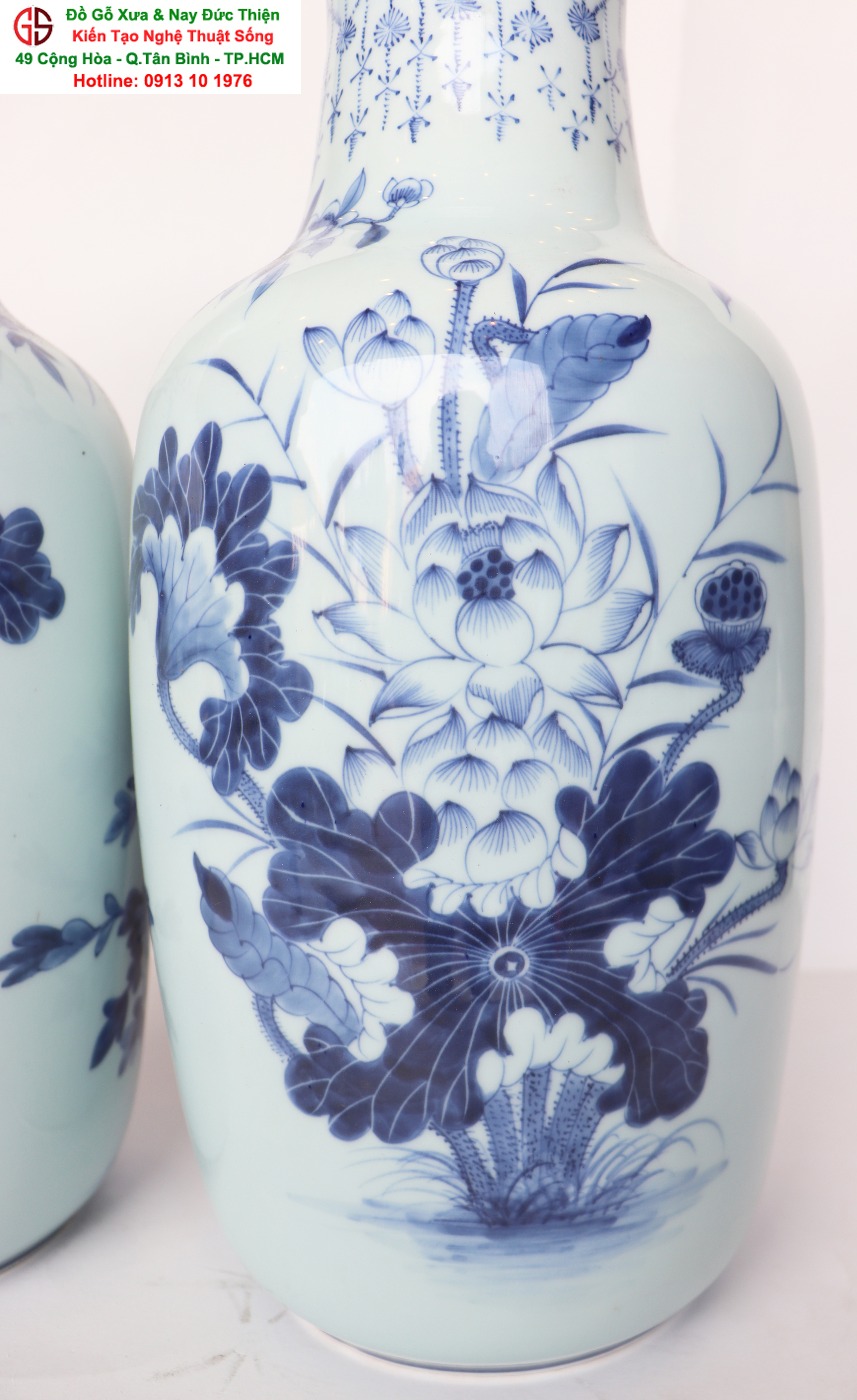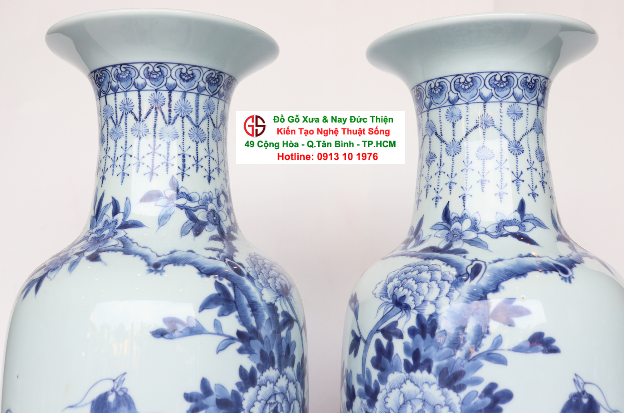 Chi tiết về Cặp Tiểu Lộc Bình Gốm Sứ Phù Dung Chim Trĩ