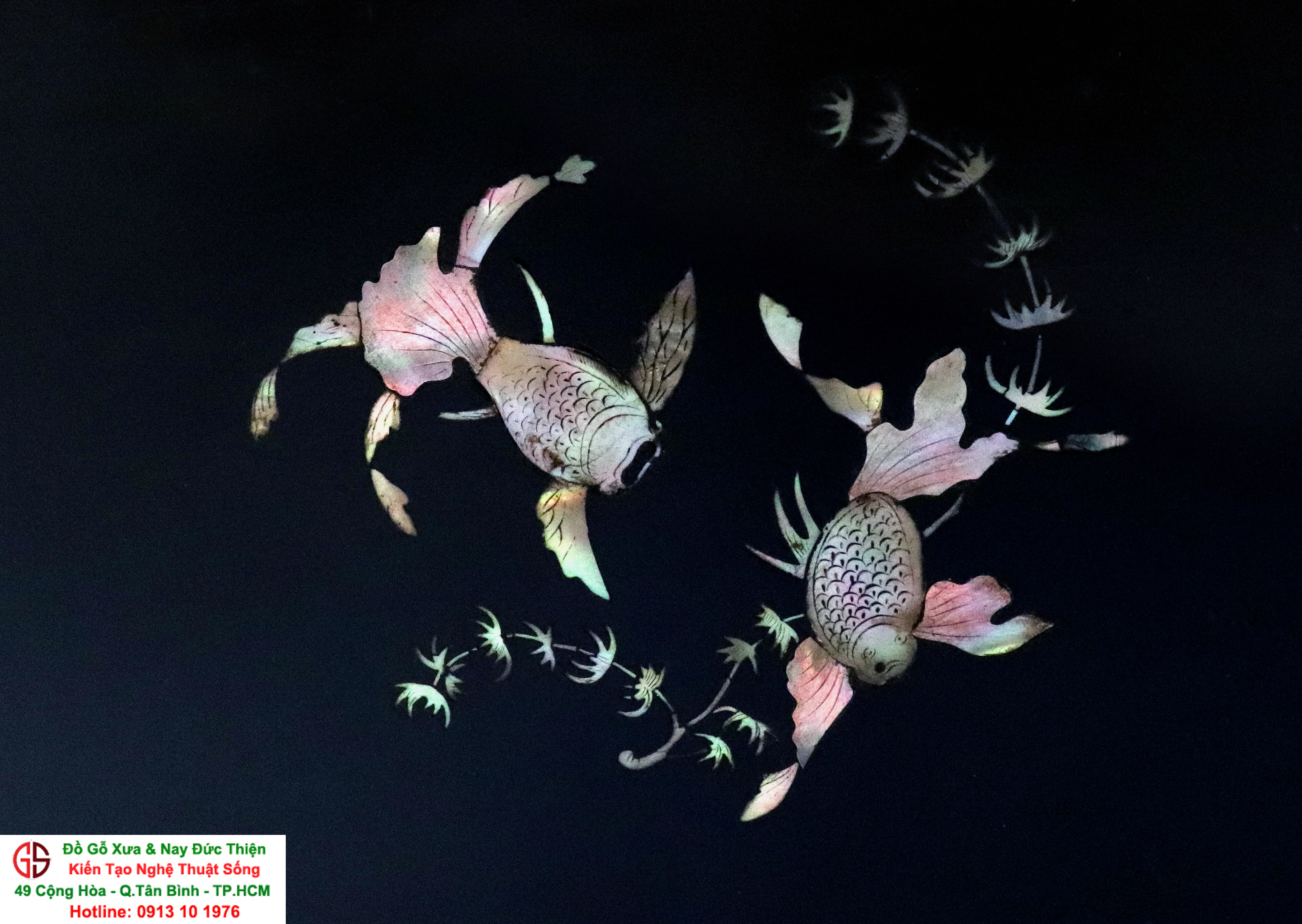Một điểm khá đặc biệt là nền đen của đôi câu đối là nền sơn then - rất ít gặp trong các câu đối khảm ốc. Phần gỗ mộc của đôi câu đối còn lành và ốc còn nguyên bản tới 99 %.