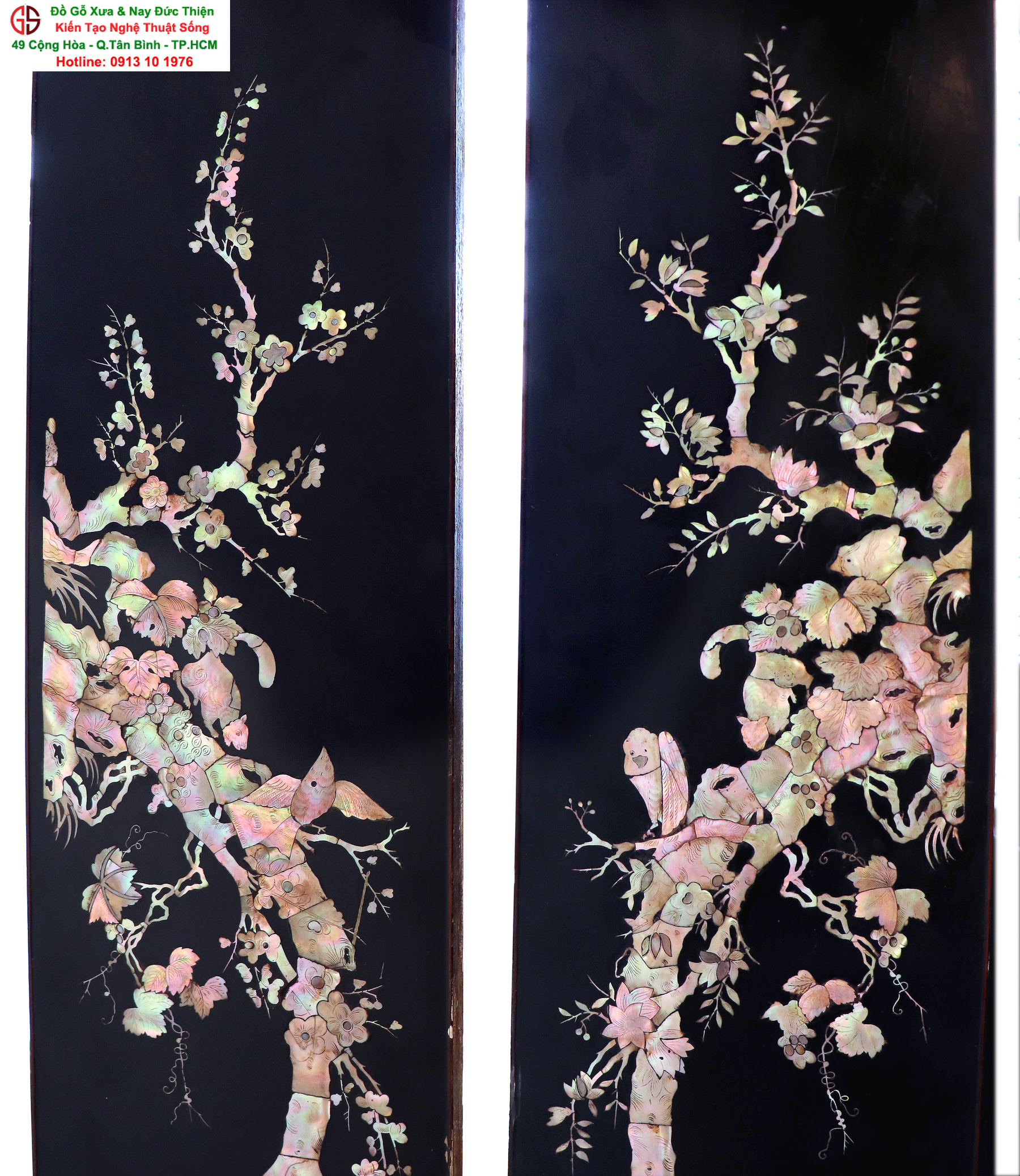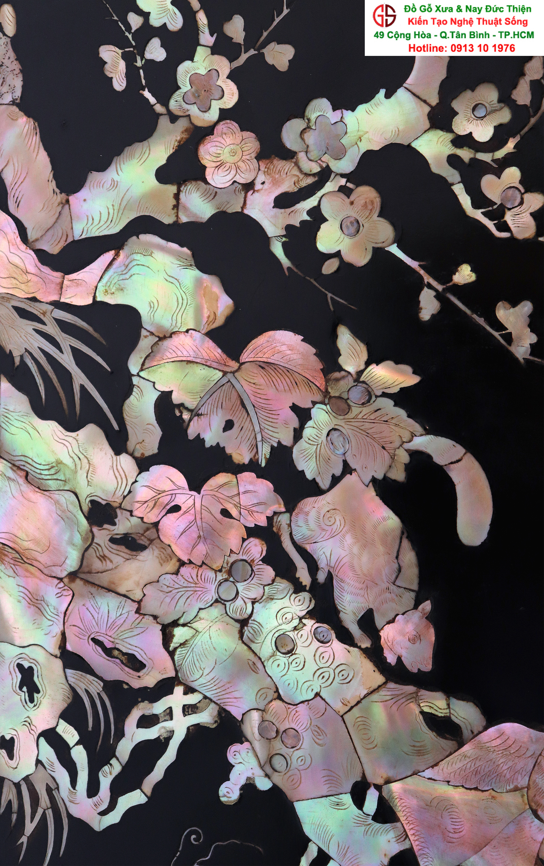 Nếu bạn hỏi tôi đồ khảm ốc cổ xịn sẽ như thế nào ? Hãy dành ra vài phút để ngắm nhìn đôi câu đối cổ này, nó chứa đựng " tất tần tật " những gì bạn đang thắc mắc. Xin giới thiệu quý bạn hữu cùng chung niềm đam mê cổ vật một đôi câu đối khảm ốc cổ xịn thuộc loại xưa nay hiếm. Đôi câu đối có niên đại gần 100 năm ( phía sau khắc 5 chữ nho cổ - ất sửu đồng niên tạo - năm 1925 - Thời Vua Khải Định.