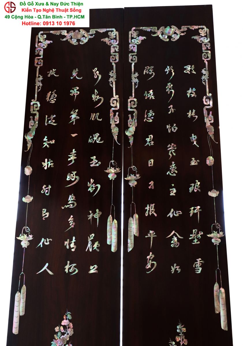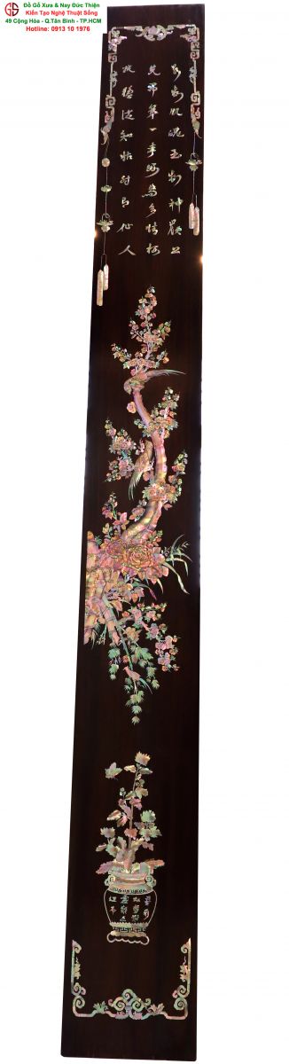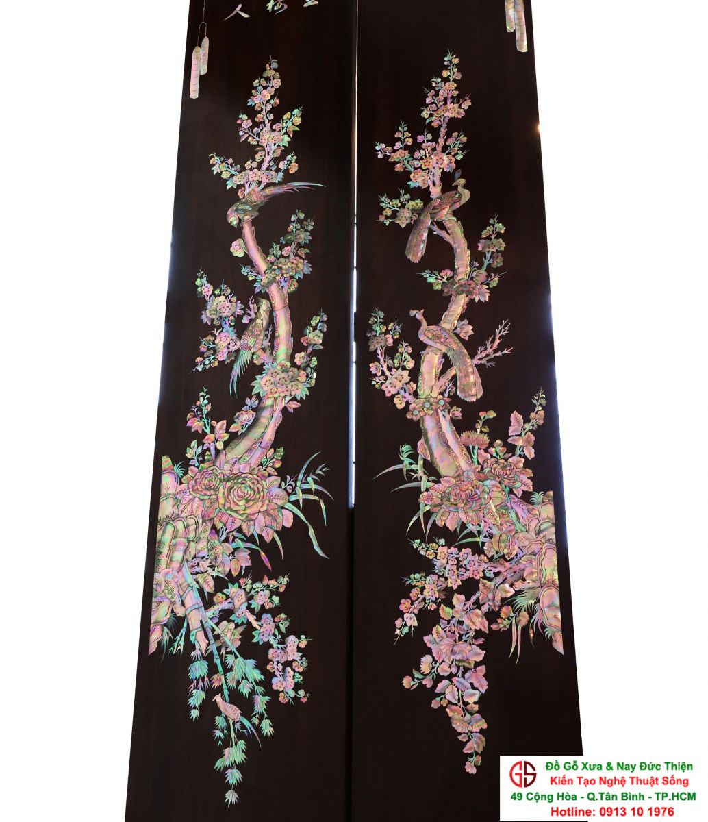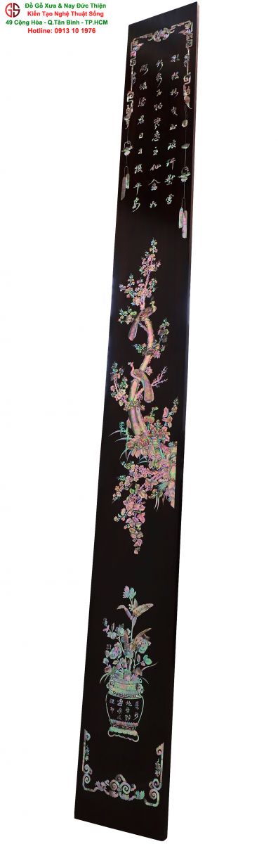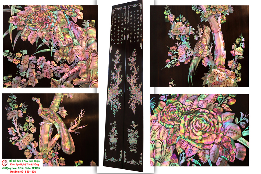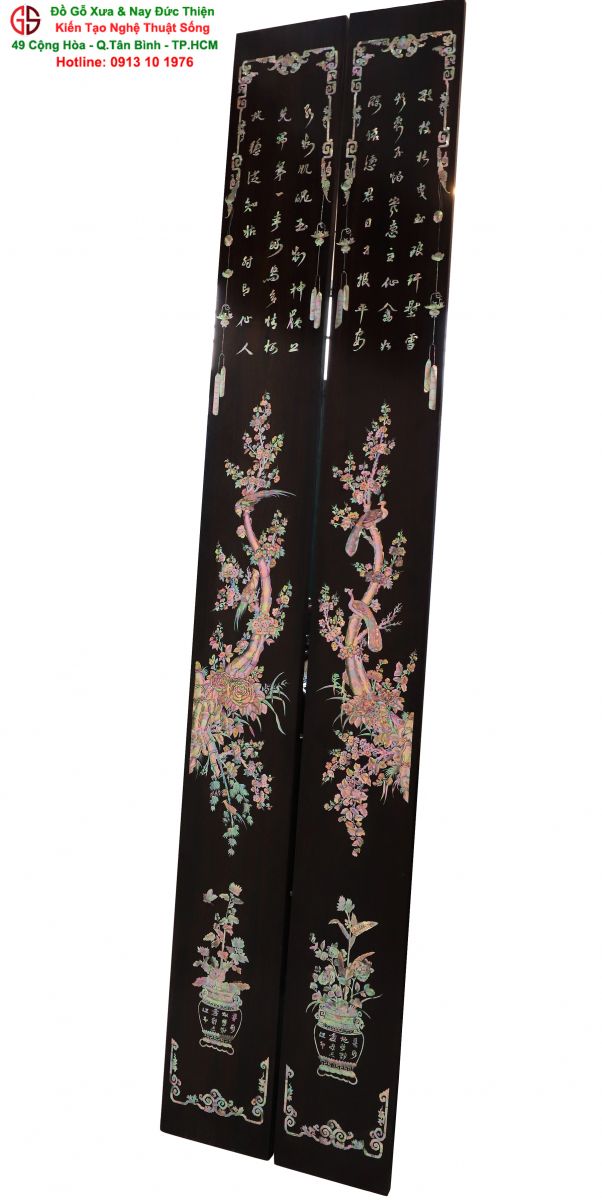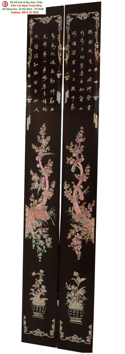 Với những người yêu nghệ thuật chạm khảm xà cừ thì việc sưu tầm được một đôi câu đối khảm ốc đẹp luôn là mong ước cháy bỏng. Đồ Gỗ Xưa & Nay Đức Thiện xin giới thiệu tới quý khách hàng một trân phẩm đỉnh cao của nghệ thuật khảm ốc xà cừ : Đôi câu đối khảm ốc đỏ lửa vàng chanh, xanh ngọc tích hồng công, mai điểu.