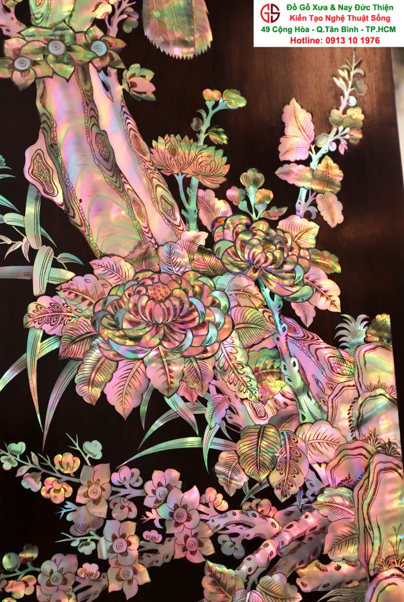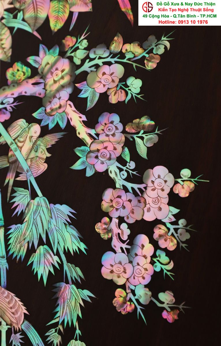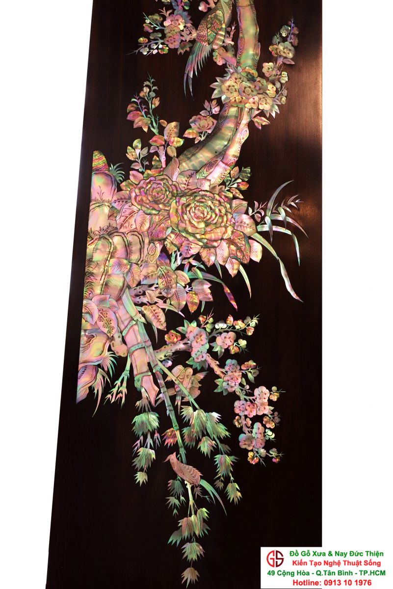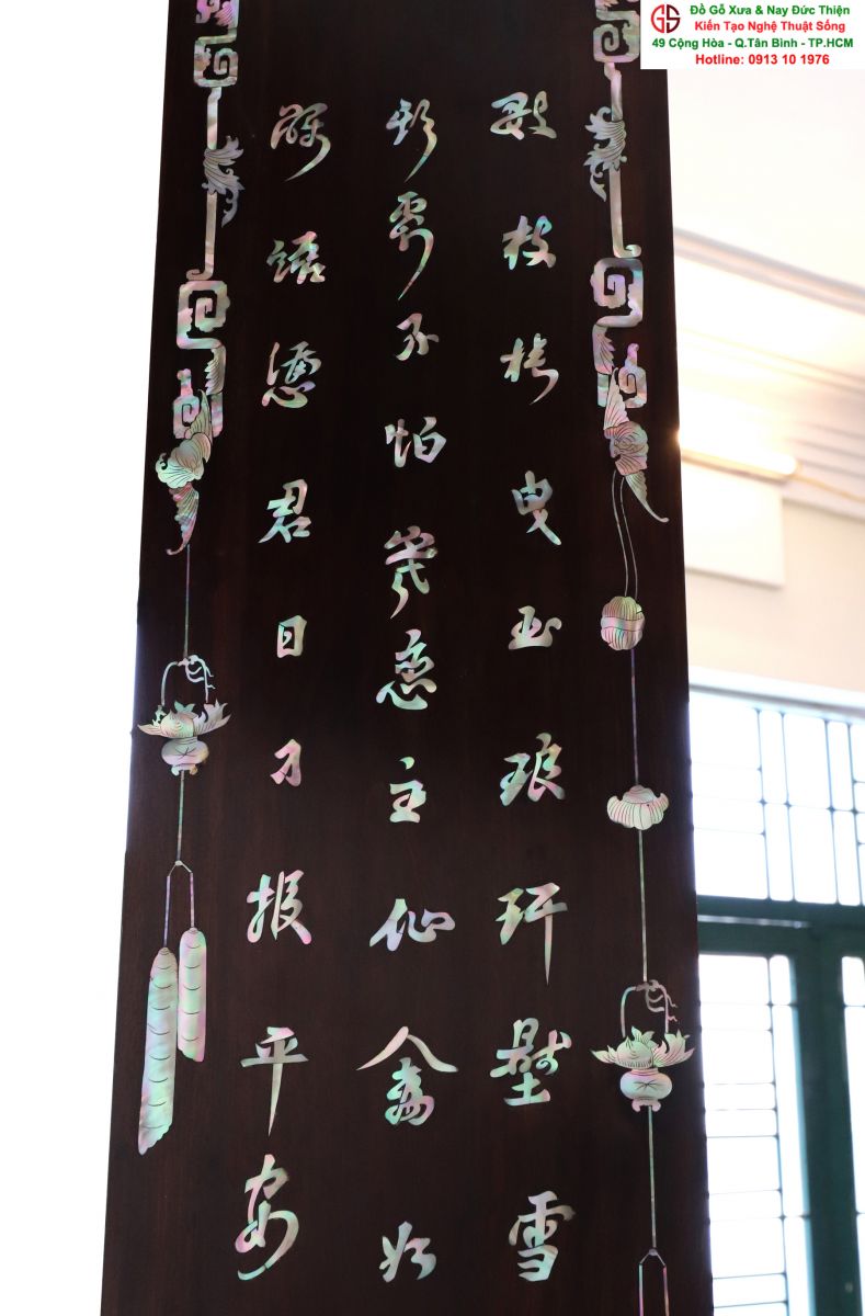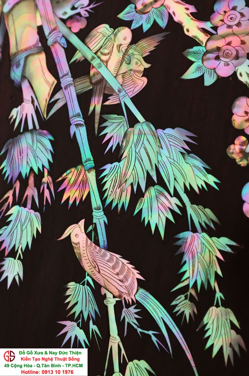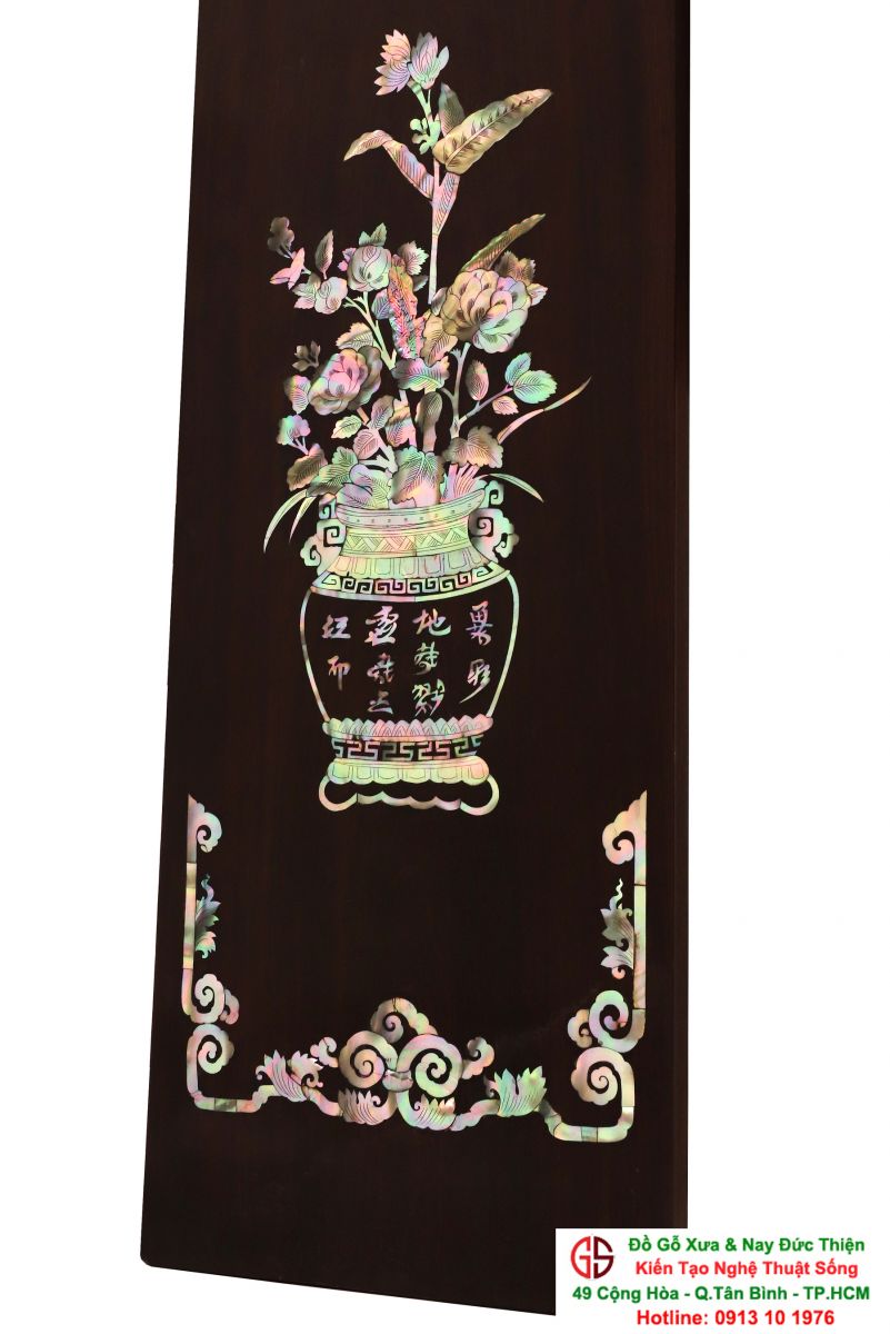 Với những người yêu nghệ thuật chạm khảm xà cừ thì việc sưu tầm được một đôi câu đối khảm ốc đẹp luôn là mong ước cháy bỏng. Đồ Gỗ Xưa & Nay Đức Thiện xin giới thiệu tới quý khách hàng một trân phẩm đỉnh cao của nghệ thuật khảm ốc xà cừ : Đôi câu đối khảm ốc đỏ lửa vàng chanh, xanh ngọc tích hồng công, mai điểu.