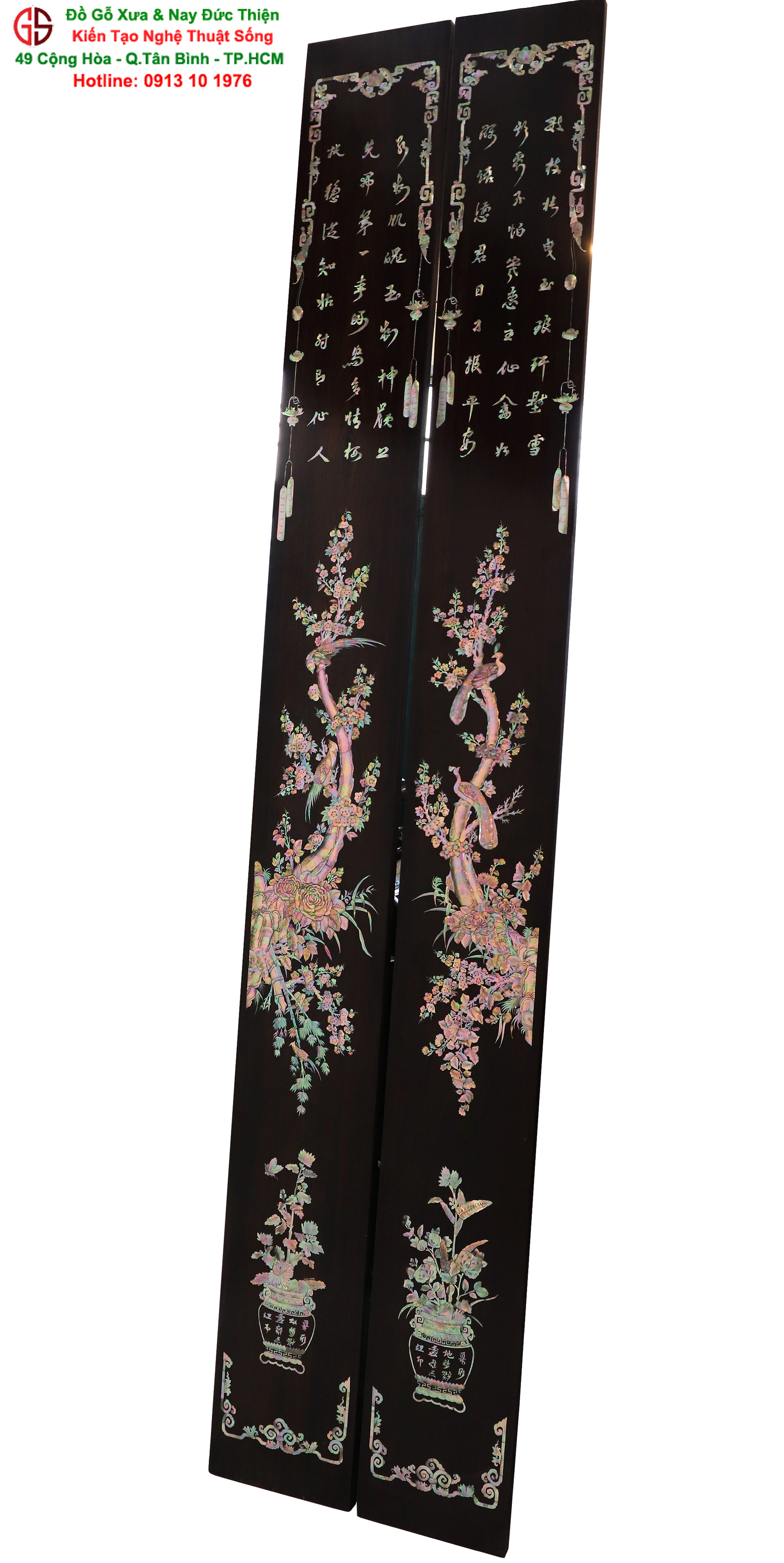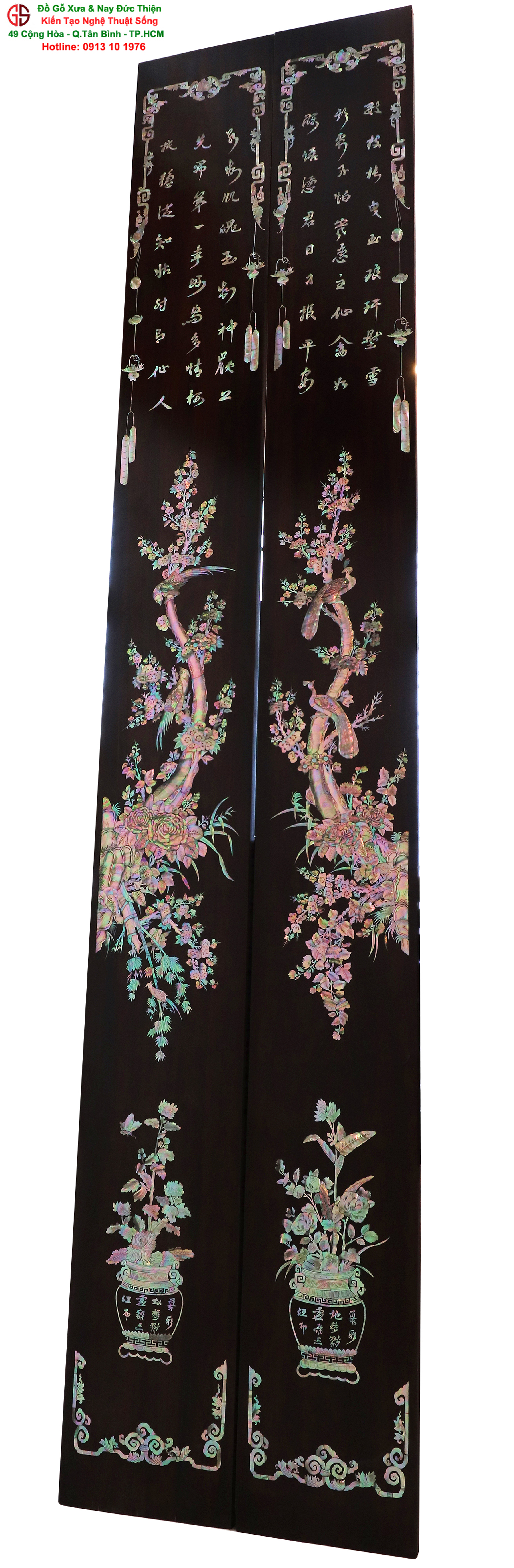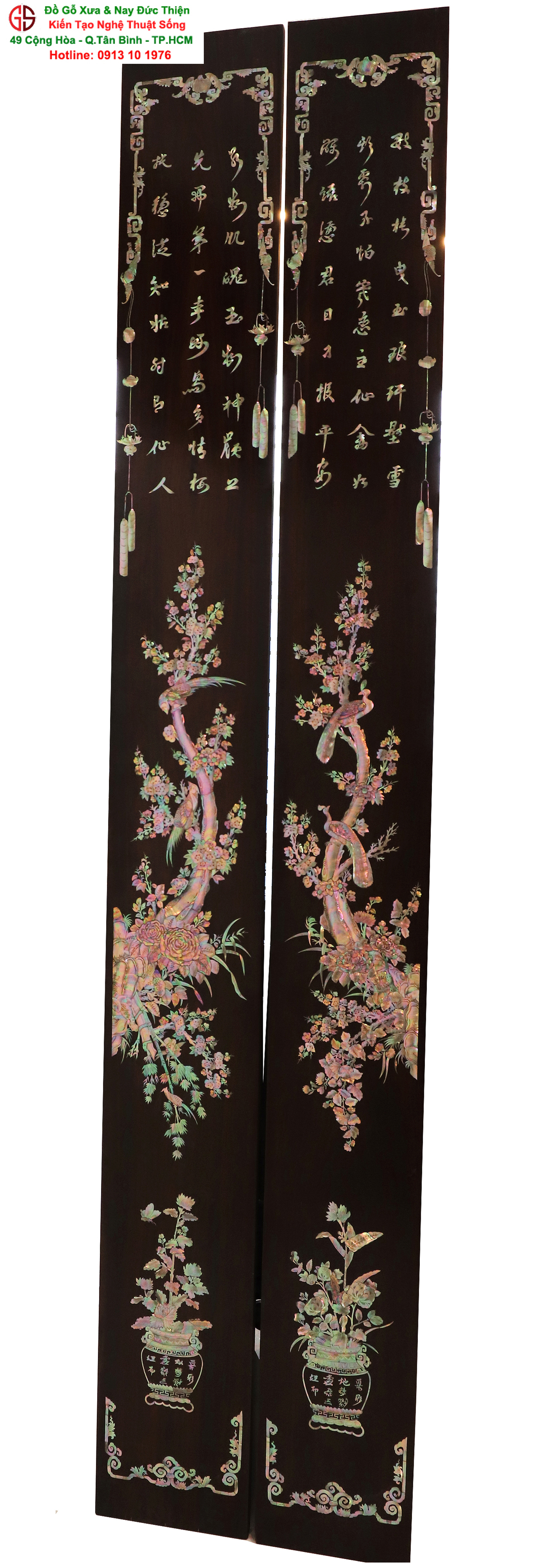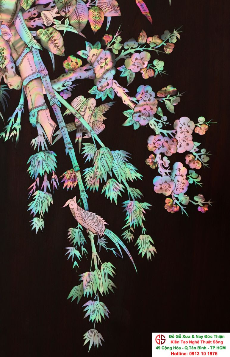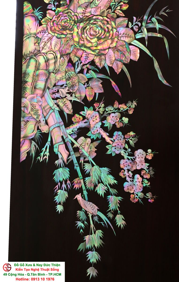 Với những người yêu nghệ thuật chạm khảm xà cừ thì việc sưu tầm được một đôi câu đối khảm ốc đẹp luôn là mong ước cháy bỏng. Đồ Gỗ Xưa & Nay Đức Thiện xin giới thiệu tới quý khách hàng một trân phẩm đỉnh cao của nghệ thuật khảm ốc xà cừ : Đôi câu đối khảm ốc đỏ lửa vàng chanh, xanh ngọc tích hồng công, mai điểu.